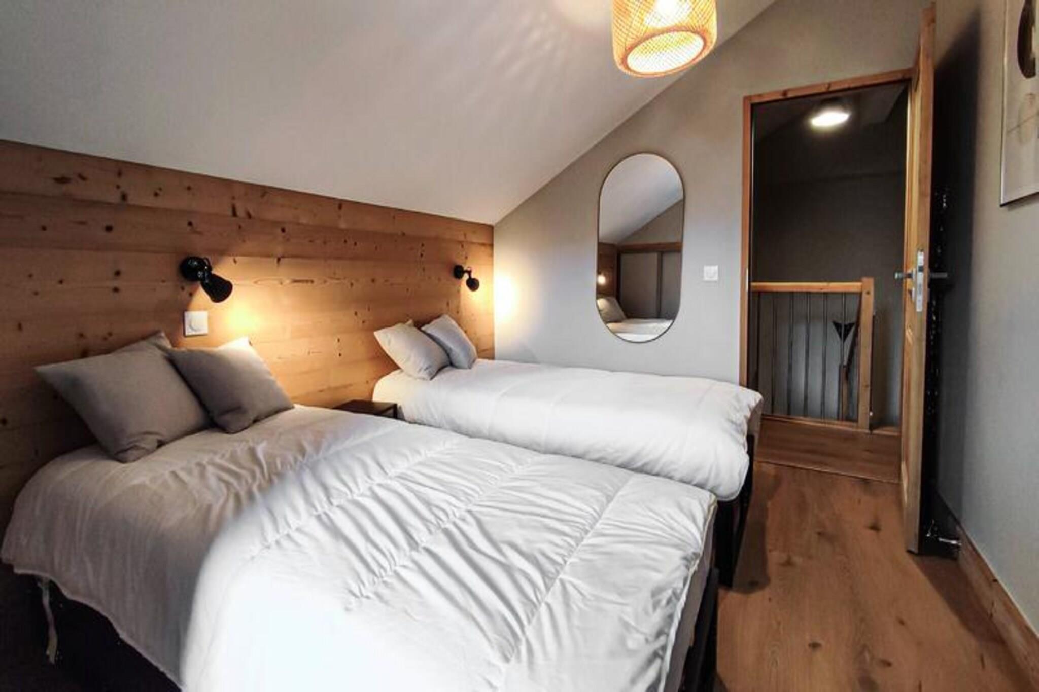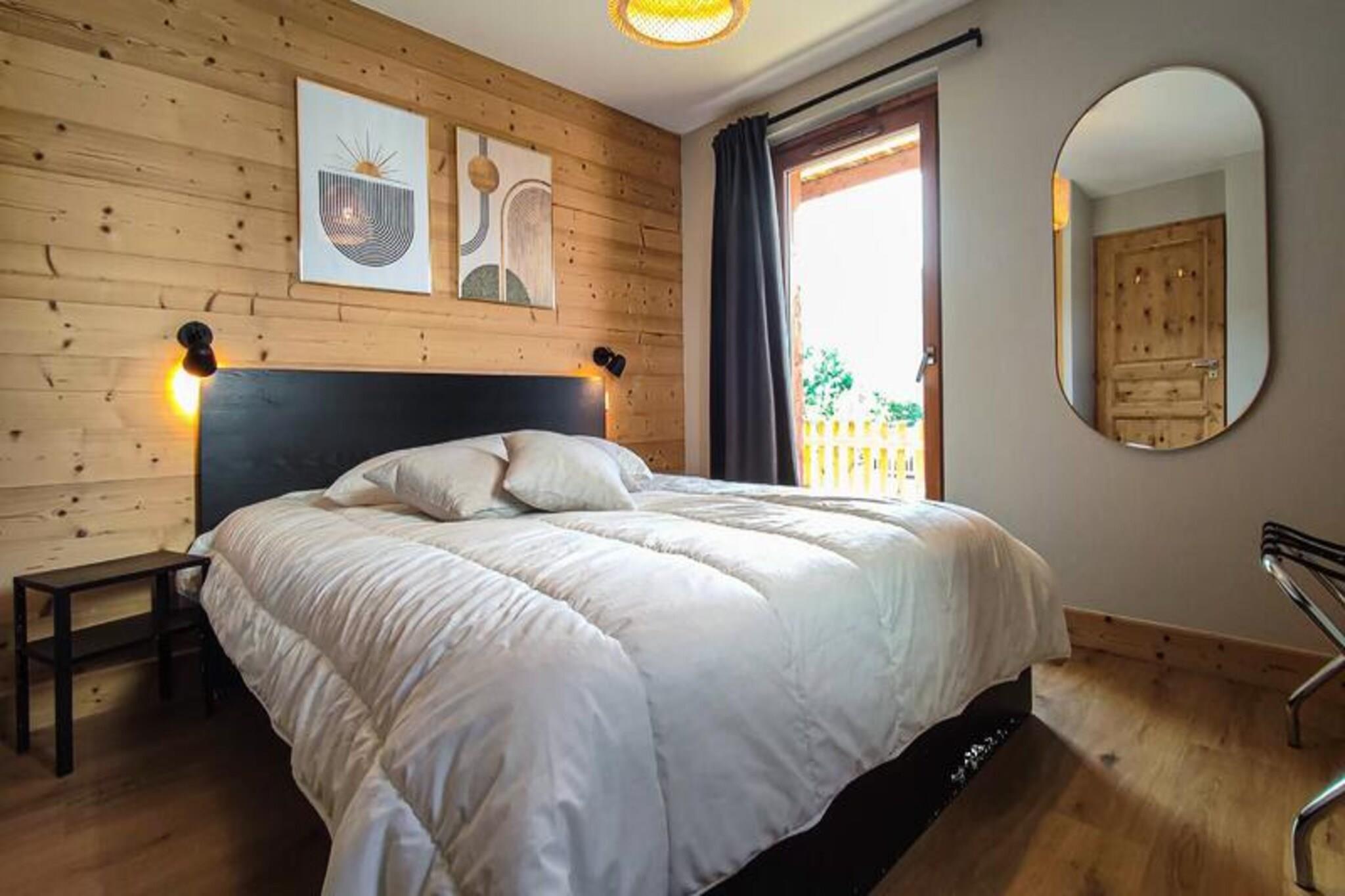 This 76 m² duplex chalet accommodates 6 people with three bedrooms. The first level has a double bedroom, a spacious living area with a sofa, TV, and a dining table for six. Upstairs, there is a second double bedroom and a room with two single beds. The chalet includes two parking spaces (covered and outdoor), bed and bathroom linens, and end-of-stay cleaning (excluding kitchen and dishes). It is non-smoking and pets are not allowed, providing a clean and comfortable stay. Located in La Charmette, this chalet is just steps from the ski slopes, offering ski-in/ski-out access. It is 3 km from Valmorel’s shops and restaurants, with free public shuttle access. Nearby activities include hiking, mountain biking, and skiing, and Valmorel provides a range of après-ski experiences. Local markets and dining options are also easily accessible, making this location ideal for both winter and summer vacations. The kitchen is fully equipped with modern appliances, including a dishwasher, oven, microwave, and coffee maker. The living area leads to a west-facing terrace with stunning views of the Aigueblanche valley. Additional amenities include a ski locker with a boot dryer, a washing machine and dryer, two bathrooms, and baby equipment like a crib and high chair, making it perfect for families.