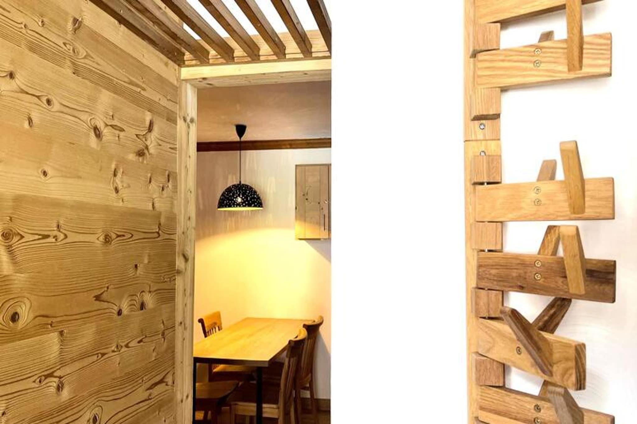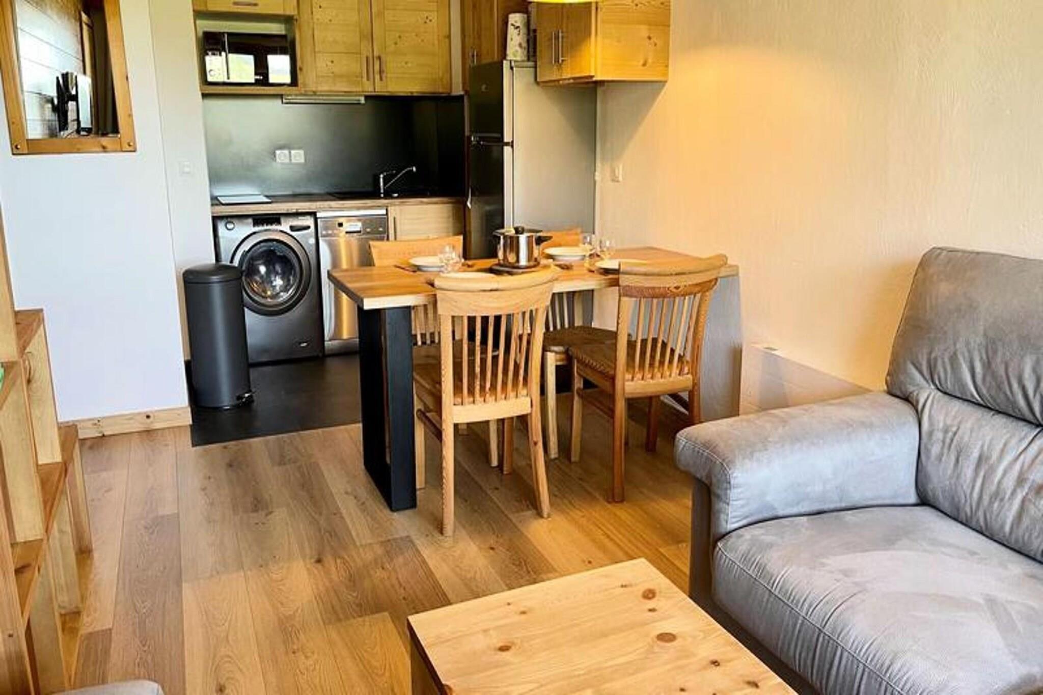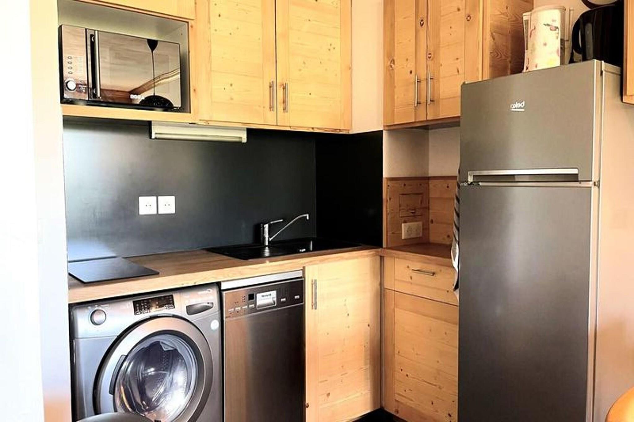 This newly renovated 2-bedroom apartment is designed to accommodate 4 people comfortably. The first bedroom features a double bed, while the second bedroom has bunk beds. All beds come with duvets for a cozy sleep. The apartment is non-smoking, and pets are not allowed. Linen and cleaning are available for an additional fee, and the tourist tax is not included in the rental price. The apartment is immediately accessible by elevator from the Teppes P1 covered car park, offering convenience and ease of access. Located in the hamlet of La Forêt, the apartment is just 5 minutes from the ESF lessons and the Piou-Piou club, making it ideal for families. It is also only 2 minutes from the slopes and 3 minutes from the shops, placing guests in a prime location for both ski activities and convenient access to local amenities. Nearby, you will find cafes and markets where you can enjoy a warm beverage or shop for fresh ingredients. The apartment boasts a fully equipped American kitchen, complete with a Whirlpool refrigerator, Electrolux Time Focus dishwasher, ceramic hobs, coffee maker, kettle, and LG microwave. A washing machine is also available for longer stays. The apartment features a spacious bathroom and a separate toilet, providing added comfort and convenience. Heating ensures a cozy atmosphere throughout, making this apartment a great retreat after a day on the slopes. The balcony offers a nice spot to relax and take in the surrounding views.