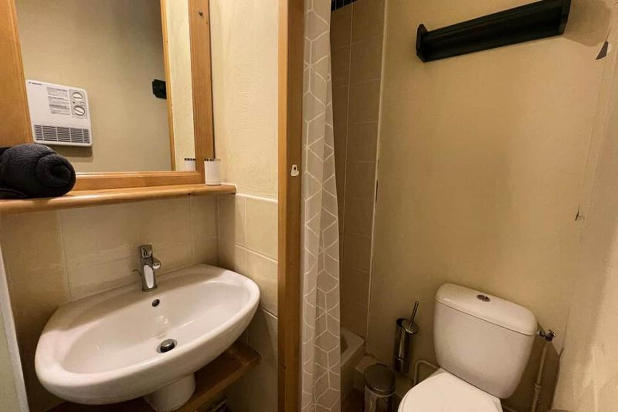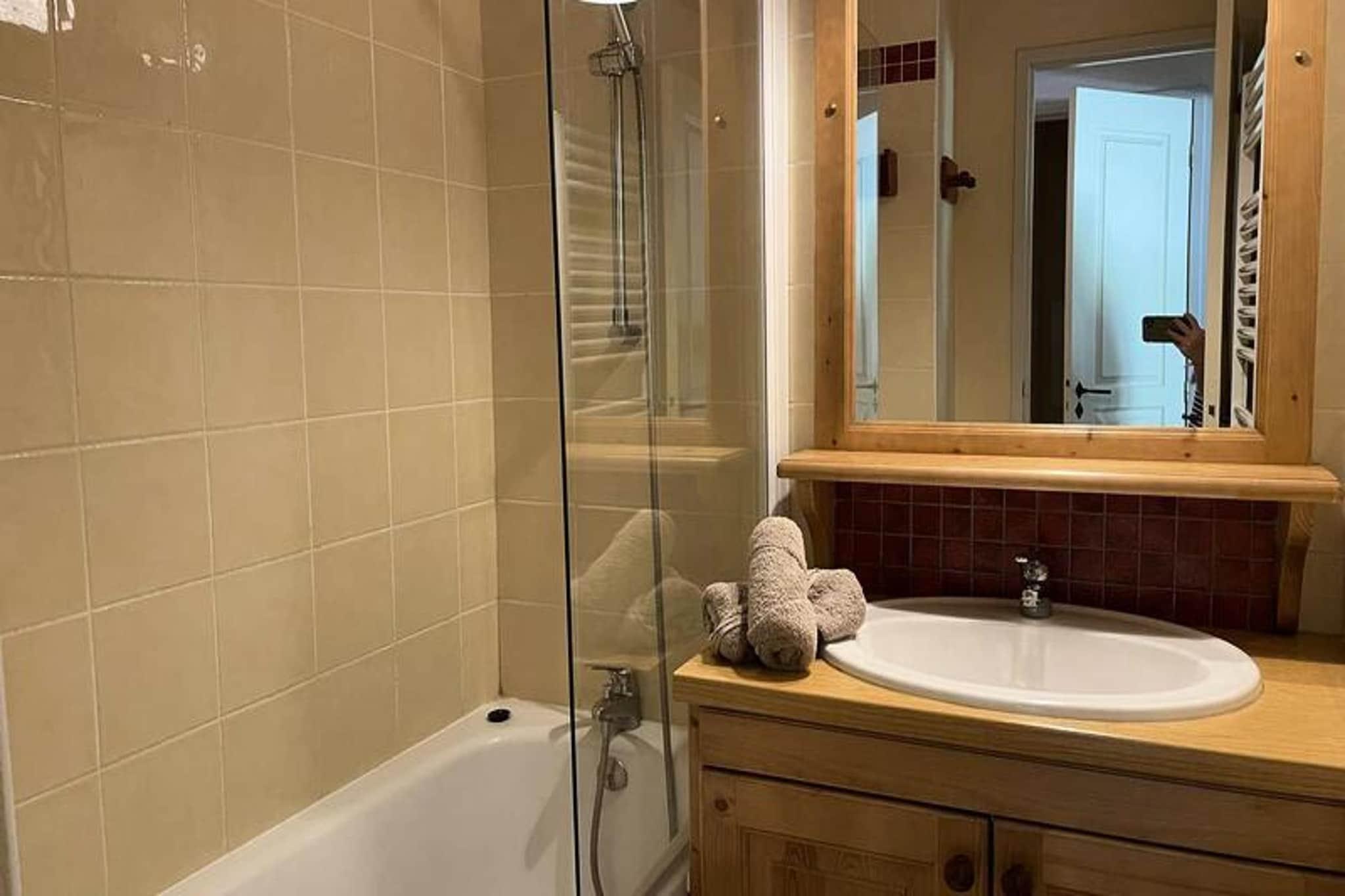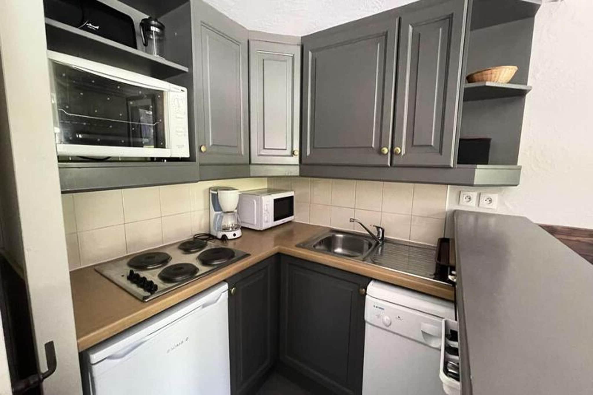 This charming 2-room plus cabin apartment comfortably accommodates up to 6 people. The living room features a bench seat with a pull-out bed, while the bedroom is furnished with a double bed. The cabin bedroom offers bunk beds, and all beds are equipped with duvets for comfort. The apartment is non-smoking and does not allow pets. Linen and cleaning services are available for an additional fee, and the tourist tax is not included in the rental price. The apartment is easily accessible via elevator from the Teppes P1 covered car park. Located in the peaceful hamlet of La Forêt, the apartment is just 2 minutes from the slopes, offering quick access to skiing and winter sports. It is also a 5-minute walk to the ESF lessons and the Piou Piou club, making it ideal for families with young children. Local shops are only 3 minutes away, providing convenient access to cafes, markets, and other amenities, ensuring guests have everything they need for a relaxing stay. The apartment features a fully equipped American kitchen with a Brandt refrigerator, microwave, mini oven, and 4 electric hotplates. A Vedette Atoll dishwasher, coffee maker, toaster, and robot are also provided for your convenience. The bathroom and shower room with a combined toilet offer additional comfort, and heating ensures a warm and cozy atmosphere throughout the apartment. A TV and DVD player provide entertainment during your downtime.