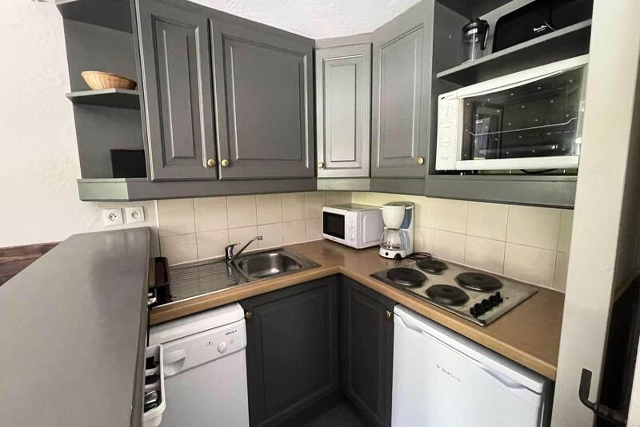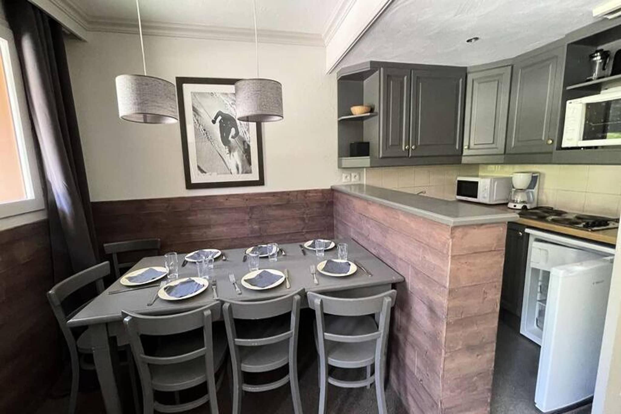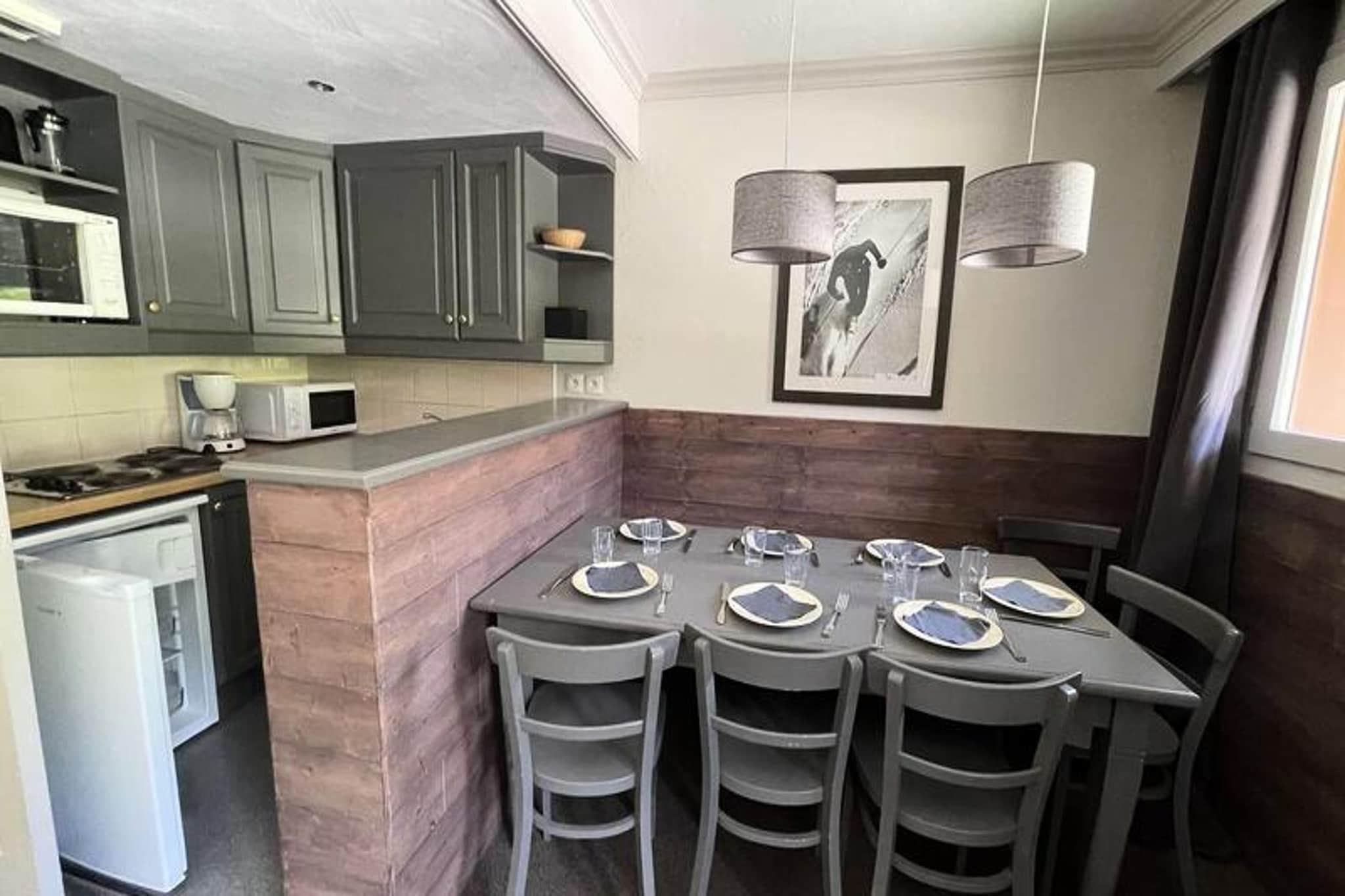 This charming 2-room plus cabin apartment comfortably accommodates up to 6 people. The living room features a bench seat with a pull-out bed, while the bedroom is furnished with a double bed. The cabin bedroom offers bunk beds, and all beds are equipped with duvets for comfort. The apartment is non-smoking and does not allow pets. Linen and cleaning services are available for an additional fee, and the tourist tax is not included in the rental price. The apartment is easily accessible via elevator from the Teppes P1 covered car park. Located in the peaceful hamlet of La Forêt, the apartment is just 2 minutes from the slopes, offering quick access to skiing and winter sports. It is also a 5-minute walk to the ESF lessons and the Piou Piou club, making it ideal for families with young children. Local shops are only 3 minutes away, providing convenient access to cafes, markets, and other amenities, ensuring guests have everything they need for a relaxing stay. The apartment features a fully equipped American kitchen with a Brandt refrigerator, microwave, mini oven, and 4 electric hotplates. A Vedette Atoll dishwasher, coffee maker, toaster, and robot are also provided for your convenience. The bathroom and shower room with a combined toilet offer additional comfort, and heating ensures a warm and cozy atmosphere throughout the apartment. A TV and DVD player provide entertainment during your downtime.