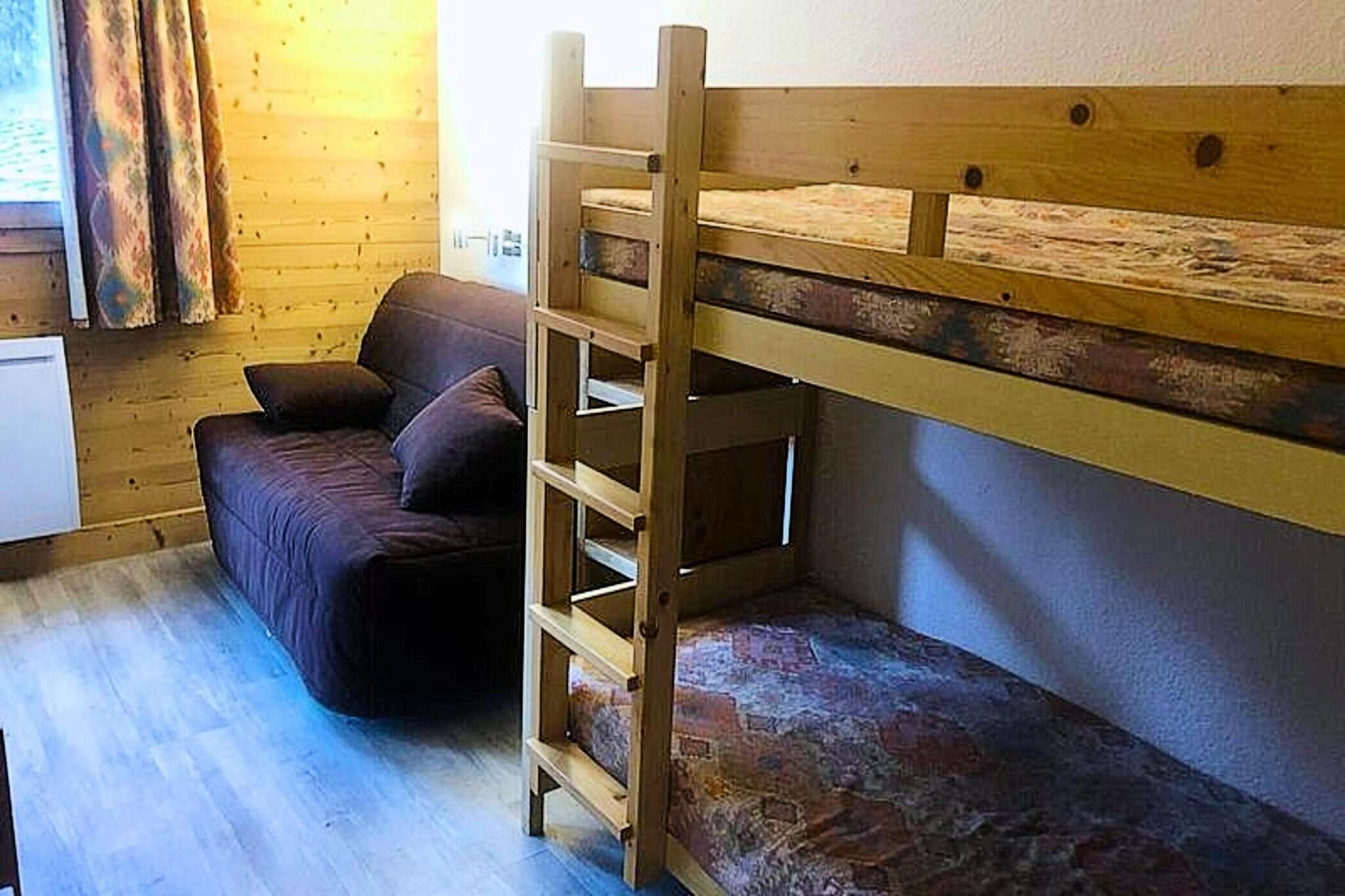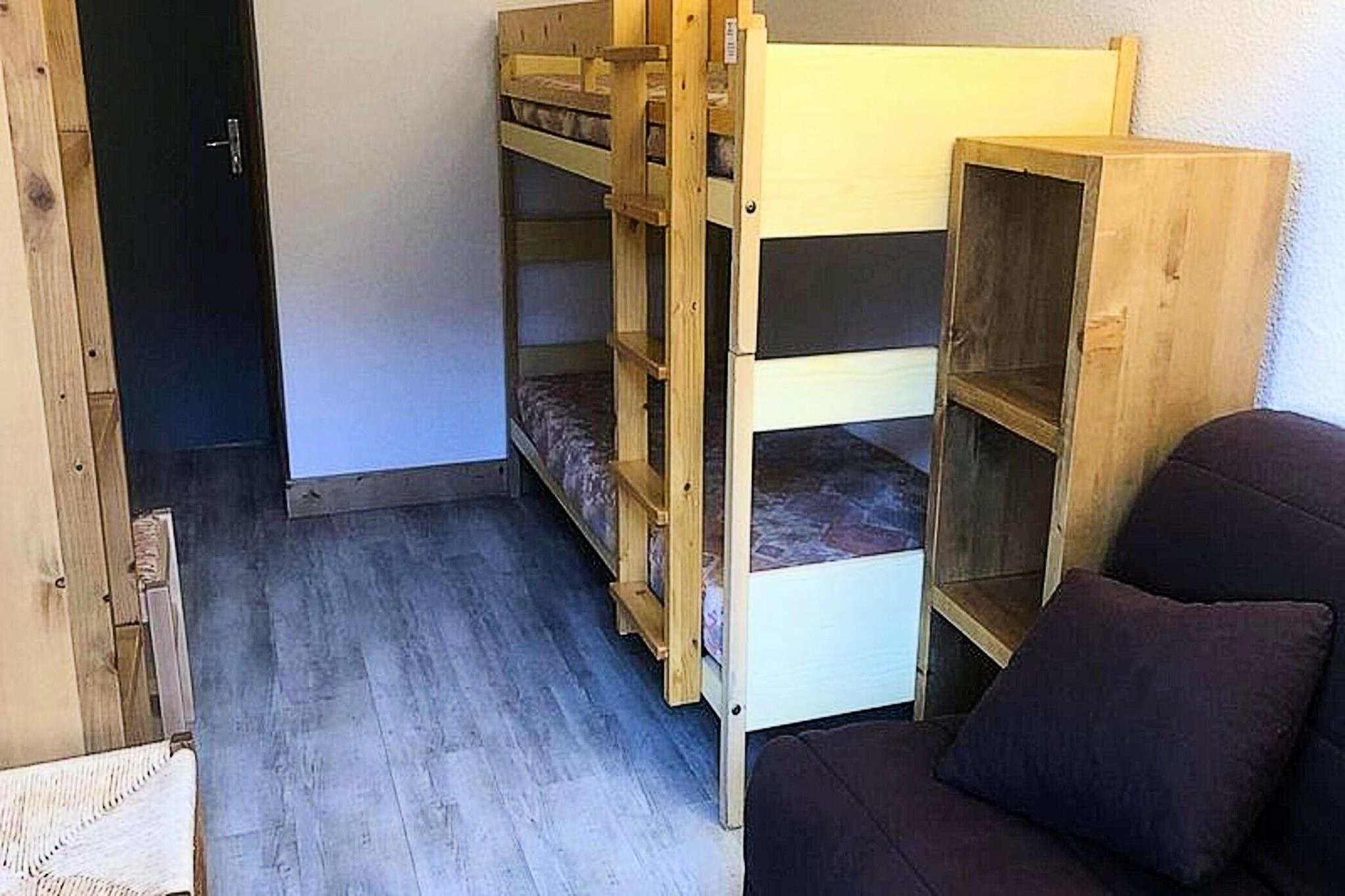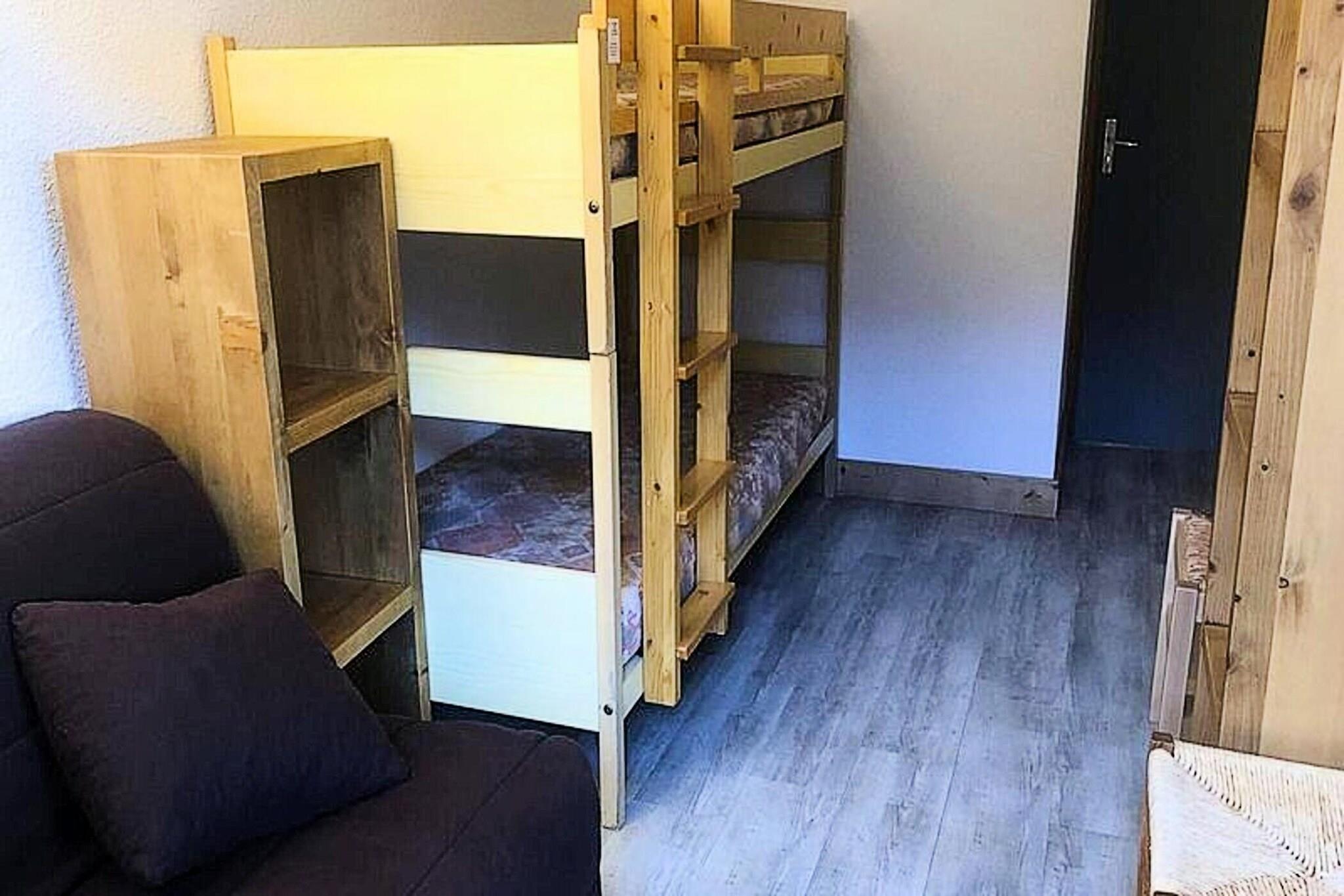This cozy 2-room apartment is designed to accommodate up to 5 guests, offering a comfortable and practical space for families or small groups. The living room features a convertible sofa, while the bedroom is furnished with a convertible sofa and bunk beds. Duvets are provided for all beds, ensuring a restful stay. The apartment is non-smoking, and pets are not allowed. Linen and cleaning services are available for an additional fee, and the tourist tax is not included in the rental price. Located in the hamlet of Planchamp, the apartment is ideally positioned just 5 minutes from the ESF lessons, shops, and the Piou Piou club, making it a great choice for those looking to enjoy skiing and family activities. It is also at the foot of the slopes, providing easy access to outdoor adventures. The area is vibrant with local cafes and markets, offering a variety of dining and shopping options. The apartment features a well-equipped kitchenette with a fridge, mini oven, microwave, and electric plate for preparing meals. A dishwasher, electric coffee maker, Senseo coffee maker, kettle, toaster, and blender are also provided for added convenience. For cozy evenings, a raclette/grill machine for 8 people is available. The apartment includes a separate bathroom and toilet, and heating ensures a comfortable atmosphere throughout your stay.