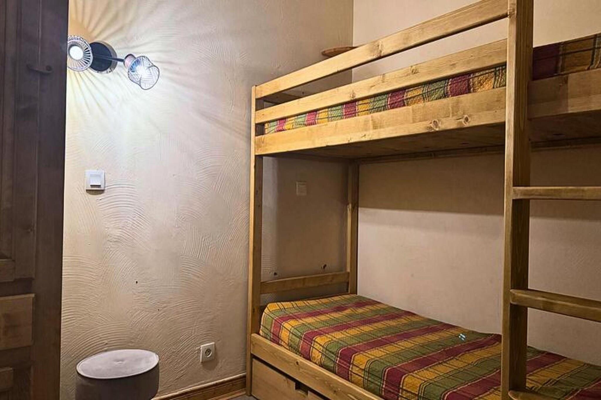 This spacious 3-room apartment is designed to accommodate up to 7 people, making it perfect for families or small groups. It features a convertible sofa in the living room, a single bed and bunk beds in the first bedroom, and a double bed in the second bedroom, all equipped with duvets. The apartment has two bathrooms, one with a bathtub and the other with a shower, as well as two toilets, one of which is independent. It is a non-smoking property, and pets are not allowed. Linen and cleaning services are not included but can be booked as optional extras. Situated in the scenic hamlet of La Forêt, this apartment is just 5 minutes from the ESF lessons and the Piou Piou club, ideal for families with children. The resort center and shops are only 3 minutes away, providing easy access to local amenities, while the slopes are just 2 minutes from your doorstep. The north-facing balcony offers stunning views of the valley, allowing you to unwind after a day of skiing or exploring the area. The apartment is equipped with an American kitchen, featuring a fridge, dishwasher, mini oven, microwave, and 4 electric hotplates for convenient meal preparation. Additional amenities include an electric coffee maker, kettle, toaster, and Wi-Fi. The apartment also has a Samsung Swift vacuum cleaner for added convenience and a heating system to keep you warm during your stay. Access to the apartment is easy via the elevator from the Teppes P1 covered car park.
