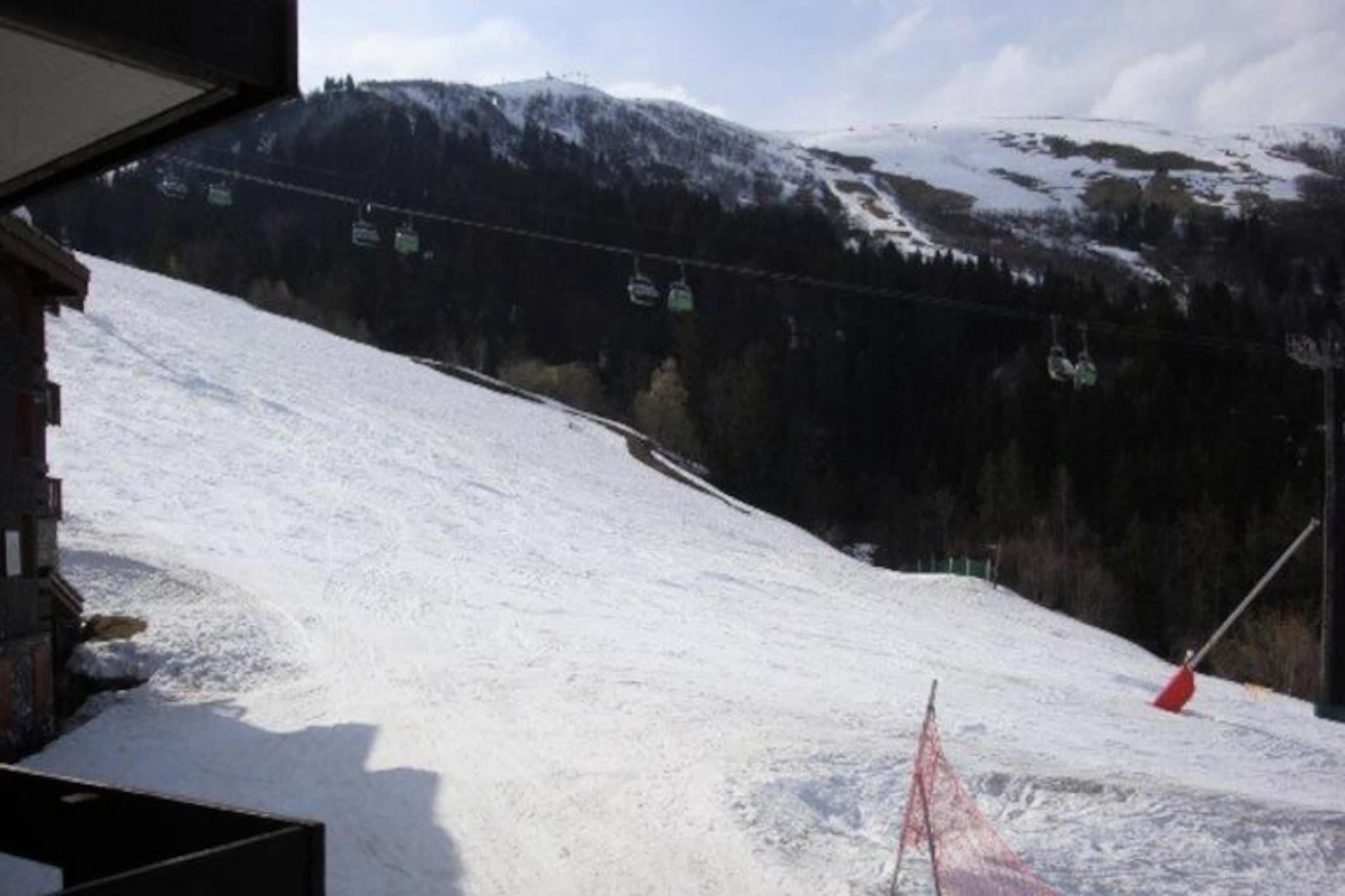 Denne charmerende studiohytte ligger i udkanten af ??pisterne i det maleriske Mottet-område i Valmorel og tilbyder en uovertruffen beliggenhed for både skientusiaster og familier. Forestil dig at vågne op til synet af snedækkede tinder fra din nordvestvendte balkon, gå udenfor for at få direkte adgang til pisterne og nyde bekvemmeligheden ved at være kun 20 meter fra skiskolen. Den rolige gågade sikrer en fredelig atmosfære, mens den nærliggende Télèbourg-jernbane forbinder dig ubesværet med feriestedets centrum for spisesteder og shoppingmuligheder. \n\nIndenfor er lejligheden omhyggeligt designet til at maksimere komfort og funktionalitet. Stuen har en hyggelig dobbeltsovesofa og et tv, perfekt til at slappe af efter en dag på bjerget. Soveværelset i hytten har køjesenge, der er ideelle til børn eller ekstra gæster. Et veludstyret køkken med elektrisk kogeplade, opvaskemaskine, mikrobølgeovn og køleskab gør madlavning til en leg, mens brusebadet med toilet sikrer bekvemmelighed. Yderligere faciliteter inkluderer et skiskab til dit udstyr og adgang til bilen direkte foran boligen. Kæledyr er velkomne mod et lille tillæg, hvilket gør dette til et godt valg for hele familien. \n\nValmorel tilbyder et væld af aktiviteter ud over skiløb, fra naturskønne stier til livlige afterski-steder. Børneklubben, Piou Piou, er let tilgængelig, hvilket gør denne ejendom til en favorit for familier med små børn. Butikker ligger kun 260 meter væk, og parkeringskælder anbefales for ekstra bekvemmelighed. Uanset om du er her for at køre på pisterne eller blot nyde den alpine charme, er denne studiohytte den perfekte base for en uforglemmelig bjergferie.
