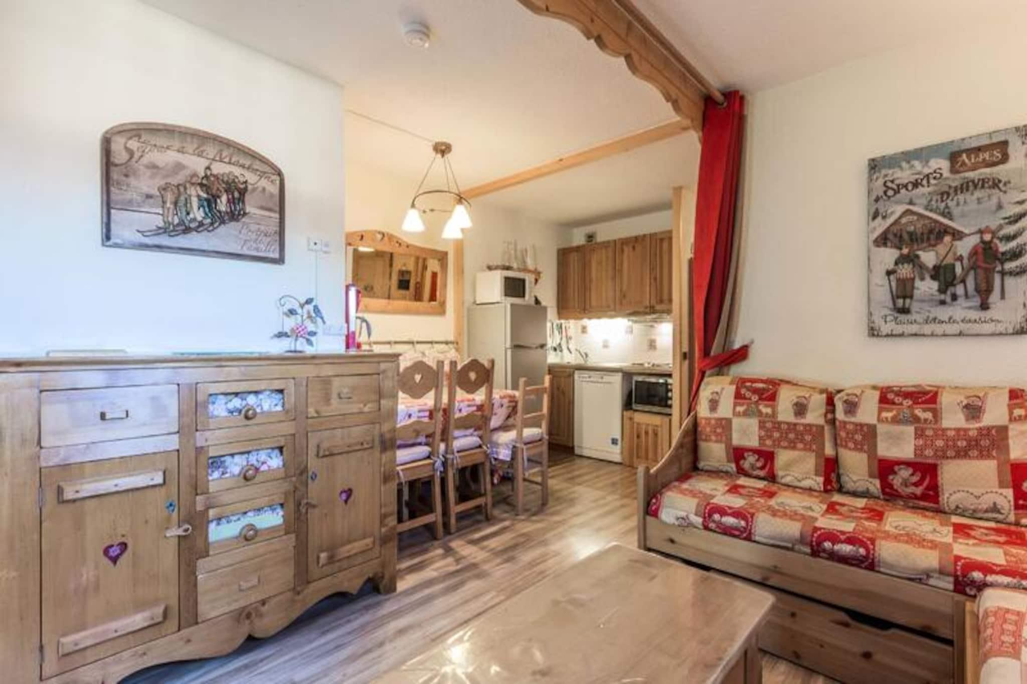Hvor pisterne møder ro, tilbyder denne charmerende lejlighed i landsbyen Crève Coeur i Valmorel et idyllisk alpint tilflugtssted for op til fire gæster. Forestil dig at vågne op til den friske bjergluft og træde ud på din sydvestvendte terrasse, hvor udsigten over de snedækkede pister skaber en postkort-perfekt baggrund for din ferie. Uanset om du søger spændende skieventyr eller fredelige øjeblikke omgivet af natur, placerer denne hyggelige indkvartering dig lige i hjertet af det hele. Boligen er bekvemt placeret kun 80 meter fra butikker og skilifter, hvilket sikrer ubesværet adgang til alt, hvad du behøver for et mindeværdigt ophold. \n\nIndvendigt er lejligheden omhyggeligt designet til komfort og praktisk anvendelighed. Stuen har tre enkeltsenge og et tv, hvilket skaber et indbydende rum at slappe af efter en dag på pisterne. Et separat soveværelse med en dobbeltseng giver et roligt tilflugtssted for afslappende nætter. Det åbne køkken, udstyret med keramisk kogeplade, opvaskemaskine, ovn og mikrobølgeovn, inviterer dig til at tilberede solide måltider til at nyde med dine kære. Yderligere faciliteter inkluderer et brusebad med vaskemaskine, et separat toilet og et skiskab for din bekvemmelighed. Bemærk venligst, at Wi-Fi ikke er inkluderet, og kæledyr er ikke tilladt, hvilket sikrer et fredeligt og rent miljø for alle gæster. \n\nLandsbyen Crève Coeur er perfekt beliggende til at udforske Valmorels charme. Essentielle butikker som et bageri, en sportsbutik og en dagligvarebutik ligger kun få skridt væk, mens ESF-skiskolen er tilgængelig via Télèbourg-liften, der ligger 350 meter fra boligen. Der er betalt parkering i nærheden, og adgang til boligen med bil gør ankomst og afrejse problemfri. Uanset om du er her for vintersport eller sommervandreture, tilbyder denne lejlighed den perfekte base for dine alpine eventyr. Lad de franske alpers skønhed og den indbydende atmosfære i Valmorel skabe uforglemmelige minder til din næste ferie.