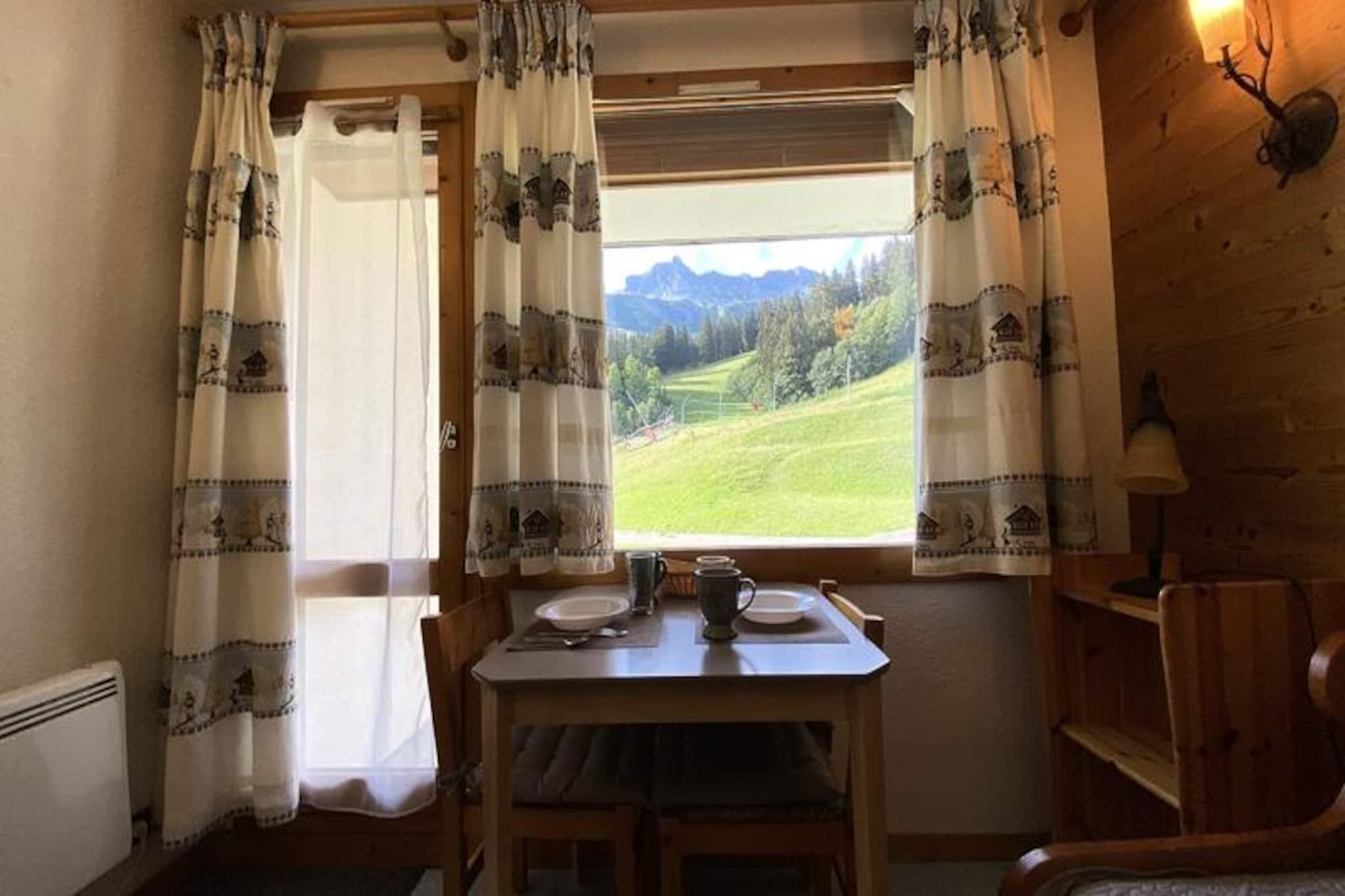 Forestil dig at vågne op til den friske bjergluft og træde ud på din private terrasse for at nyde den fredfyldte, uhindrede udsigt over de franske alper. Denne hyggelige studiolejlighed på 13 m², beliggende i hjertet af Mottet-området i Valmorel, er det perfekte tilflugtssted for to skiløbere, der søger en bekvem og komfortabel alpin ferie. Med skiløjperne og ESF-skiskolen kun få skridt væk, begynder din eventyrdag i det øjeblik, du forlader hoveddøren. Det gåvenlige kvarter sikrer et fredeligt og sikkert miljø, ideelt for både familier og par. \n\nIndvendigt er lejligheden omhyggeligt designet til at maksimere plads og komfort. Opholdsstuen har en enkeltseng og en udtræksseng, der giver fleksible sovemuligheder. Tekøkkenet er udstyret med keramisk kogeplade og mikrobølgeovn, perfekt til at tilberede hurtige måltider efter en dag på pisterne. Brusebadeværelset med toilet er kompakt, men funktionelt, og den østvendte terrasse tilbyder et roligt sted at slappe af med en varm drink, mens du ser solopgangen over bjergene. Yderligere faciliteter inkluderer et skiskab til dit udstyr og muligheden for at medbringe din lodne ledsager mod et lille tillæg. \n\nUd over lejligheden tilbyder Mottet-området uovertruffen adgang til pisterne og skiskolen, hvilket gør det til en favorit blandt ivrige skiløbere og børnefamilier. Télèbourg-svævebanen forbinder dig ubesværet til butikkerne og det livlige centrum af Valmorel, hvor du kan udforske charmerende butikker, hyggelige restauranter og afterski-aktiviteter. For dem, der ankommer i bil, er der parkeringskælder tilgængelig efter forudgående reservation. \n\nUanset om du er her for at grave dig gennem frisk puddersne, nyde naturskønne alpine vandreture eller blot slappe af i de betagende omgivelser, tilbyder denne studiolejlighed alt, hvad du behøver for en uforglemmelig bjergferie.