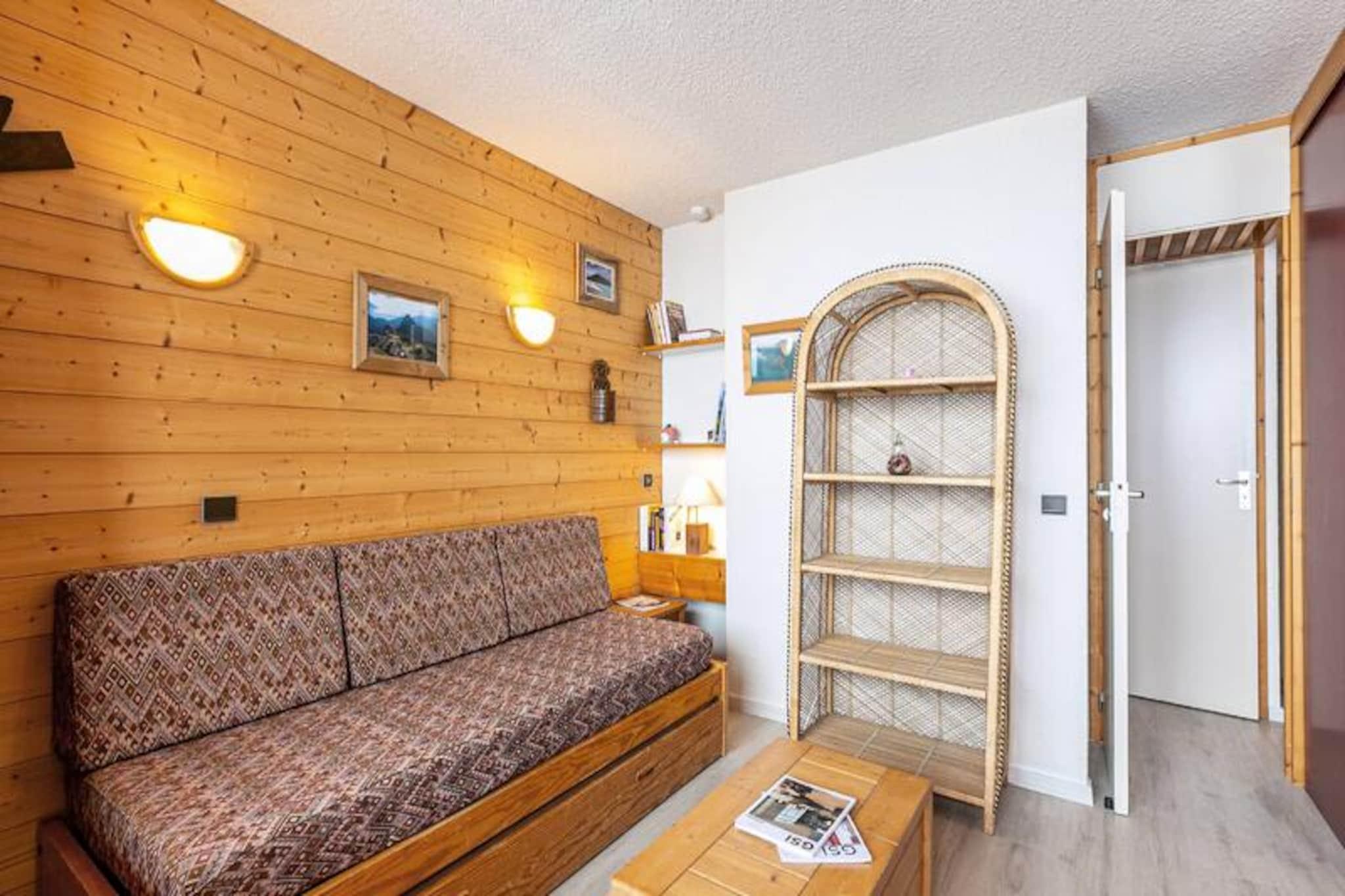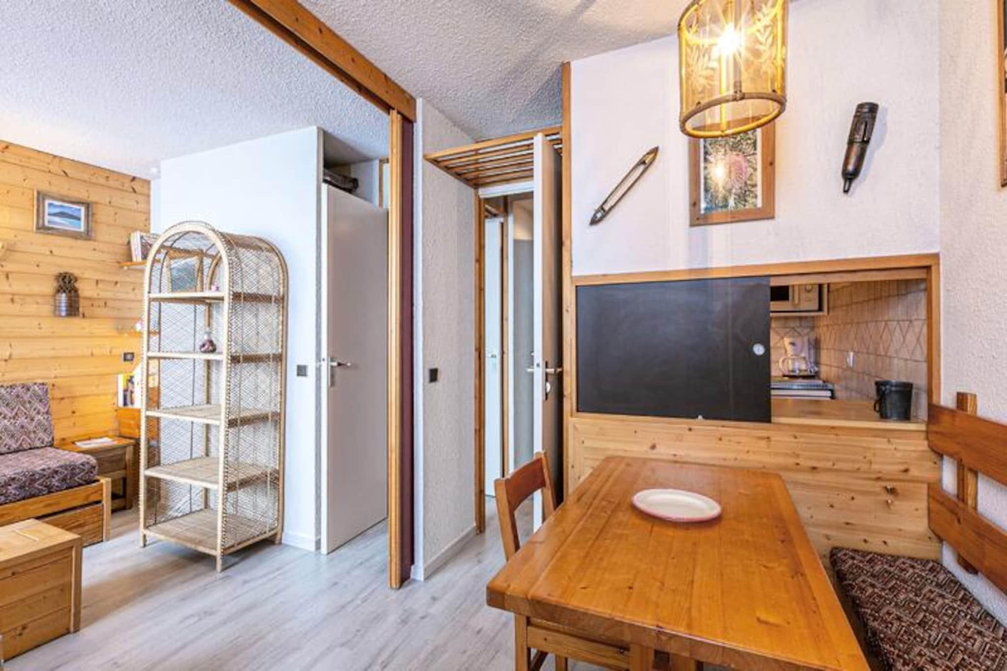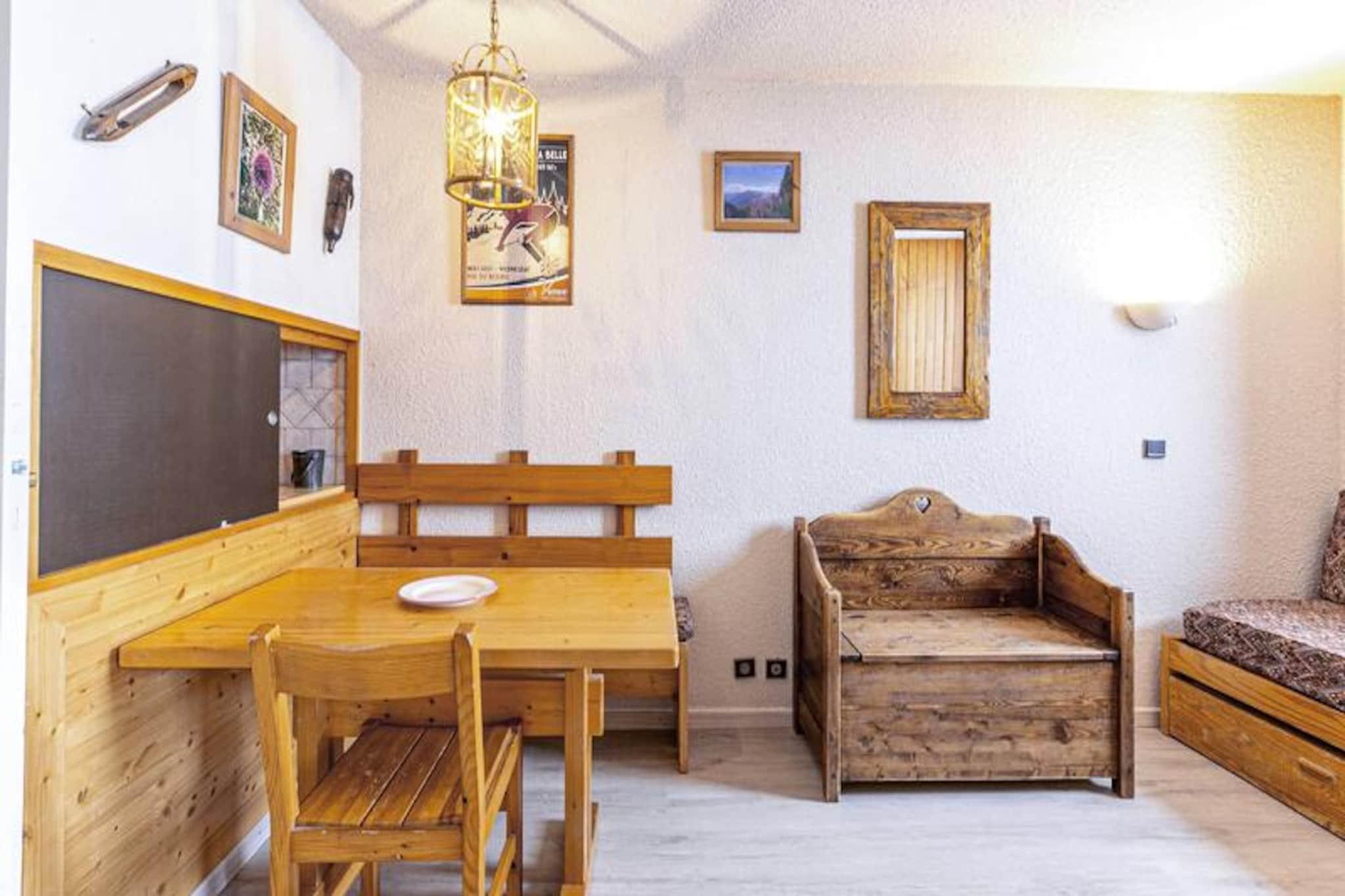 Beliggende i det charmerende Mottet-kvarter i Valmorel, tilbyder dette hyggelige studie en uovertruffen beliggenhed for både skientusiaster og familier. Forestil dig at vågne op til panoramaudsigt fra din nordvendte balkon, træde ud på pisterne kun få meter væk og nyde ubesværet adgang til skiskolen for børn over seks år. Det fodgængervenlige område sikrer et roligt og sikkert miljø, mens den nærliggende Télébourg-svævebane forbinder dig med feriestedets centrum og dets pulserende faciliteter. Dette er et paradis for dem, der søger både eventyr og bekvemmelighed i hjertet af de franske alper. \n\nStudioet er på 27 kvadratmeter og er omhyggeligt designet til at rumme op til fire gæster. En aftagelig skillevæg deler opholdsrummet i to områder, der begge har udtrækssenge til fleksible sovearrangementer. Det separate køkken er udstyret med moderne bekvemmeligheder, herunder opvaskemaskine, elektrisk kogeplade og kombiovn, hvilket gør det nemt at tilberede måltider efter en dag på pisterne. Lejligheden har også et separat badeværelse og toilet, et skirum til dit udstyr og er velkomne til kæledyr mod et ekstra gebyr. Bemærk venligst, at Wi-Fi ikke er inkluderet, og lejligheden er ikke tilgængelig for gæster med nedsat mobilitet. \n\nUd over lejligheden tilbyder Mottet-kvarteret alt, hvad du behøver for en uforglemmelig alpinferie. Skiskolen ligger lige uden for døren, og butikkerne ligger kun en kort køretur væk via Télébourg-svævebanen. Der er betalt underjordisk parkering til rådighed for ekstra bekvemmelighed, hvilket sikrer stressfri adgang til dit køretøj. Uanset om du er her for at sno dig gennem uberørte pister eller udforske feriestedets livlige centrum, lover Valmorel en uforglemmelig oplevelse. \n\nVælg dette studie på grund af dets uovertrufne beliggenhed, hyggelige atmosfære og nærhed til alle de nødvendige fornødenheder. Uanset om du er en erfaren skiløber eller en familie, der ønsker at introducere dine børn til bjergenes glæder, er denne ejendom den perfekte base for dit alpine eventyr.
