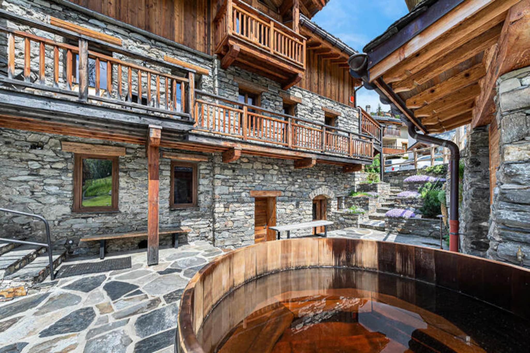 Midt i de charmerende gader i Saint Martin de Belleville, hvor traditionel alpin skønhed møder moderne luksus, ligger det udsøgte chalet 'La Ferme 1779'. Kun hundrede meter fra skilifterne og de lokale butikker tilbyder denne ejendom ikke kun bekvemmelighed, men også en betagende udsigt over dalen, der vil fange dine sanser. Uanset om du er her for at nyde spændingen ved pisterne eller blot slappe af i rolige omgivelser, lover dette chalet et uforglemmeligt ophold i hjertet af de franske alper.\n\n'La Ferme 1779' strækker sig over tre gennemtænkte etager og er et paradis af komfort og elegance. I stueetagen finder du tre elegante dobbeltværelser med eget badeværelse med bruser, en master suite med både badekar og bruser samt et indbydende entréområde. Første sal har et dobbeltværelse, et separat badeværelse med bruser, en børnesal med legende sovepladser og et afslapningsområde med sauna og nordisk bad. Øverste etage kan prale af en rummelig opholdsstue med lounge, åbent køkken, spiseplads og en bar, der alle fører ud til en balkon med panoramaudsigt, der er intet mindre end spektakulær.\n\nGæsterne bliver mødt med exceptionel service, herunder champagne ved ankomst om vinteren, luksuriøst sengelinned og slutrengøring. Chaleten tilbyder også et skirum og vaskeri, hvilket sikrer, at alle detaljer under dit ophold er taget højde for. Selvom kæledyr ikke er tilladt, gør ejendommens varme atmosfære og gennemtænkte faciliteter den ideel til familier og grupper, der søger et raffineret alpint tilflugtssted.\n\nMed sin nærhed til skilifterne, lokale butikker og den fortryllende landsbyatmosfære er 'La Ferme 1779' perfekt placeret til at udforske vidunderne i Saint Martin de Belleville. Uanset om du nyder dalens ro eller dyrker vintersport, er denne chalet din port til magien i de franske alper.