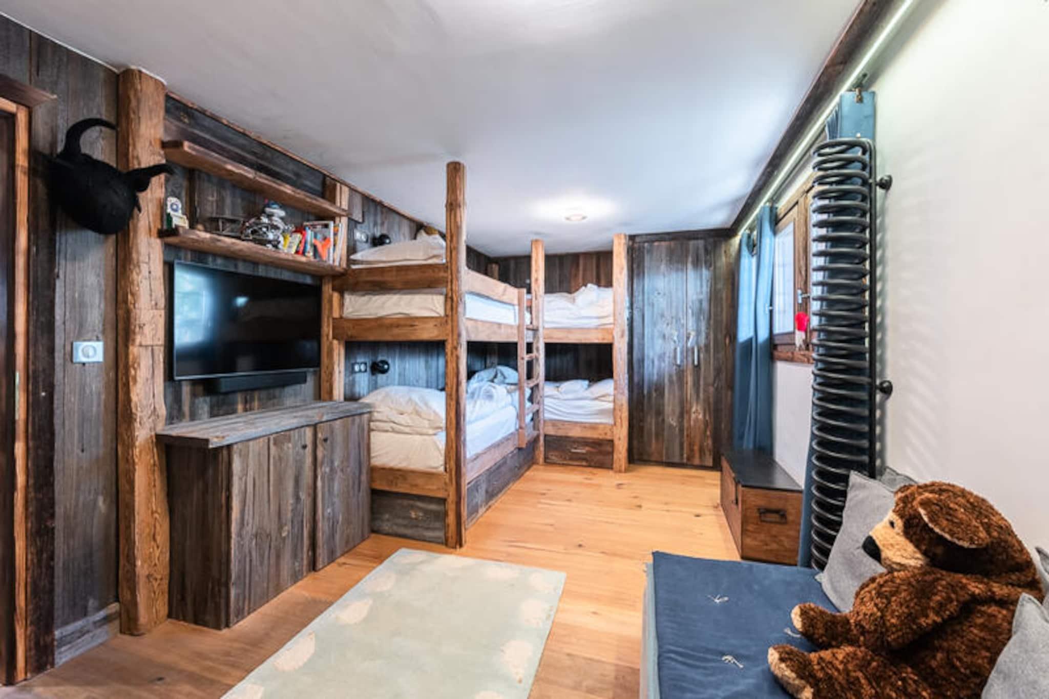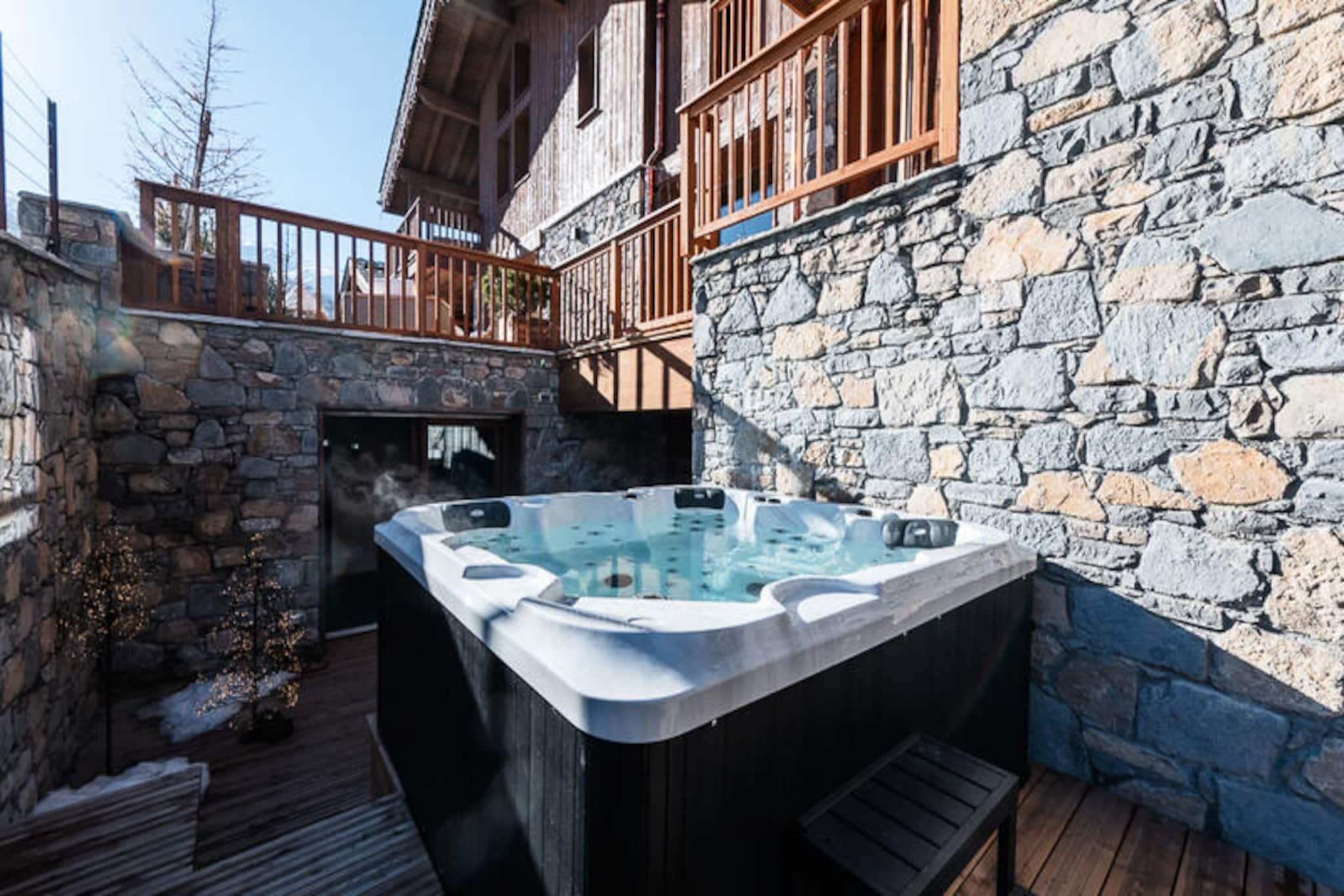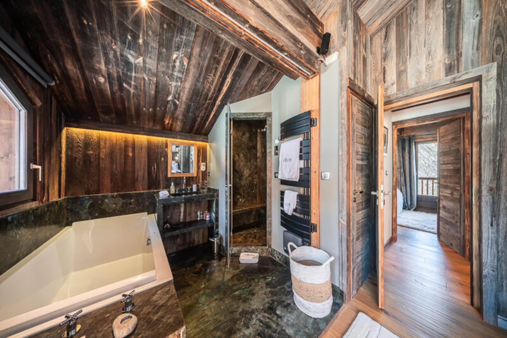 Midt i Belleville-dalens betagende tinder tilbyder denne udsøgte hytte i Saint-Martin-de-Belleville et uovertruffent alpint tilflugtssted. Med sin førsteklasses beliggenhed 1.450 meter over havets overflade er hytten perfekt placeret i det berømte skiområde Les Trois Vallées, der kan prale af 600 kilometer uberørte pister og faciliteter i verdensklasse. Uanset om du er en ivrig skiløber eller blot søger roen i bjergene, lover denne luksuriøse oase en uforglemmelig oplevelse. Saint-Martins charme ligger i dens unikke blanding af exceptionel skiløb og en autentisk landsbyatmosfære, hvilket gør den til en skjult perle for dem, der værdsætter både eventyr og raffineret livsstil. \n\nFordelt på tre etager er hytten et mesterværk af design og komfort. Stueetagen har et skirum, et spillerum med hjemmebiograf og en terrasse med spabad, bålplads, sauna og dampbad. Første sal inviterer dig til at slappe af i den rummelige opholdsstue med en videoprojektor, et åbent køkken og en stor terrasse med et afslapningsområde. På anden sal venter fem elegante dobbeltværelser, alle med eget badeværelse og private balkoner med en fantastisk udsigt over bjergene. Moderne bekvemmeligheder såsom en glastrappe, aftagelige videoskærme og luksuriøse badeværelser løfter dit ophold til nye højder af komfort. \n\nUd over hytten fortryller Saint-Martin-de-Belleville med sin charmerende landsbymidte, der er let tilgængelig via den gratis shuttle, der kun ligger 15 meter fra din dør. Udforsk den pulserende lokale kultur, forkæl dig selv med gourmetmad, eller nyd blot roen i dette alpine paradis. Uanset om du er her for vintersport eller sommervandreture, giver de majestætiske omgivelser i Belleville-dalen uendelige muligheder for eventyr og afslapning. Gør denne hytte til dit hjem væk fra hjemmet, og skab minder, der vil vare hele livet.