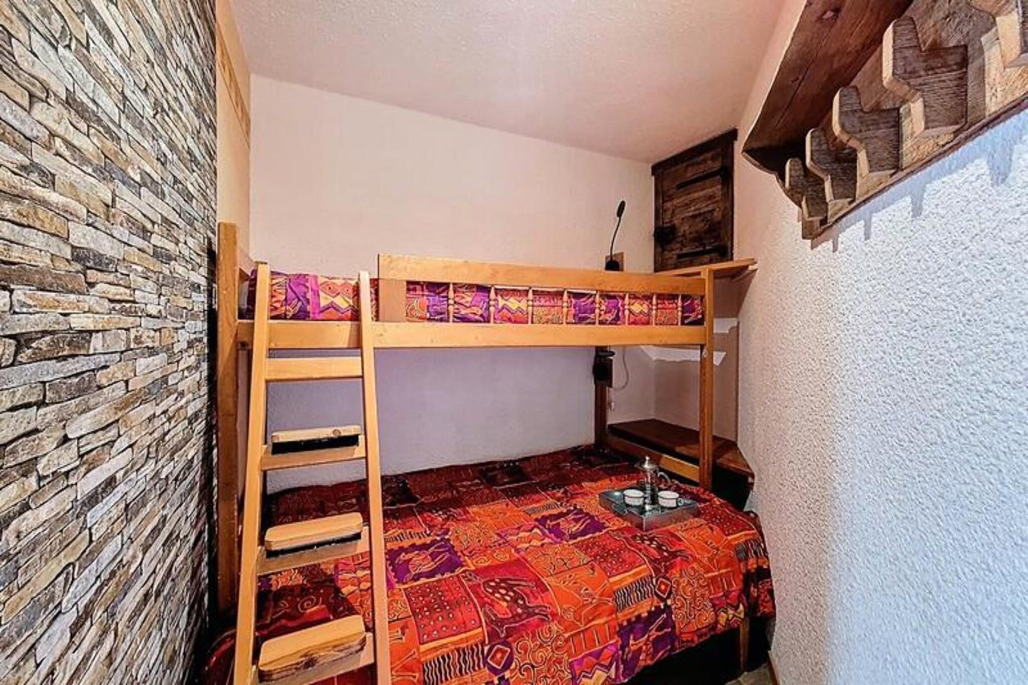 Højt over de pulserende gader i Val Thorens tilbyder denne charmerende studiolejlighed et hyggeligt tilflugtssted med betagende udsigt over det omkringliggende alpine landskab. Beliggende på 7. sal i LE SERAC-residensen bader denne sydvendte perle i naturligt lys og skaber en varm og indbydende atmosfære for op til fire gæster. Uanset om du er her for at klatre på de uberørte pister eller blot nyde bjergroen, lover denne ejendom et uforglemmeligt ophold i hjertet af skisportsstedet Les Trois Vallées. \n\nIndvendigt er lejligheden omhyggeligt designet til komfort og bekvemmelighed. Stuen har en sovesofa til to, en ekstra sofa og et fjernsyn, perfekt til at slappe af efter en dag med eventyr. Det åbne køkken er fuldt udstyret med moderne apparater, herunder et kogeplade med 4 blus, mikrobølgeovn med grillfunktion, køleskab, kaffemaskine, elkedel og brødrister, hvilket gør det nemt at tilberede solide måltider. En sovealkove med køjesenge (en 140 cm og en 90 cm) giver et hyggeligt hvileområde, mens badeværelset har et badekar og separat toilet for ekstra privatliv. Med flisebelagt gulv, dyner som sengetøj og et skirum er hver eneste detalje tænkt over for at sikre et behageligt ophold. \n\nTræd udenfor, og du vil befinder dig kun få øjeblikke fra pisterne, tilgængelig via gaden. Det nærliggende Péclet indkøbscenter tilbyder et udvalg af restauranter, butikker og essentielle tjenester som et apotek, så du har alt hvad du behøver lige ved hånden. Val Thorens er kendt for sin livlige afterskiing-scene, skiløb i verdensklasse og fantastiske bjergudsigter, hvilket gør det til en drømmedestination for vintersportsentusiaster. \n\nUanset om du søger spændende nedkørsler, hyggelige aftener eller den simple glæde ved at vågne op til de solbeskinnede tinder, er denne studiolejlighed din indgang til den ultimative alpine oplevelse. Book dit ophold og oplev Val Thorens magi selv.