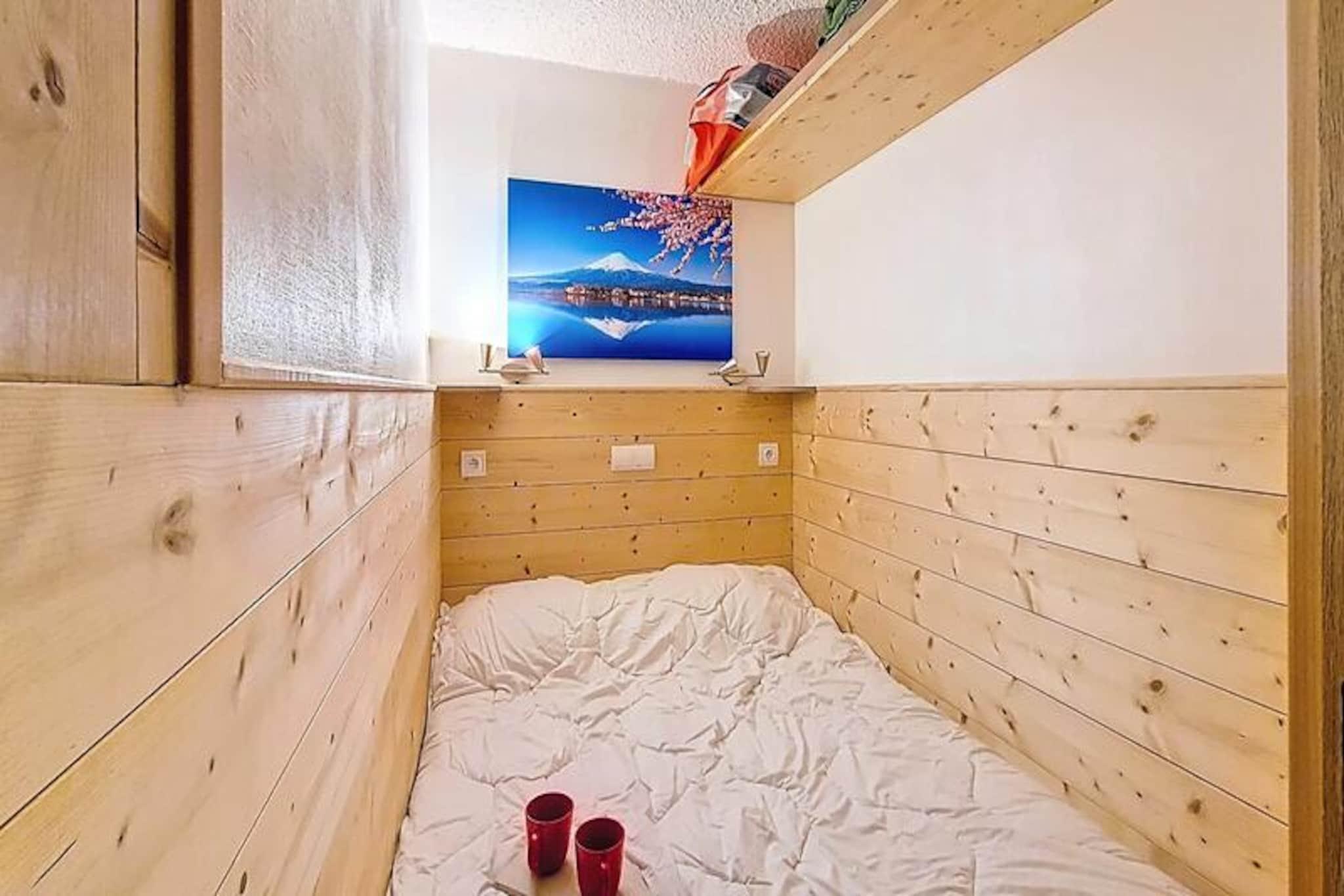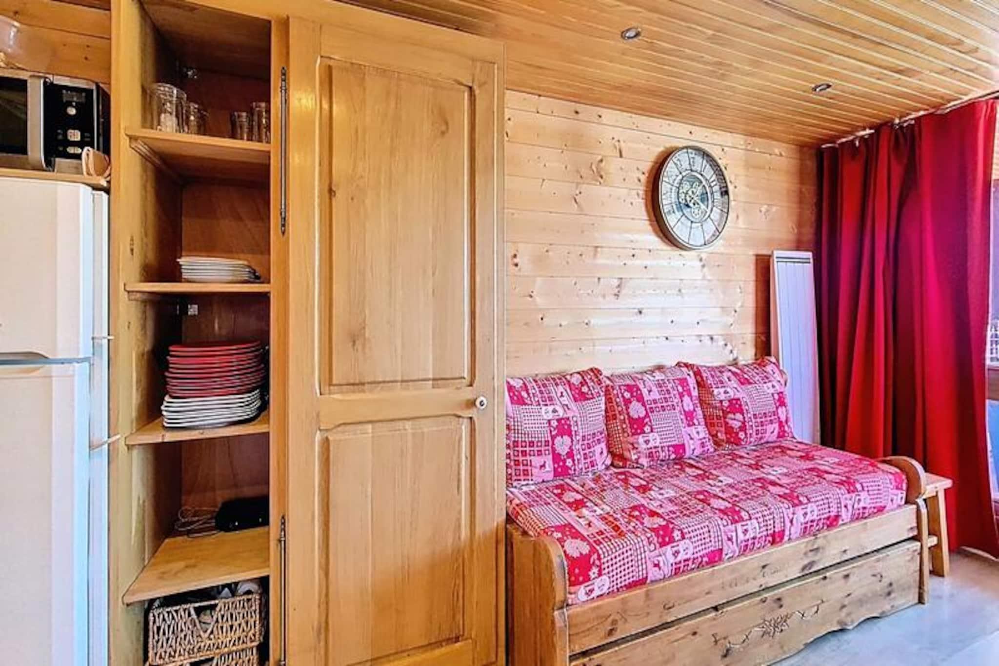 Højt over Val Thorens' travle hjerte tilbyder denne charmerende studiolejlighed et roligt tilflugtssted med betagende udsigt over de omkringliggende alpine tinder. Beliggende på 7. sal i LE SERAC-residensen kombinerer den bekvemmelighed og komfort, hvilket gør den til et ideelt valg for par eller små familier, der søger en mindeværdig bjergferie. Med Péclet-indkøbscentret kun få skridt væk finder du alt, hvad du behøver, fra hyggelige restauranter til lokale butikker og essentielle tjenester, lige uden for døren. Og når det er tid til at tage på pisterne, sikrer direkte adgang via gaden, at du aldrig er langt fra begivenhedernes centrum. \n\nLejligheden er på 34 m² og er omhyggeligt designet til at maksimere plads og lys. Opholdsstuen har en komfortabel sovesofa til to, en anden sofa til afslapning og et fjernsyn til at slappe af efter en dag med eventyr. Det åbne køkken er fuldt udstyret med moderne apparater, herunder et kogeplade med 4 blus, mikrobølgeovn med grillfunktion, køleskab, kaffemaskine, elkedel og brødrister - perfekt til at tilberede solide måltider til dine alpine udforskninger. Soveområdet har køjesenge med en dobbeltseng og en enkeltseng, mens badeværelset har et badekar til at lindre trætte muskler. Et separat toilet giver ekstra komfort.\n\nGæsterne vil sætte pris på flisegulvene, de medfølgende dyner og betænksomme detaljer som et skiskab til nem opbevaring. Boligen sikrer et problemfrit ophold med inkluderet slutrengøring, sengelinned og håndklæder. Bemærk venligst, at lejligheden er røgfri, kæledyrsfri og overholder sikkerhedsforskrifterne for brug af køjesenge.\n\nUanset om du er her for at grave dig gennem uberørt sne eller nyde den pulserende afterskiing-atmosfære, placerer dette hyggelige studie dig i hjertet af det verdensberømte skiområde Les Trois Vallées. Med sin uovertrufne beliggenhed, fantastiske udsigt og indbydende atmosfære er det den perfekte base for at skabe uforglemmelige alpine minder.