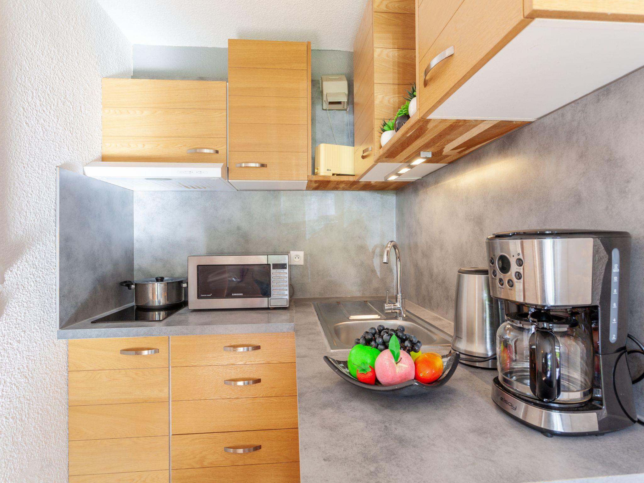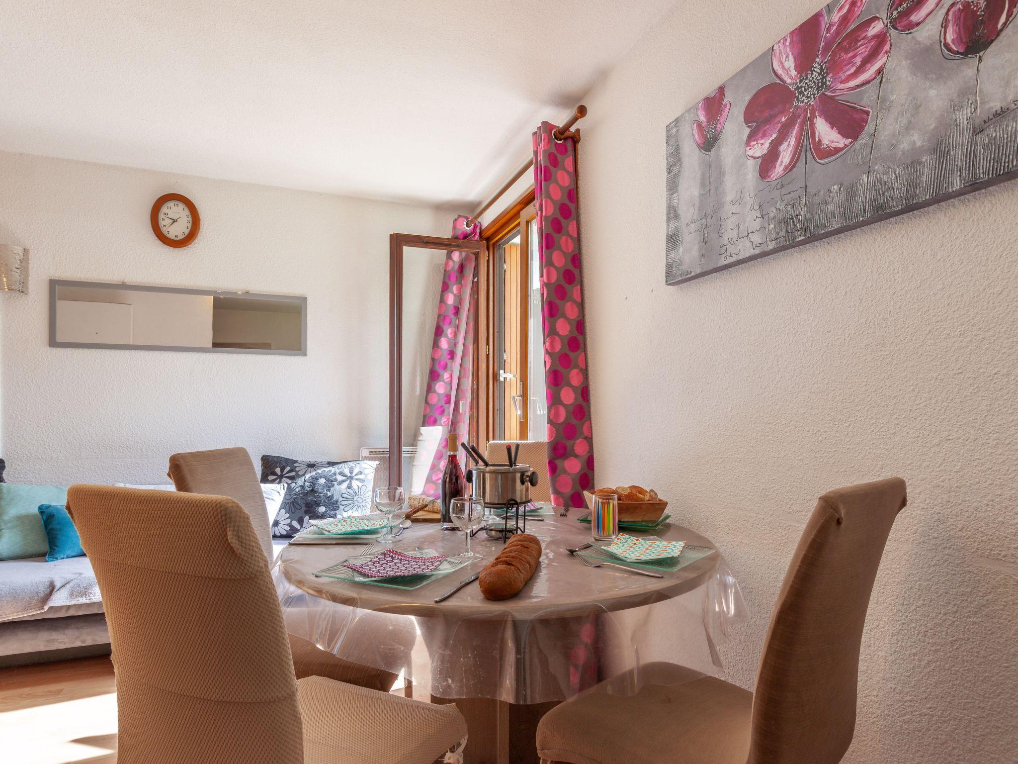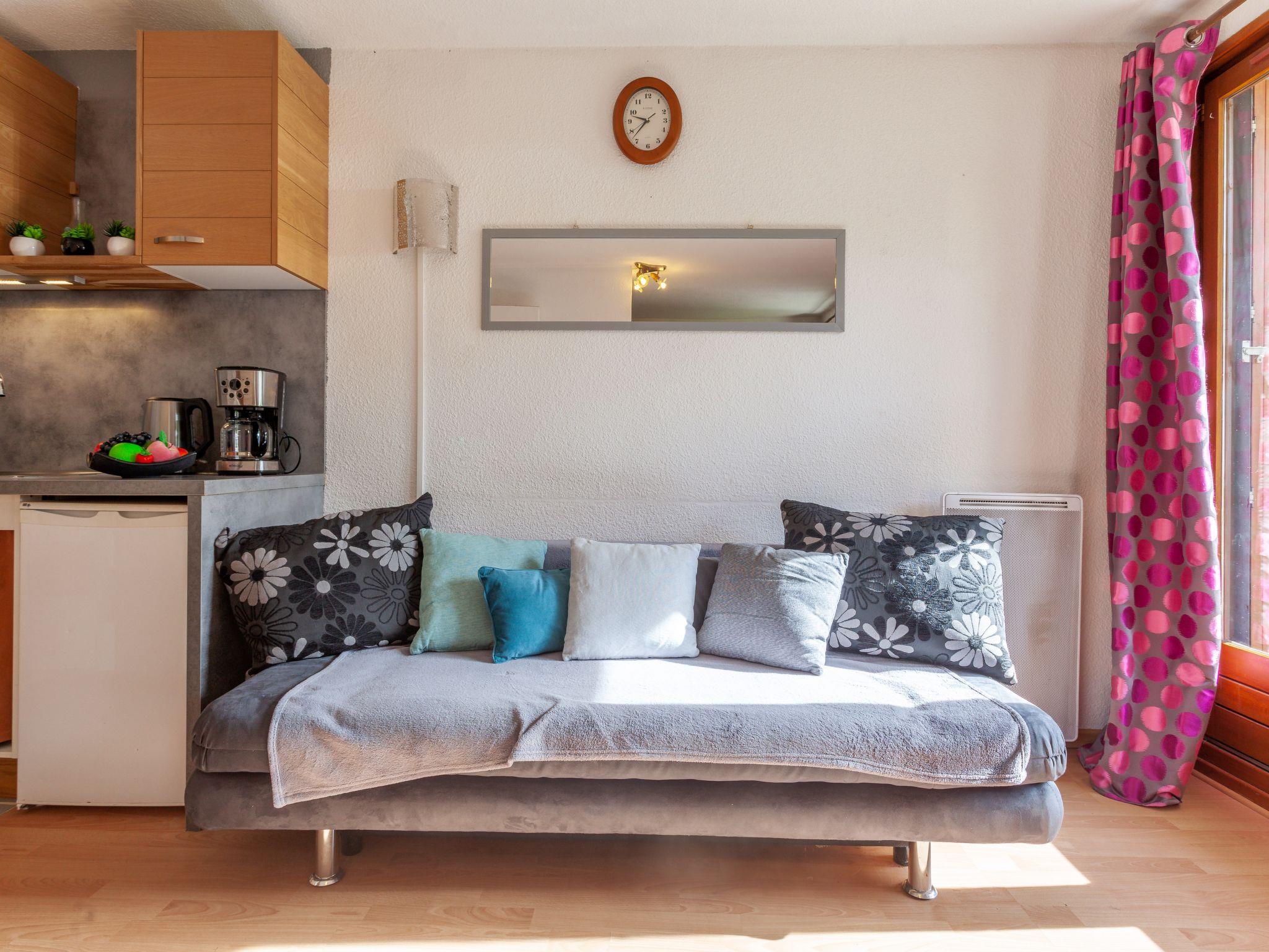 1-room apartment 25 m2 on 1st floor, south facing position. Beautiful furnishings: entrance hall with 1 x 2 bunk beds (90 cm). Living/dining room with TV (flat screen). Sleeping alcove with 1 french bed (140 cm). Kitchenette (oven, 2 induction hot plates, electric coffee machine, combination microwave). Bath/WC. Electric heating. Small balcony. View of the mountains and the ski run. Please note: smoke alarm. This property is situated in building A. Instead of an enclosed bedroom, some sleeping areas are located in an open-plan area (gallery, alcove, etc.). Offer by a private individual according to Art. 155, IV of CGI.