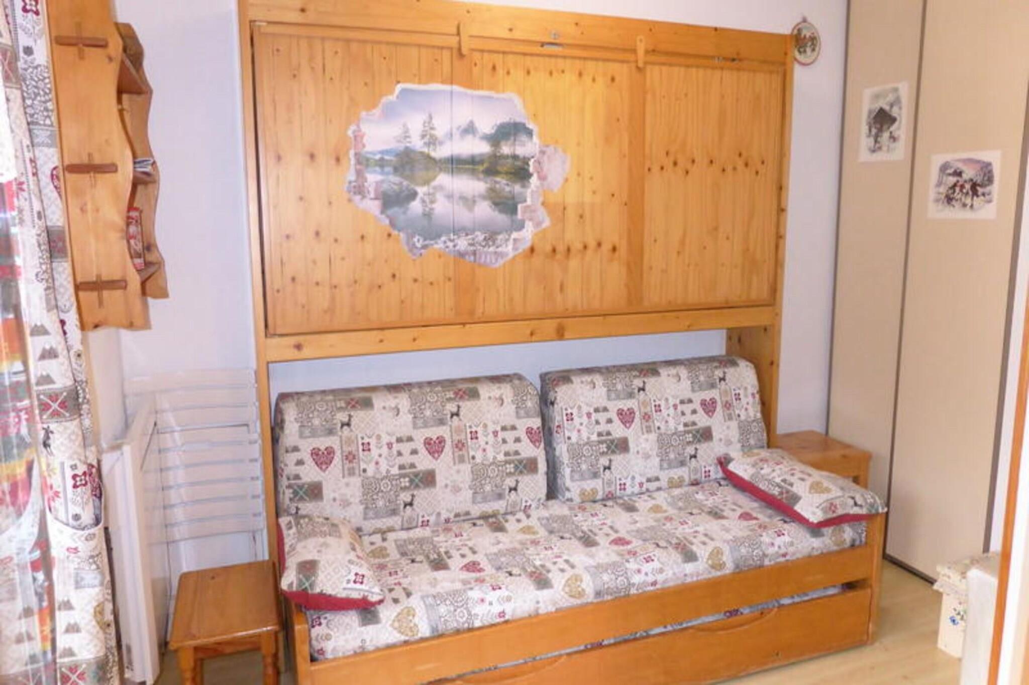 Dette hyggelige bjergstudie tilbyder et indbydende tilflugtssted for op til seks gæster, perfekt til familie eller venner. Beliggende på tredje sal med vestvendt udsigt, rummer rummet et lyst opholdsområde med en sovesofa, en kabine med en udtrækssofa og et soveværelse med køjesenge. Gæsterne kan slappe af på den private balkon, som er et naturskønt sted at slappe af. Yderligere faciliteter omfatter et tv med en dvd-afspiller, en vaskemaskine, et skiskab og en overdækket parkeringsplads. Bemærk venligst, at kæledyr ikke er tilladt. Ejendommen ligger i hjertet af en charmerende landsby, kun 350 meter fra skilifte og 1,4 kilometer fra landsbyens centrum, hvilket sikrer nem adgang til pisterne og lokale attraktioner. Inden for gåafstand finder du et bageri, en købmand og flere sportsbutikker. Uanset om du ønsker at køre på pisterne, udforske de omkringliggende stier eller nyde en varm drink på en nærliggende café, er dette sted perfekt til at fordybe dig i den alpine atmosfære. Studiet har et veludstyret tekøkken med komfur, mikroovn, køleskab og opvaskemaskine, hvilket gør det nemt at tilberede måltider under dit ophold. Badeværelset har bruser og håndvask samt separat toilet for ekstra bekvemmelighed. For yderligere komfort er udlejningstjenester tilgængelige for Wi-Fi, sengetøj og børnepasningsudstyr, sammen med en valgfri slutrengøring. Puder, dyner og service er tilvejebragt, hvilket sikrer en behagelig og problemfri bjergflugt.