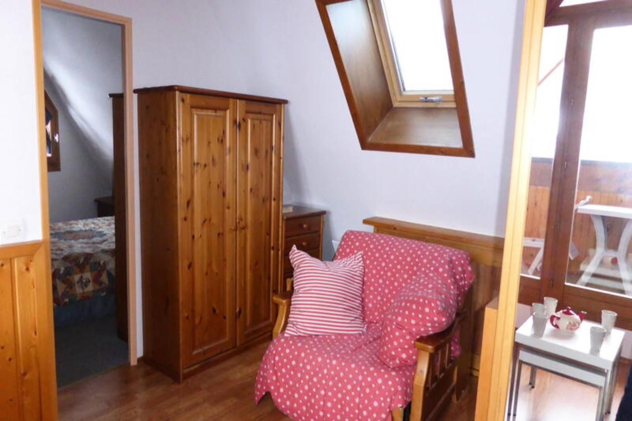 Denne charmerende treværelses lejlighed tilbyder et dejligt tilflugtssted for op til fem gæster, hvilket gør den ideel for familier eller vennegrupper. Lejligheden ligger på tredje sal og har en rummelig stue med en komfortabel lænestolsseng, en lys spiseplads og en sydvestvendt balkon til afslappende stunder med naturskøn udsigt. Det omfatter to soveværelser - et med en hyggelig dobbeltseng og et andet med udtrækssenge - som giver alsidige sovearrangementer. Ejendommen er ikke-kæledyrsvenlig og inkluderer et skiskab for nemheds skyld. Beliggende kun 450 meter fra skilifterne og 1,5 kilometer fra landsbyens centrum, er dette feriehus perfekt placeret til at udforske bjergene. Den nærliggende landsby har en købmand, sportsbutikker og et bageri, hvilket sikrer, at alle dine væsentlige ting er inden for rækkevidde. Uanset om du er klar til en dag på pisterne eller nyder charmen ved de lokale caféer og butikker, tilbyder denne beliggenhed en perfekt blanding af ro og tilgængelighed. Lejligheden har et veludstyret køkkenområde med induktionskogeplader, en miniovn, et køleskab, en opvaskemaskine og en mikrobølgeovn, hvilket gør madlavning til en leg. Badeværelset har badekar og vaskeskab samt et ekstra separat toilet og håndvask for ekstra bekvemmelighed. Valgfri tjenester, herunder Wi-Fi, sengetøj, børnepasningsudstyr og slutrengøring, er tilgængelige for at forbedre dit ophold. Puder, dyner og køkkenudstyr er tilvejebragt for en behagelig og problemfri bjergferie.