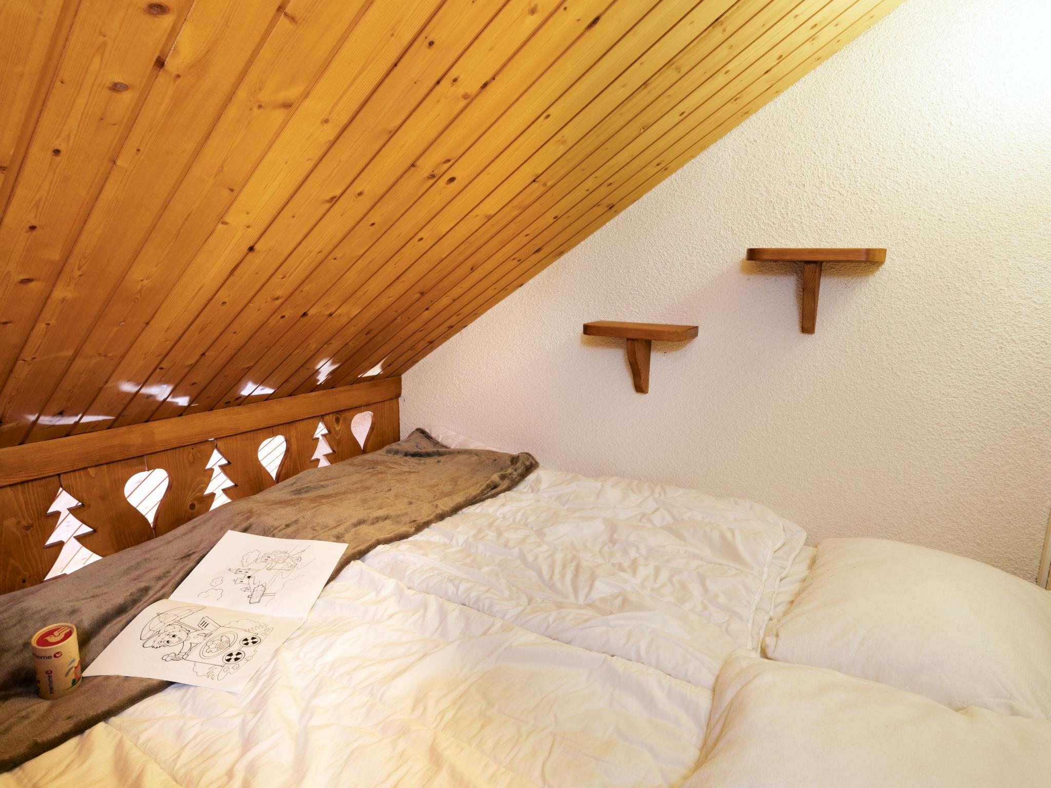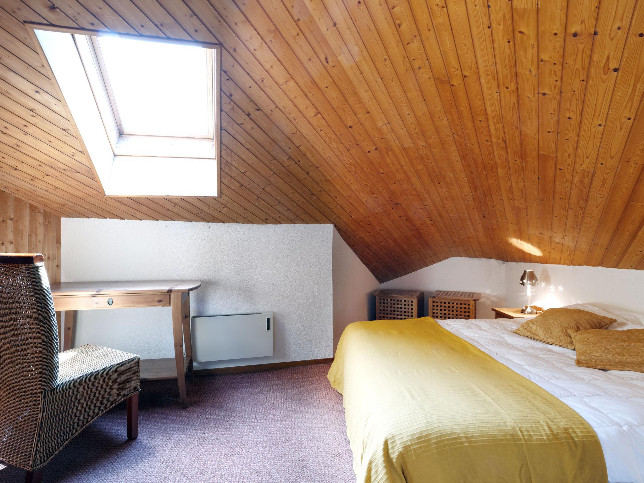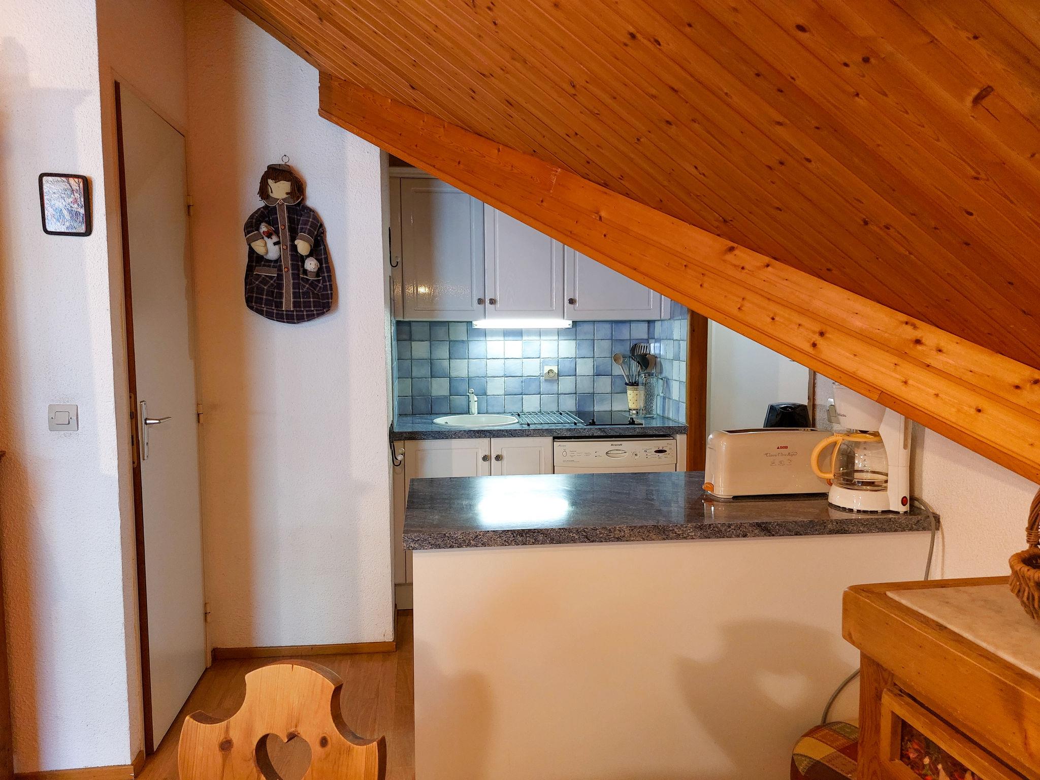2-room penthouse 48 m2 on 4th floor. With sloping ceilings, comfortable furnishings: living/dining room with TV and radio. 1 room with 1 french bed (160 cm). Sleeping alcove with 1 french bed. Kitchenette (2 hot plates, dishwasher, toaster, kettle, microwave, grill, electric coffee machine, raclette grill, fondue Set (cheese)) with hatch. Shower, sep. WC. Electric heating. Balcony, west facing position. Facilities: Internet (WiFi, extra). Parking space n 1301 (roofed). Please note: smoke alarm. Instead of an enclosed bedroom, some sleeping areas are located in an open-plan area (gallery, alcove, etc.). 74085 000465 KU