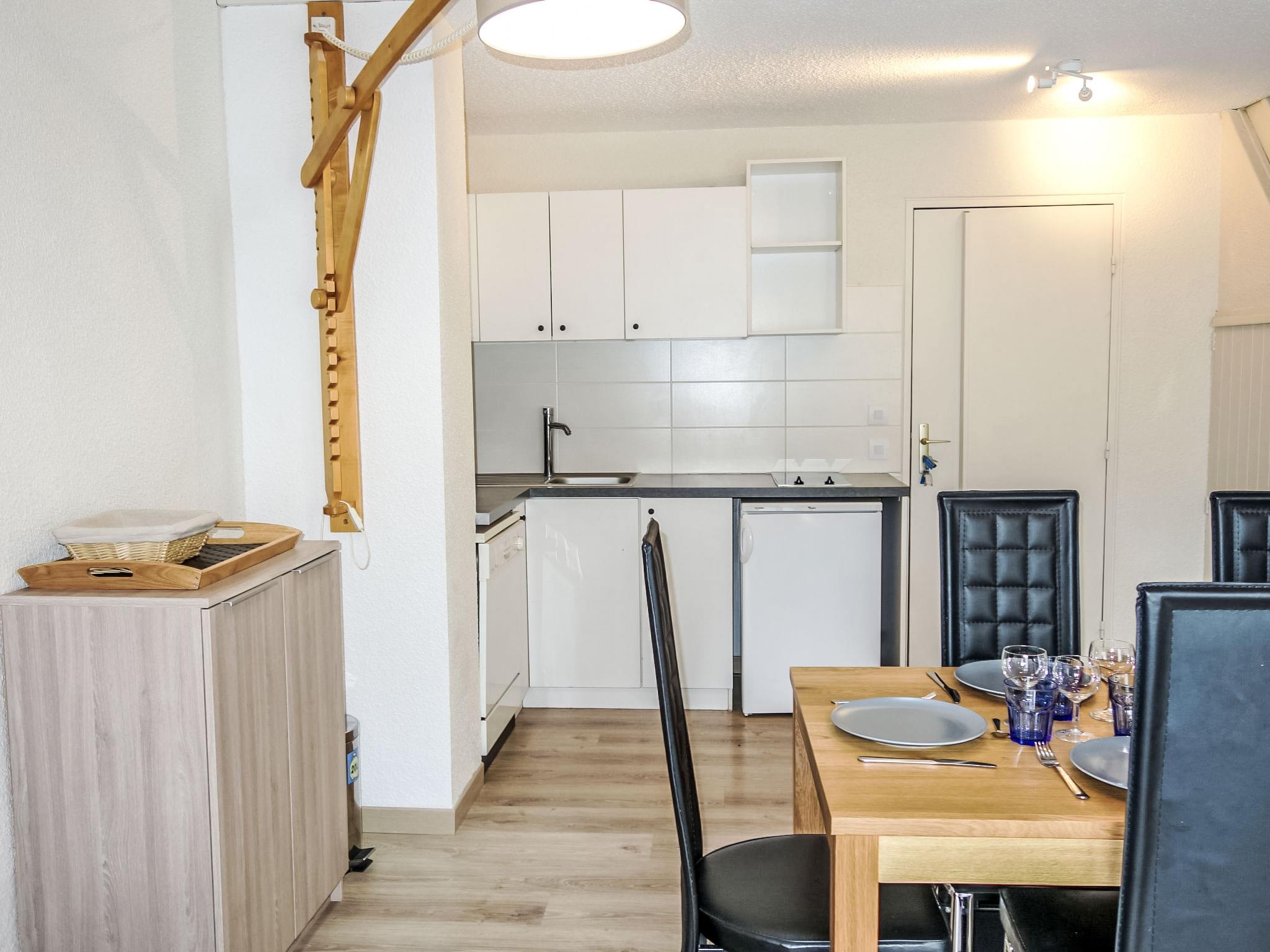 3-room apartment 60 m2 on 2 levels on 4th floor. Renovated in 2015: living/dining room with 1 double sofabed and TV. Kitchenette (dishwasher, 2 ceramic glass hob hotplates, toaster, kettle, microwave, electric coffee machine, raclette grill). Top floor: 1 room, ceiling height 120 - 230 cm with 1 double bed (140 cm, length 190 cm). 1 room, ceiling height 120 - 230 cm with rooflight with 2 beds (90 cm, length 190 cm). Bathroom, shower/WC. Electric heating. Balcony, south facing position. Facilities: Internet (WiFi, extra). Parking space n 630 (roofed). Please note: smoke alarm. 74085000467AQ