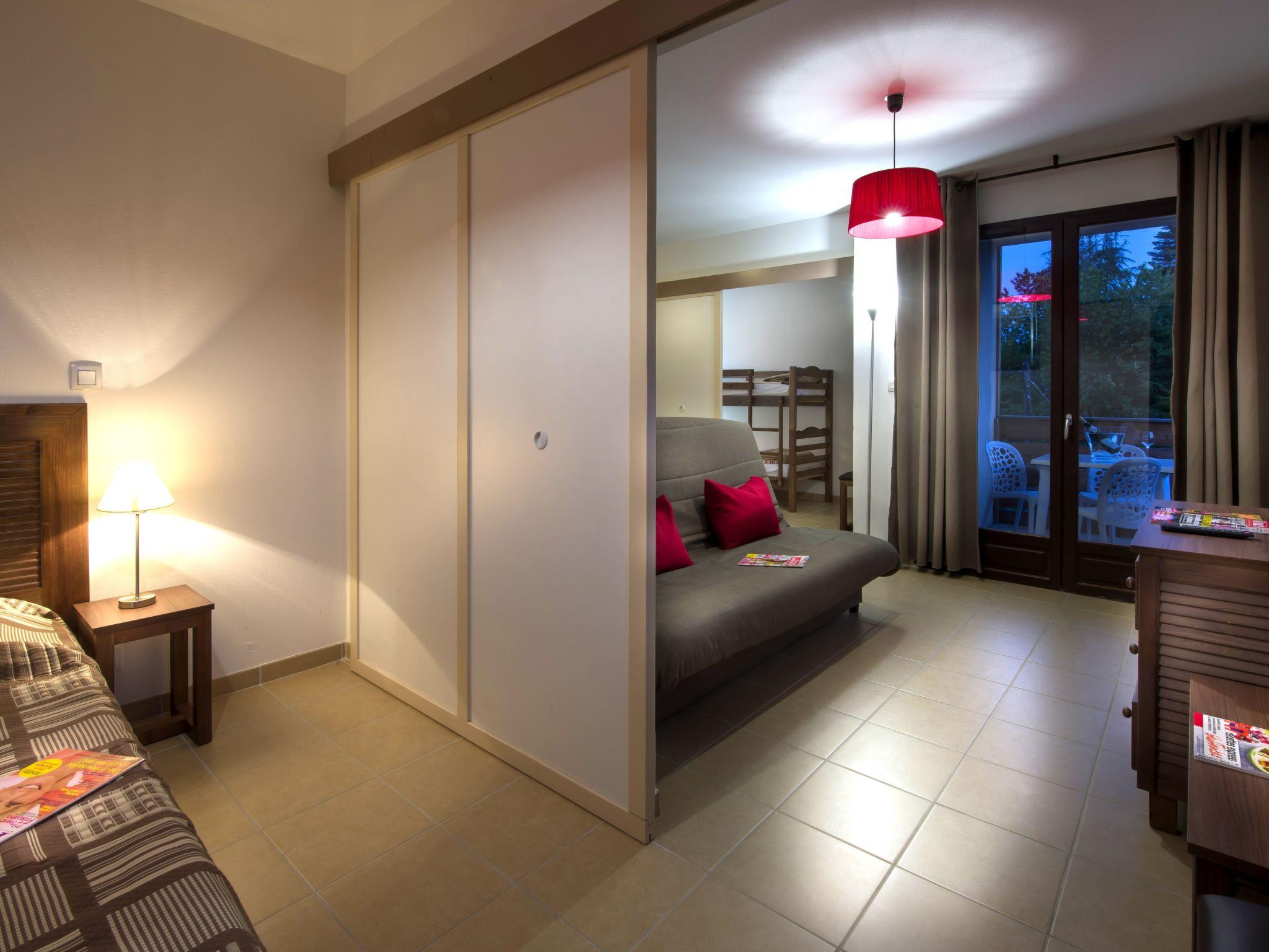 Resort "Les Clos du Rocher", 3 storeys. 8 houses in the resort. 116 apartments in the residence. 300 m from the centre of Les Eyzies de Tayac, 45 km from the centre of Périgueux, 22 km from the centre of Sarlat-la-Canéda. For shared use: property (fenced) with plants and trees, swimming pool heated, fenced (15 x 7 m, depth 80 - 150 cm, seasonal availability: 15.May. - 30.Sep.). Children's pool, outdoor shower, boccia. In the complex: reception, fitness room, washing machine, tumble dryer (for shared use, extra). Bread roll service. Parking (limited number of spaces) on the premises, public parking on the road. Shop, supermarket 300 m. Nearby attractions: Grotte de Lascaux 25 km. Please note: the photograph shows a typical example. The holiday properties may differ in living space, floorplan, equipment and furnishing.