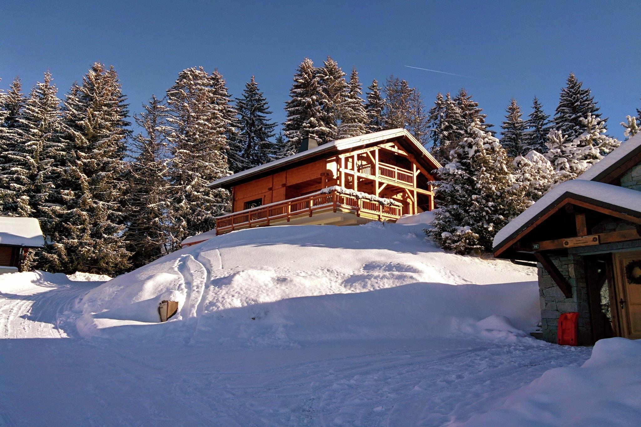 Denne smukke fritstående chalet ligger kun 300 meter fra Teleski du Chateau med direkte forbindelse til Morzine og andre steder i Les Portes de Soleil. Dens beliggenhed er meget solrig og stille med udsigt over dalen. Det er endda muligt at gå på pisten direkte fra hytten og også at gå direkte tilbage til hytten. Centrum af Les Gets med flere butikker ligger ca. 850 meter. Boligen er virkelig udstyret med alle fornødenheder, du har brug for og meget komfortabelt møbleret. Fra stuen kan du komme ind på en balkon og en stor overdækket terrasse (opvarmet veranda) med en smuk udsigt over dalen Les Gets. Også den udendørs jacuzzi kan findes her (mod betaling og reserveres foran). Særlige forhold: Ved siden af garagen har du også tre parkeringspladser. Jacuzzi: EURO 225, - pr. Uge, kun tilgængelig hvis nævnt ved booking