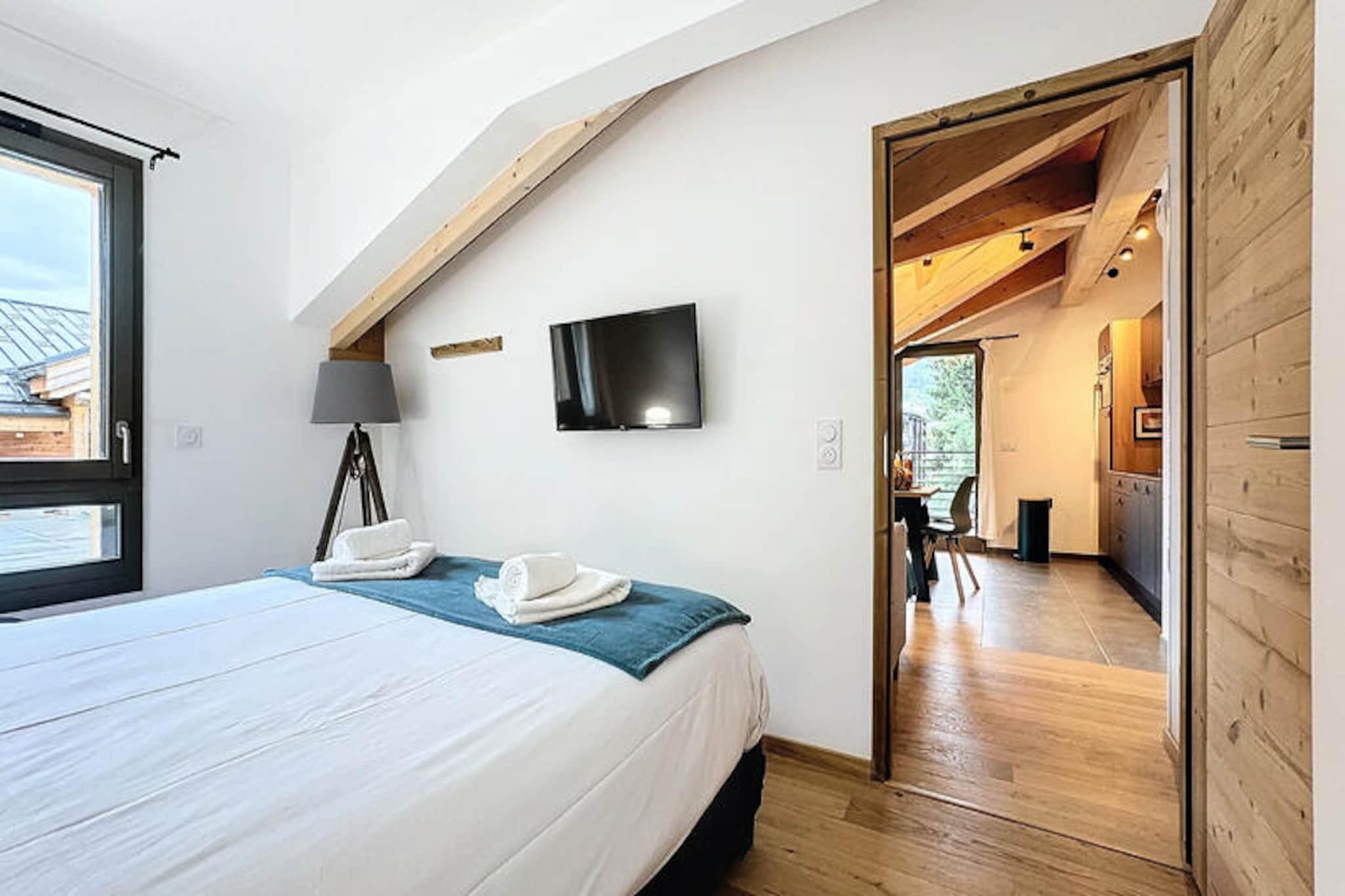 I hjertet af den maleriske landsby Les Gets inviterer denne elegante lejlighed dig til at opleve charmen ved de franske alper med stil. Med sin moderne indretning og gennemtænkte design er dette 64 m² store feriested perfekt til familier, der søger både komfort og bekvemmelighed. Omgivet af Haute-Savoies fantastiske landskaber tilbyder det en rolig tilflugtssted kun få øjeblikke fra det pulserende bycentrum og skiløjperne. Uanset om du besøger om vinteren eller sommeren, lover denne lejlighed en uforglemmelig bjergferie. \n\nLejligheden har komfortabel plads til op til otte gæster fordelt på to soveværelser og en hyggelig opholdsstue. Soveværelset har en luksuriøs 160x200 cm seng med plads til en barneseng, hvis det er nødvendigt, mens det andet soveværelse har en 140x200 cm sovesofa og en mezzanin med to enkeltsenge, ideel til ældre børn. Stuen tilbyder ekstra soveplads med en dobbelt sovesofa af høj kvalitet. Det fuldt udstyrede køkken med raclettegrill, Nespresso-maskine og opvaskemaskine gør det nemt at tilberede solide måltider efter en dag med eventyr. Moderne bekvemmeligheder som fjernsyn i stuen og soveværelserne samt vaskemaskine og tørretumbler sikrer et behageligt ophold for alle.\n\nGå udenfor til din private haveterrasse, et sikkert og fredeligt sted, perfekt til familier med børn. Lejligheden inkluderer også en privat parkeringsplads, skiboks og kælder, der tilbyder rigelig opbevaring til skiudstyr eller op til seks cykler. Beliggende kun 600 meter fra skiløjperne og det livlige torv, har du nem adgang til butikker, restauranter og aktiviteter. For golfentusiaster ligger Les Gets Golfbane kun 4 km væk, hvilket tilføjer endnu et lag af nydelse til dit ophold.\n\nUanset om du kører ned ad sneklædte pister, vandrer gennem alpine stier eller blot slapper af i den friske bjergluft, er denne lejlighed din port til det bedste af Les Gets. Oplev magien i Haute-Savoie og skab varige minder i dette idylliske alpine tilflugtssted.