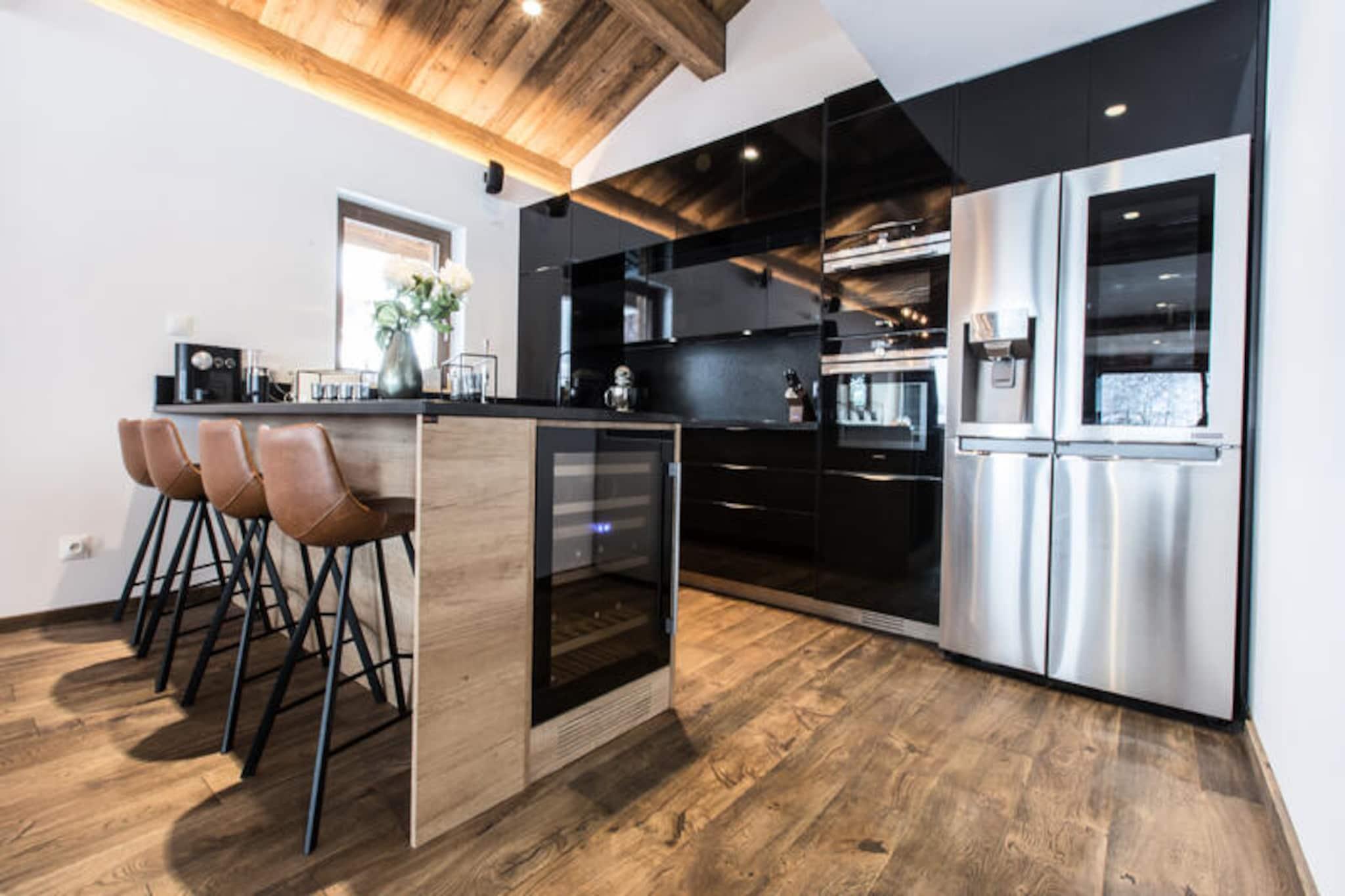 Denne luksushytte tilbyder en enestående plads på 500 m² fordelt på fire niveauer, og tilbyder indkvartering for op til 14 gæster. Hytten har 7 rummelige soveværelser, hver med eget badeværelse, tv og påklædningsværelse. Mastersuiten på 40 m² omfatter en kingsize-seng, et tilstødende badeværelse med italiensk bruser og fototerapibadekar samt et fjernsyn. Første sal byder på et stort opholdsområde, herunder et fuldt udstyret køkken, spisestue og en hyggelig stue med pejs. En panoramisk balkon giver en fantastisk udsigt over Perrières-skiløjperne. Hytten er bekvemt placeret, kun 80 meter fra skiløjperne og inden for gåafstand fra kælkebakken, der har fire sæsoner. Boligen omfatter et afslapningsområde med hammam og sauna, et spillelokale med billard og dart, et biografrum med streamingtjenester og en PlayStation 4 samt et fitnessrum. Gæsterne kan nyde det udendørs rum med en 12-personers jacuzzi, loungeområde, gasgrill og liggestole på den store terrasse, perfekt til at slappe af med familie og venner. Hytten har også en garage med plads til op til 5 køretøjer, udstyret til opladning af elbiler, og et skirum til praktisk opbevaring. Med en række faciliteter designet til komfort og luksus tilbyder denne hytte en uforglemmelig bjergoplevelse.