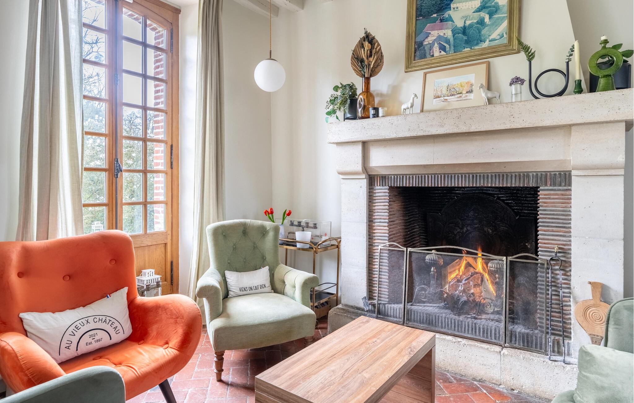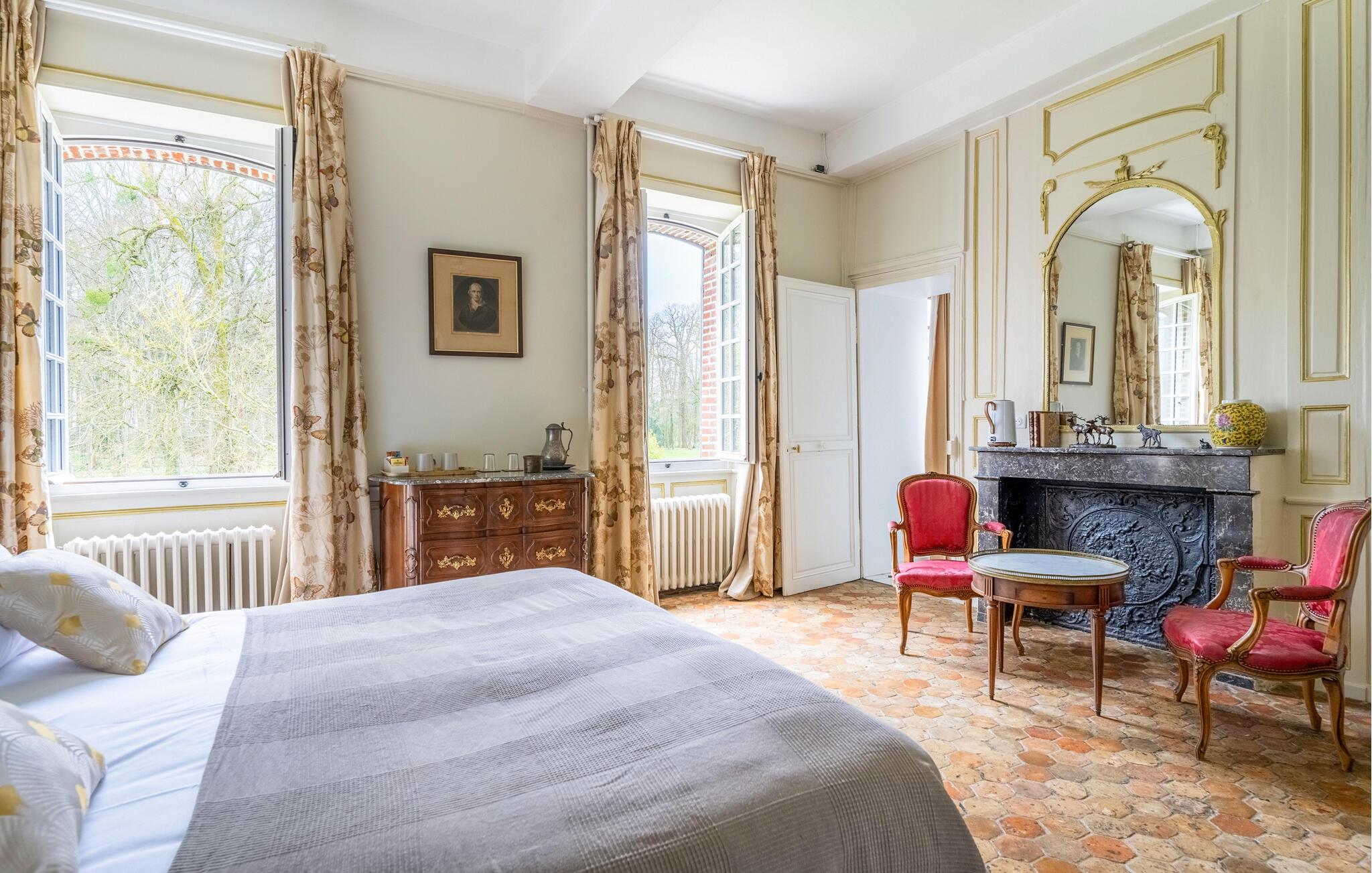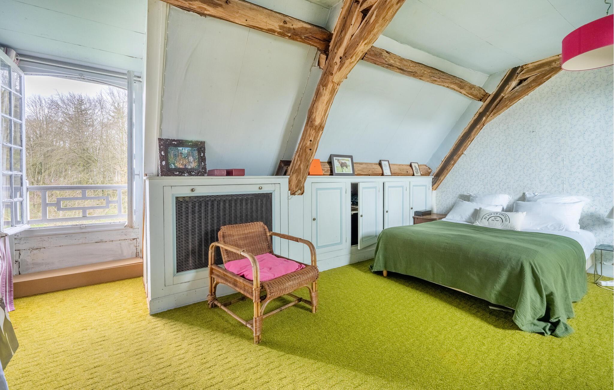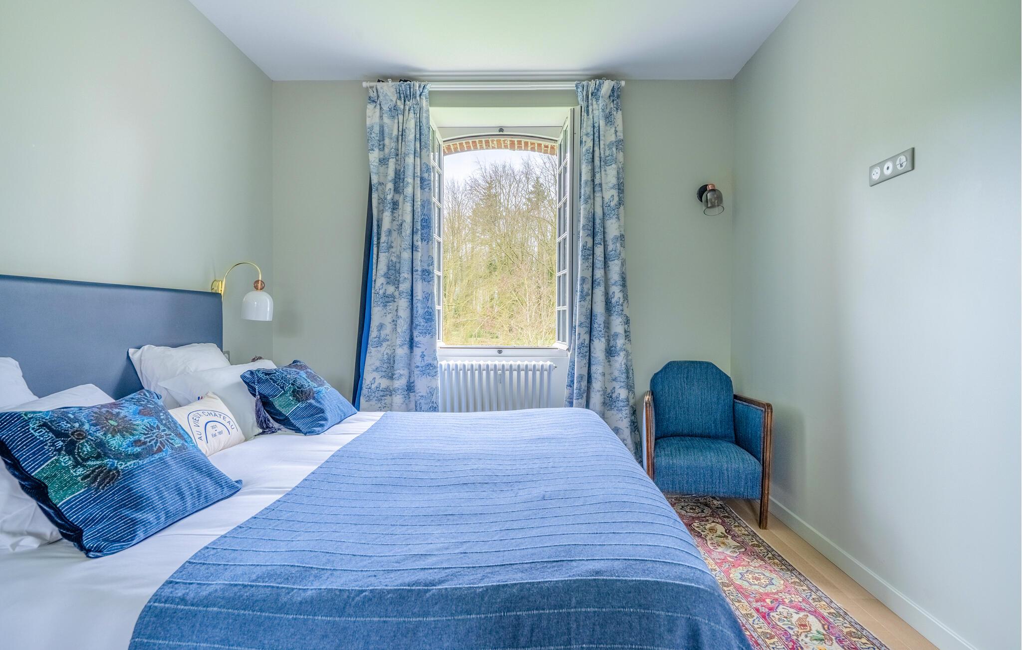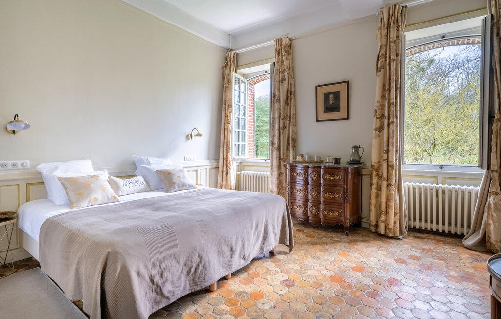 En god times kørsel nord for Paris finder I dette overdådige slotslignende hus, der danner rammen om en magisk ferie med den udvidede familie eller en større venneflok. Huset ligger i mageløse omgivelser, og indvendigt emmer det af autenticitet, charme og komfort over tre etager. Behagelige farveskalaer og et vellykket samspil mellem det rustikke og det moderne giver jer alt, I behøver, for at kunne slappe af og sætte masser af tid af til hinanden. Gør madlavningen til et ambitiøst fællesprojekt i det rummelige køkken og dæk op ved spisebordet, hvor der er plads til hele flokken. Tænd op i pejsen på de køligere dage og rund aftenerne af med brætspil, kortspil eller en hyggelig filmaften i de gode sofaer, inden I går til køjs i de komfortable soveværelser.