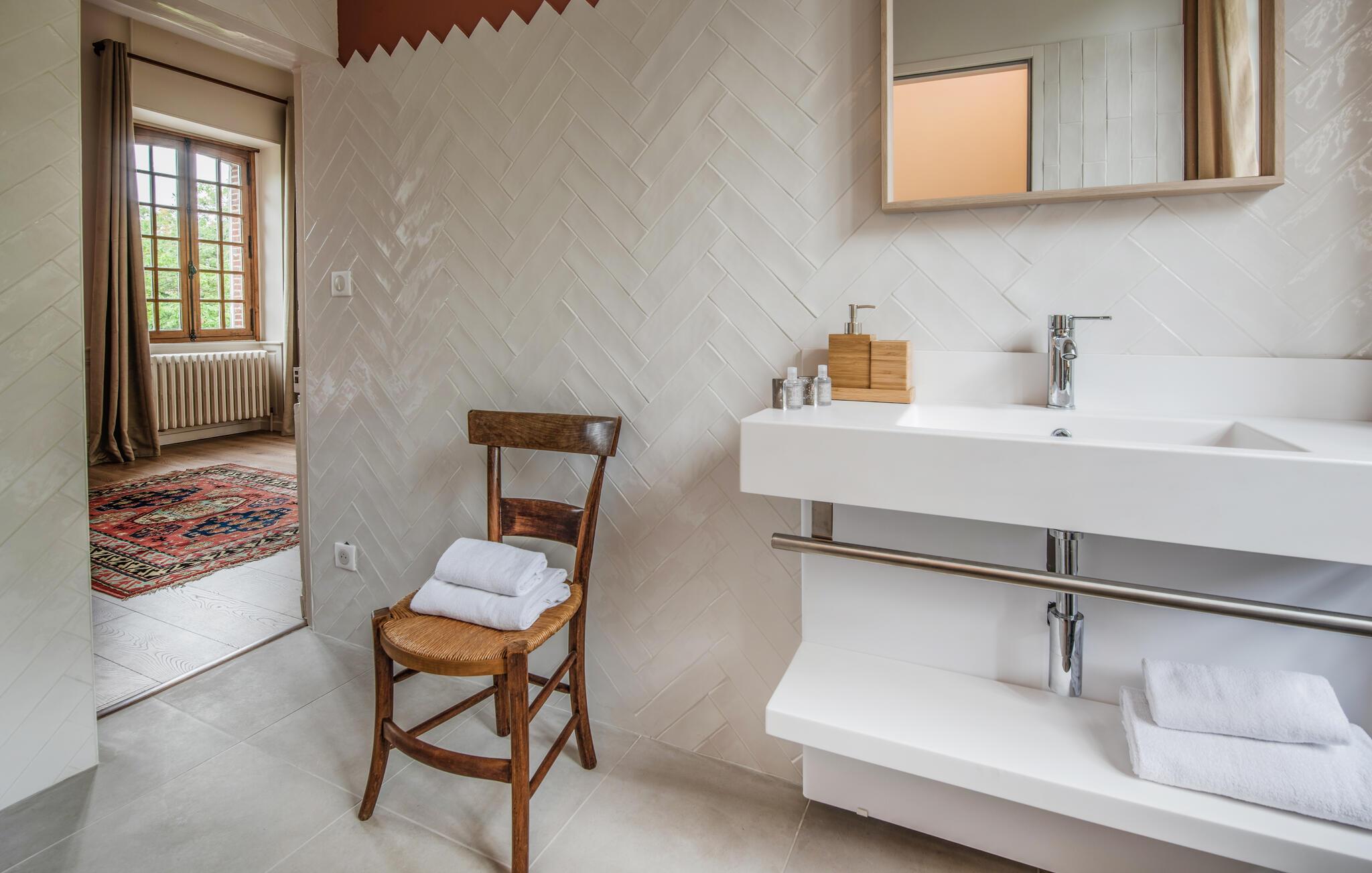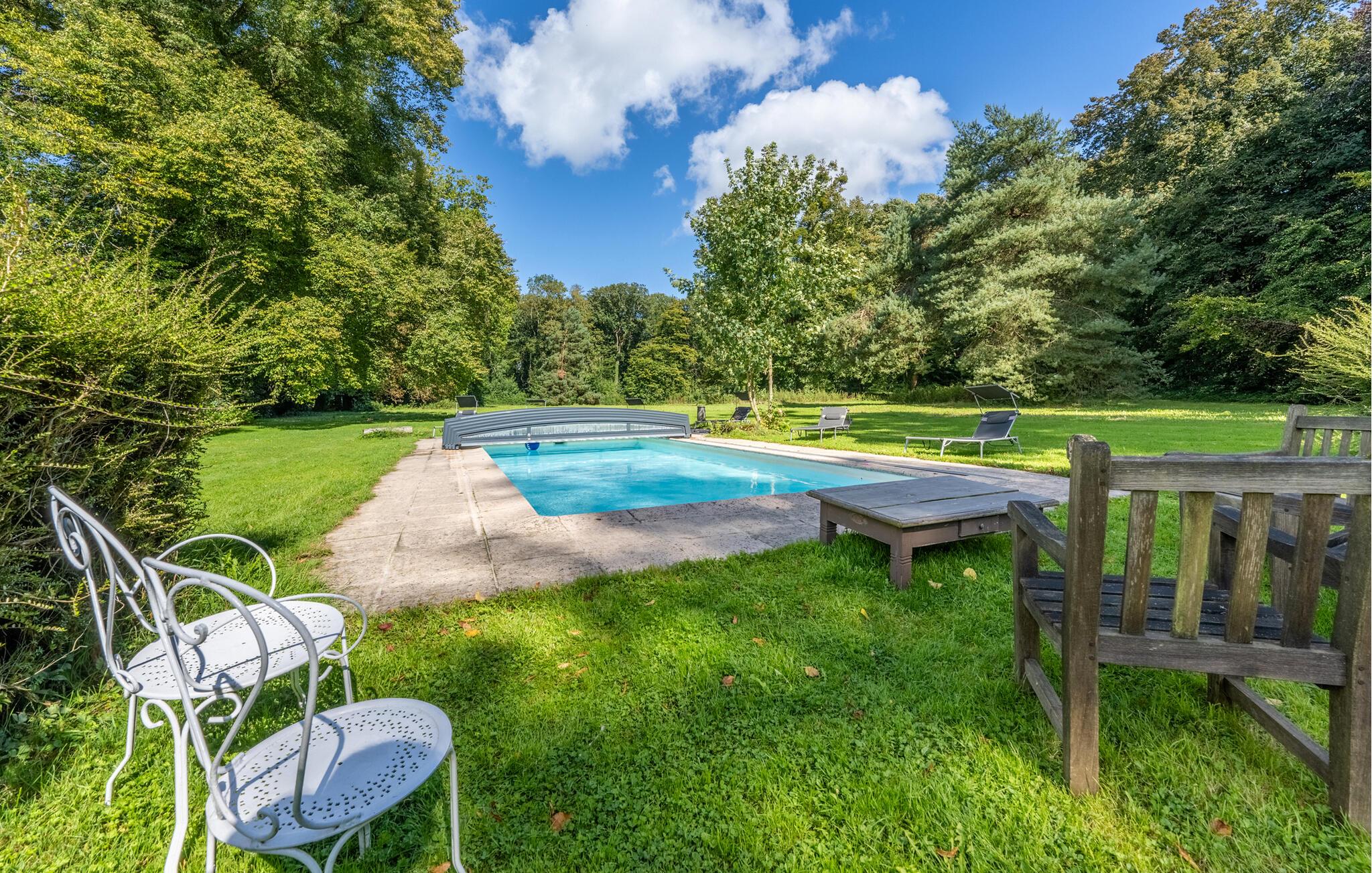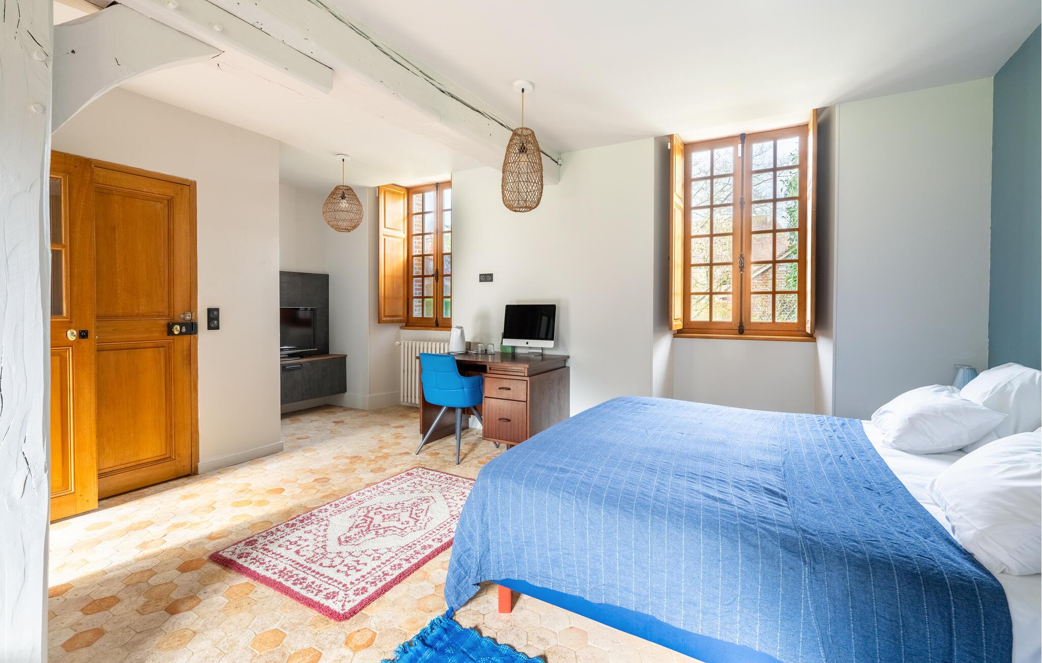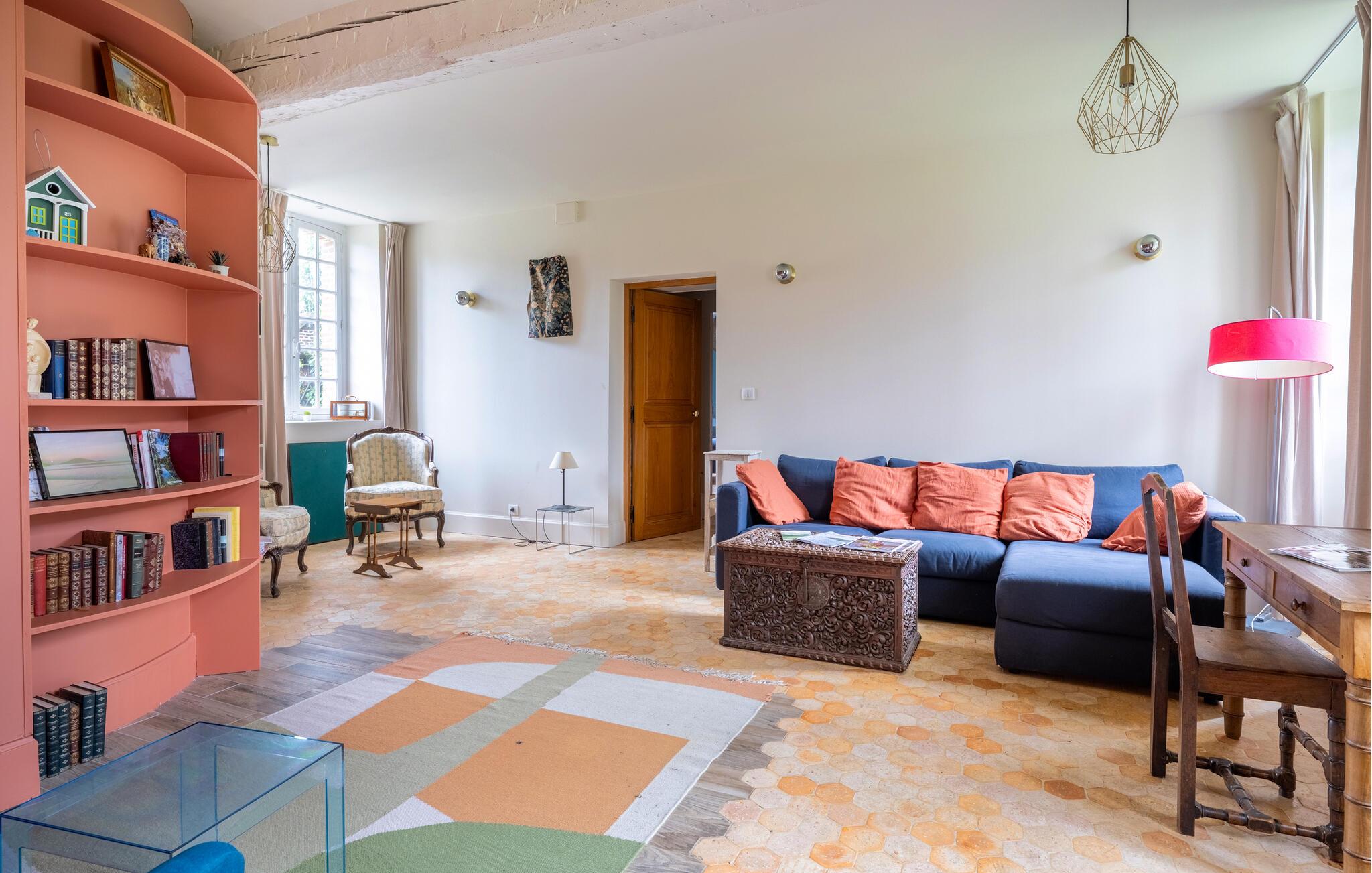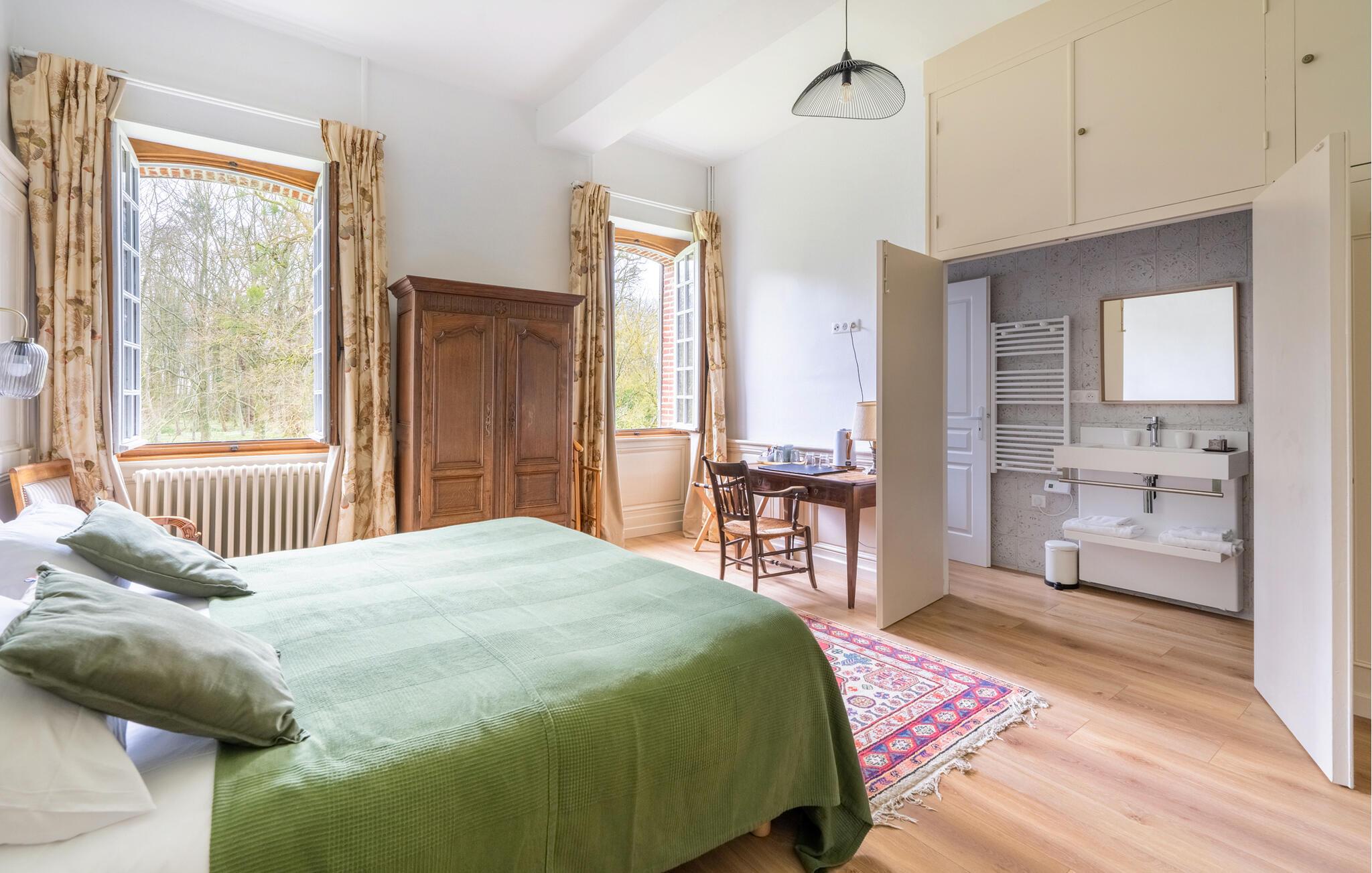 En god times kørsel nord for Paris finder I dette overdådige slotslignende hus, der danner rammen om en magisk ferie med den udvidede familie eller en større venneflok. Huset ligger i mageløse omgivelser, og indvendigt emmer det af autenticitet, charme og komfort over tre etager. Behagelige farveskalaer og et vellykket samspil mellem det rustikke og det moderne giver jer alt, I behøver, for at kunne slappe af og sætte masser af tid af til hinanden. Gør madlavningen til et ambitiøst fællesprojekt i det rummelige køkken og dæk op ved spisebordet, hvor der er plads til hele flokken. Tænd op i pejsen på de køligere dage og rund aftenerne af med brætspil, kortspil eller en hyggelig filmaften i de gode sofaer, inden I går til køjs i de komfortable soveværelser.