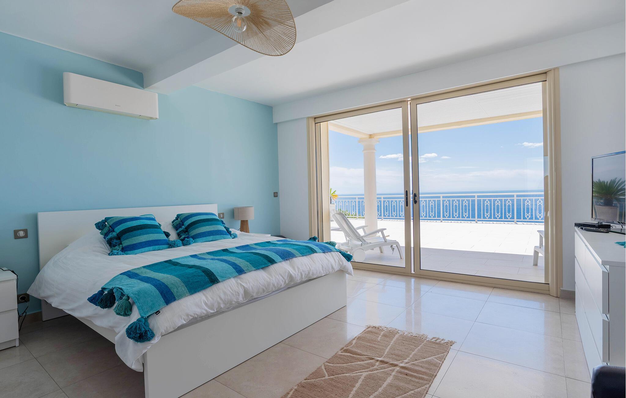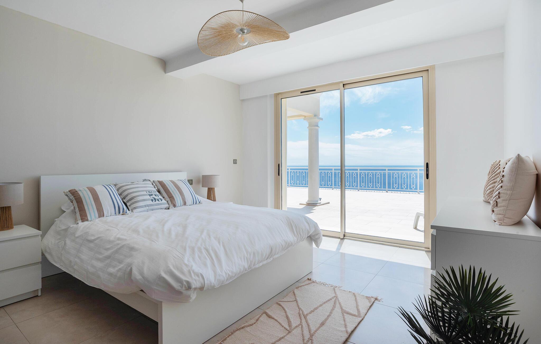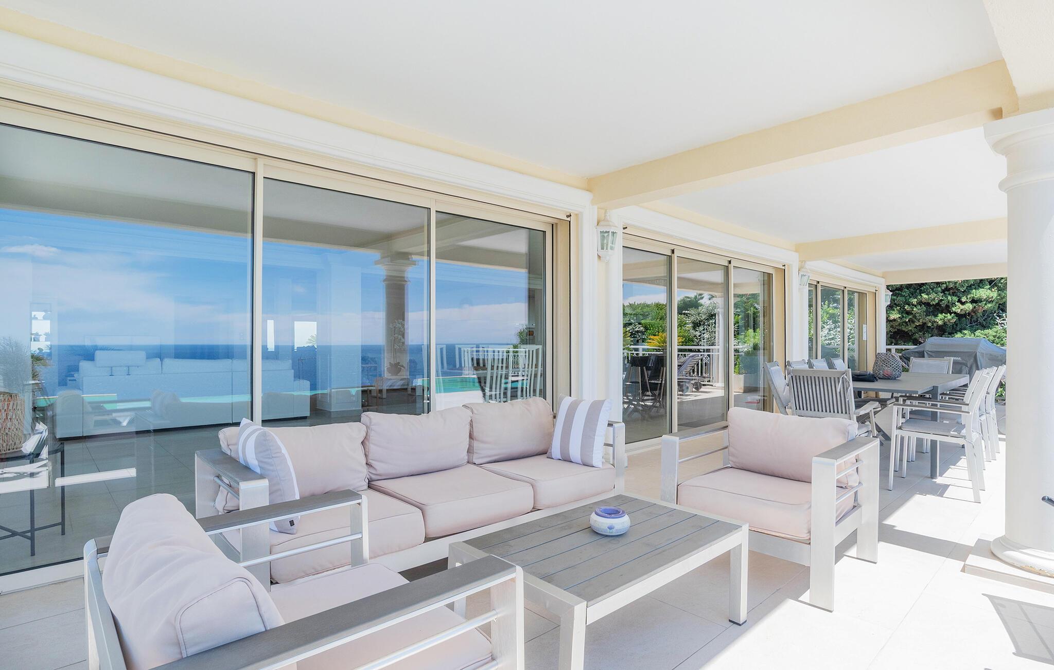 Gå ud på den store terrasse med overdækket opholds- og spiseplads. Nyd morgenmaden med udsigt over havet, eller afslut dagen på en liggestol ved infinity-poolen. Brug grillen til hyggelige aftener udendørs. Ejendommens sydvendte beliggenhed sikrer mange solskinstimer og en uforlignelig udsigt.