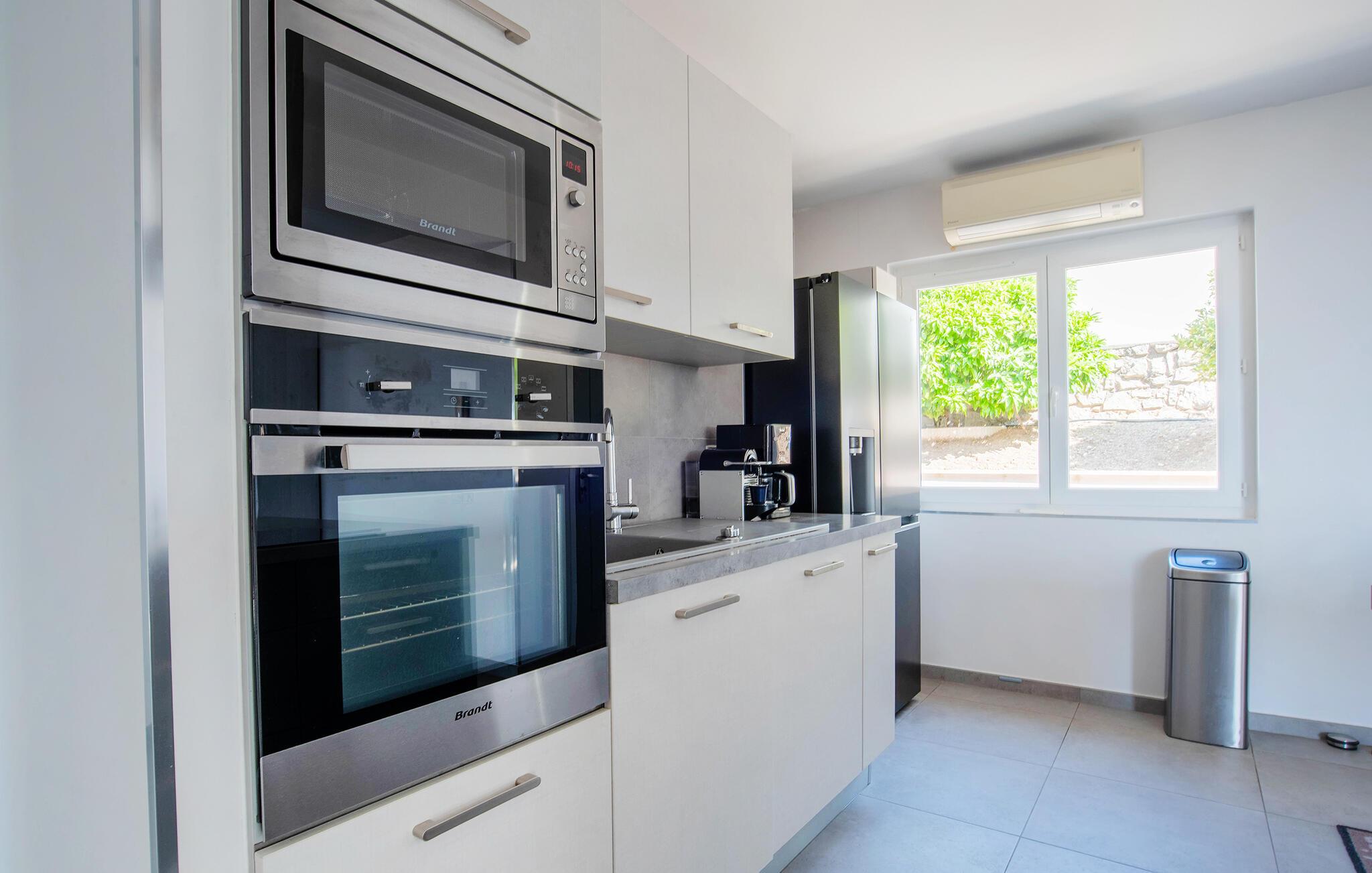 Denne rummelige villa i Les Issambres ligger ikke langt fra strandene ved Côte d'Azur og har et lyst og smagfuldt interiør. Forkæl jer selv med kulinariske lækkerier i det moderne køkken, nyd hyggelige måltider og slap af på sofaen efter en begivenhedsrig dag.