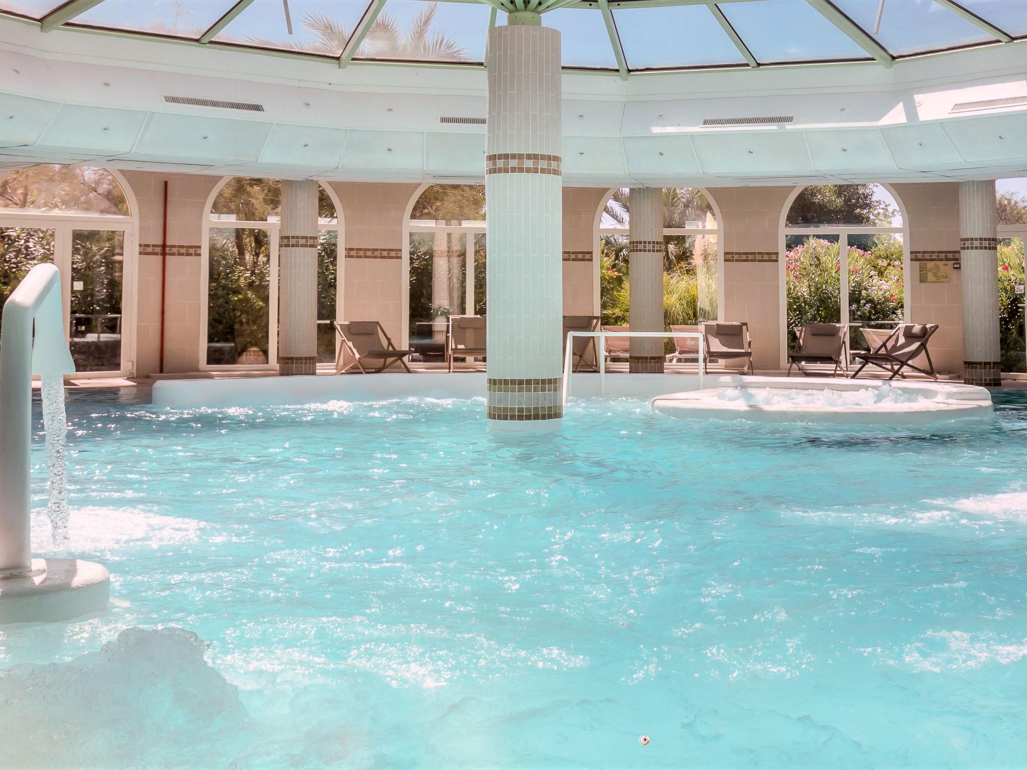 Large residence "Les Calanques Spa Thalassothérapie". In the centre of Les Issambres, in a sunny position, 50 m from the sea, 50 m from the beach. For shared use: well-kept garden plants and flowers, swimming pool fenced (depth 50 - 150 cm, seasonal availability: 01.Jun. - 30.Sep.) with salt water. Children's playground. In the complex: restaurant, bar, massage (extra). Hot tub (extra). Relaxation room, spa area (extra) hamam table tennis, lift, washing machine (extra). Parking (limited number of spaces). Shop 200 m, supermarket 300 m, shopping centre 8 km, restaurant, bakery 200 m, bus stop 100 m, railway station "Saint-Raphael TGV" 16 km, sandy beach "de San Peïre" 200 m, thermal baths "Thalasso Les Issambres" 10 m. Sports harbour 200 m, golf course (18 hole) 7 km, tennis 2 km. Nearby attractions: Navette/Shuttle Boat St Tropez 20min 100 m, Aqualand waterpark 8 km, Sainte-Maxime 6 km, Saint-Tropez/Ramatuelle 21 km, Port-Grimaud 18 km, Gorges du Verdon 95 km. Hiking paths: Massif des Maures 15 km, Massif de l'Esterel 30 km. Please note: the keys‘ handover takes place by the agency Interhome in Sainte-Maxime. Airfield 70 km from the property. Thalassotherapy centre 400 m. Shorts allowed in the pool, compulsory swimwear.