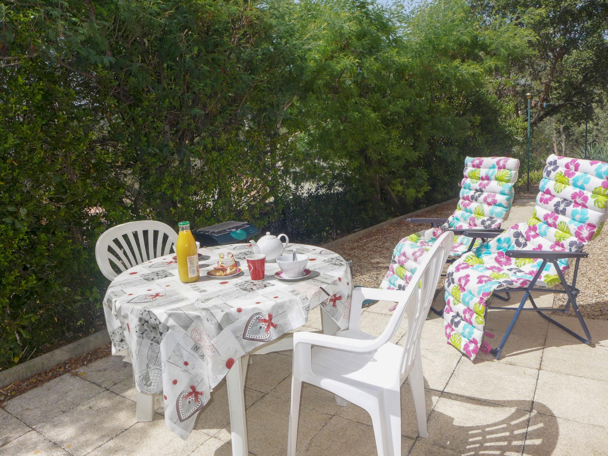 1-room apartment 35 m2, on the ground floor, south facing position. Beautiful furnishings: living/dining room with TV. Exit to the terrace. 1 open room with curtain, without window with 1 french bed (1 x 140 cm, length 190 cm), fan. Open kitchen (2 gas rings, toaster, freezer, electric coffee machine, combination microwave). Shower, sep. WC. Electric heating. Terrace 16 m2, patio. Terrace furniture. Facilities: iron, hair dryer. Internet (WiFi, extra). Parking. Please note: maximum 1 pet/ dog allowed. TV only FR. Smoke alarm. The owner occupies the 1st floor of the house. 83107000281MZ