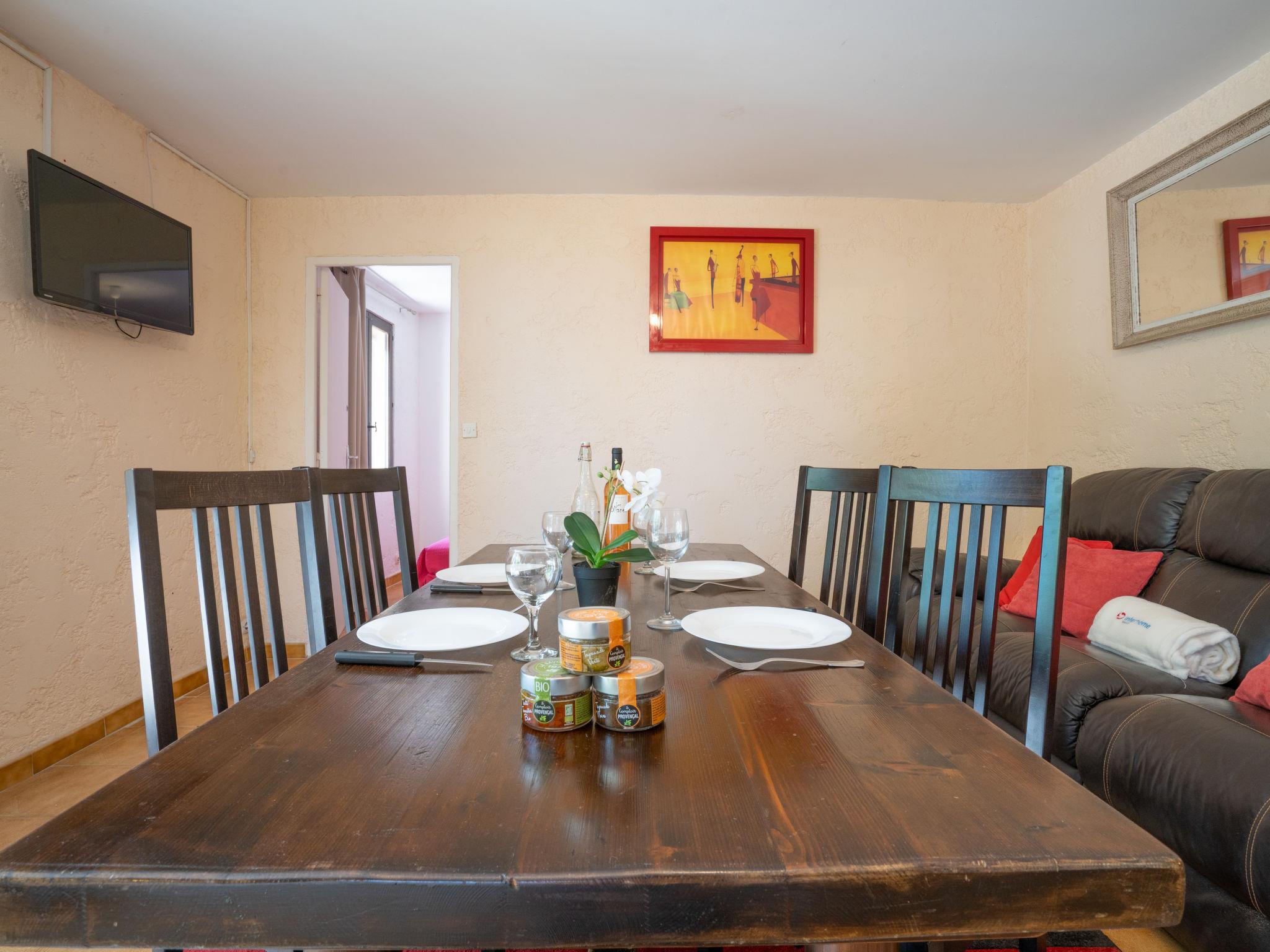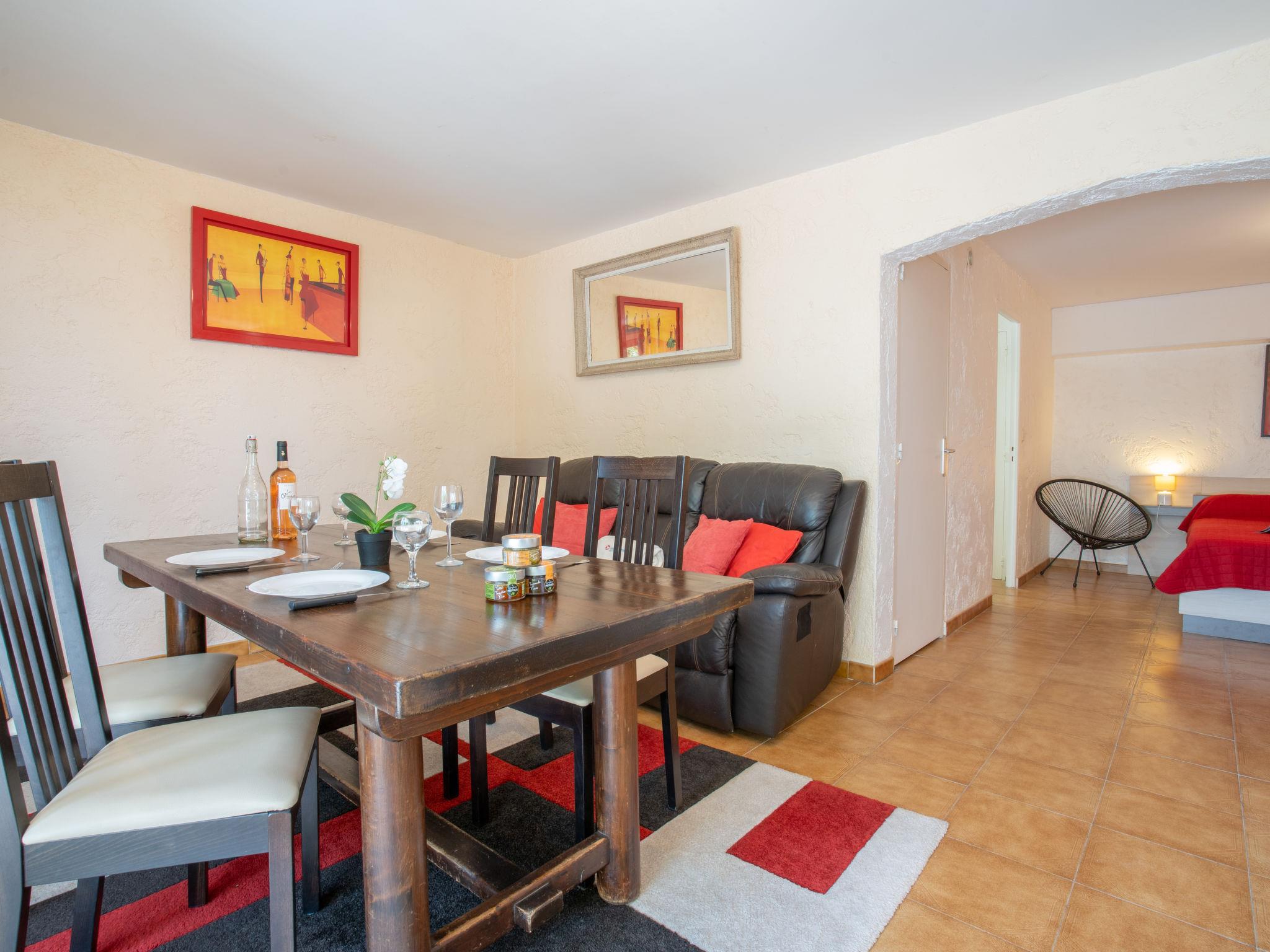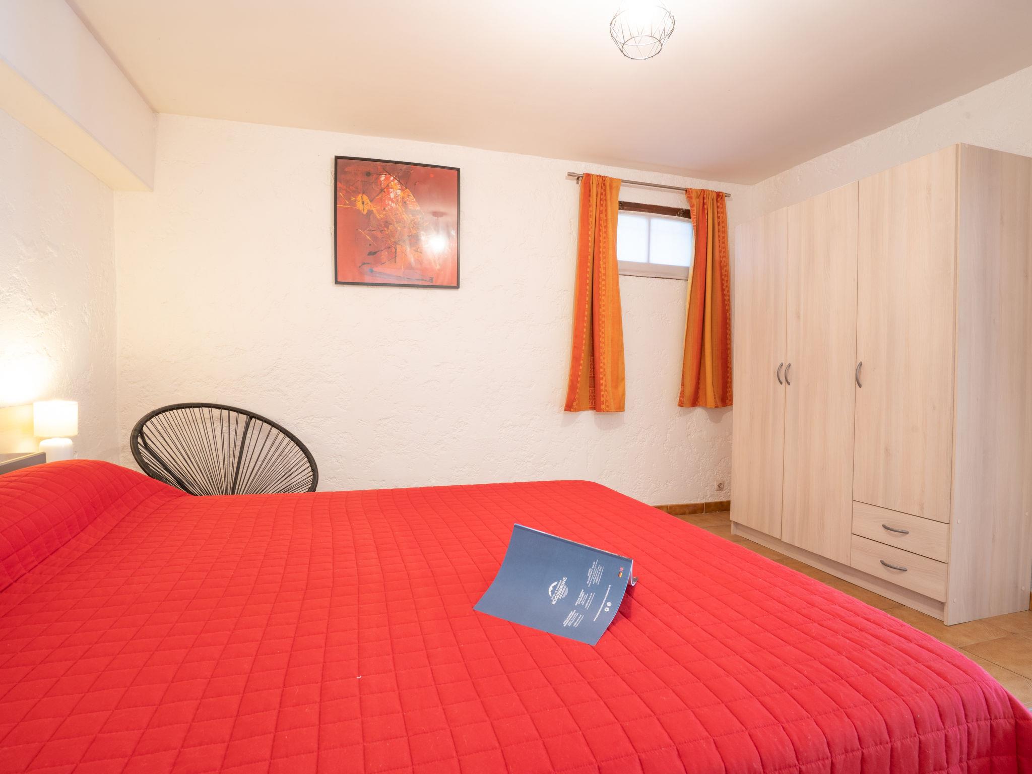2-room apartment 70 m2, south facing position. Beautiful furnishings: living/dining room with TV. Exit to the terrace. 1 room with 2 beds (90 cm, length 190 cm), shower/WC and fan. 1 open room with curtain with 1 french bed (1 x 160 cm, length 200 cm), shower/WC and fan. Open kitchen (mini-oven, dishwasher, 2 gas rings, toaster, microwave, freezer, electric coffee machine). Heating. Terrace 25 m2, patio. Terrace furniture, deck chairs (1). Distant view of the sea. Facilities: washing machine, iron, hair dryer. Internet (WiFi, extra). Parking. Please note: TV only FR. Smoke alarm. The owner occupies the 1st floor of the house. 83107000282KX