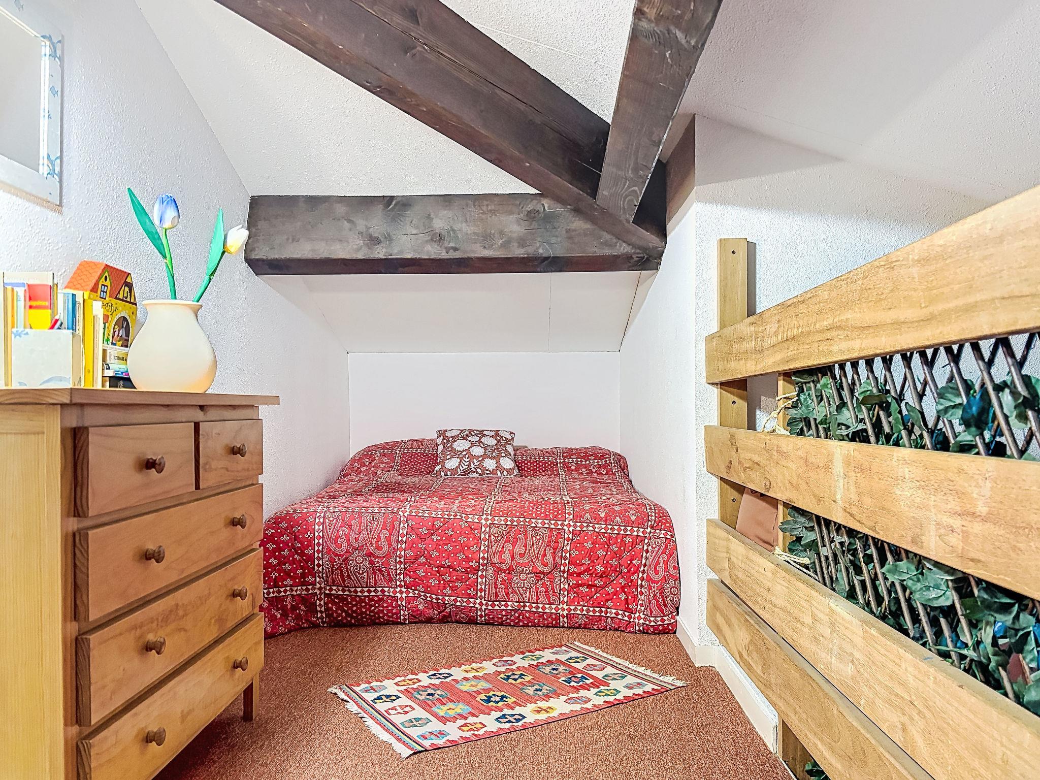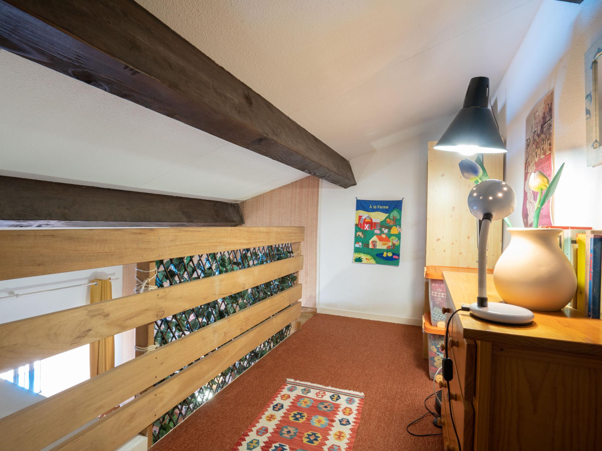 2-room apartment 27 m2 on 2nd floor, east facing position. Simple furnishings: living/dining room with panoramic window with kitchen corner and TV (flat screen), fan. Exit to the balcony. 1 room with 1 french bed (140 cm, length 190 cm), fan. Small kitchenette (4 hot plates, mini-oven, toaster, kettle, microwave, freezer, electric coffee machine). Exit to the balcony. Shower, sep. WC. Heating. Upper floor: gallery with sloping ceilings with 1 double sofabed (1 x 125 cm, length 190 cm), 2 sleeping facilities (2 x 80 cm, length 190 cm). Balcony 5 m2. Balcony furniture. Beautiful view of the valley and the swimming pool. Facilities: iron, hair dryer. Internet (WiFi, extra). Parking space n 140 (1 car). Please note: maximum 1 pet/ dog allowed. TV only FR. Smoke alarm, no lift. Instead of an enclosed bedroom, some sleeping areas are located in an open-plan area (gallery, alcove, etc.). Offer by a private individual according to Art. 155, IV of CGI. 83107 001124 8I