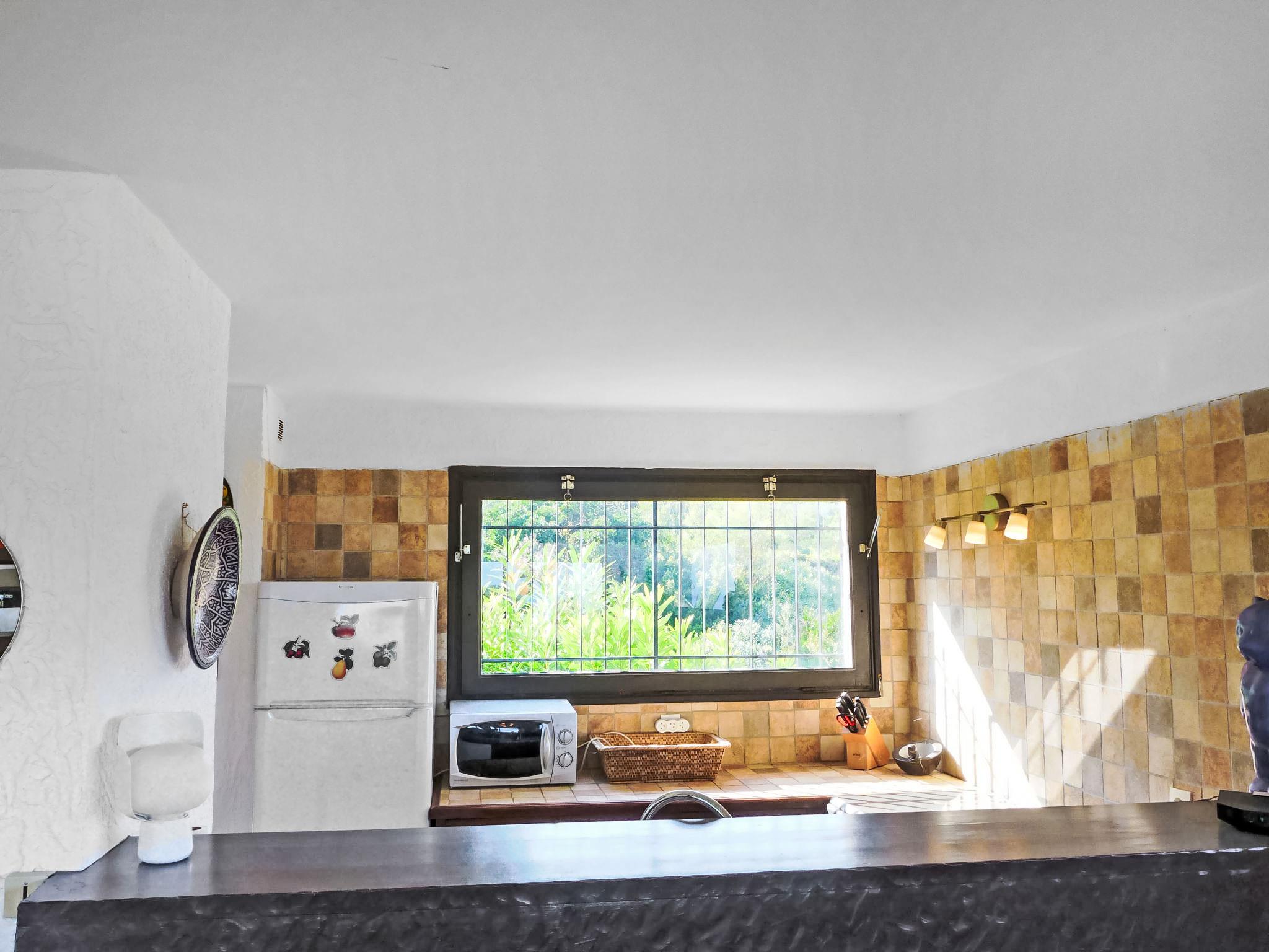 4-room villa 140 m2 on 2 levels. Beautiful furnishings: living/dining room with TV (flat screen), air conditioning. Exit to the terrace. 1 room with 1 french bed (160 cm, length 200 cm), bathroom, double hand-basin, with corner bath, air conditioning and fan. Exit to the terrace. 1 room with 1 french bed (160 cm, length 200 cm), shower, air conditioning and fan. Exit to the terrace. Open kitchen (oven, dishwasher, 4 ceramic glass hob hotplates, toaster, kettle, microwave, freezer, electric coffee machine, Capsules for coffee machine (nespresso) extra). Sep. WC. On the lower ground floor: 1 large room with 1 french bed (1 x 140 cm, length 190 cm), air conditioning and fan. Exit to the swimming pool. Shower/WC. Electric heating. Terrace. Terrace furniture, deck chairs (4). Beautiful view of the sea and the garden. Facilities: washing machine, iron, hair dryer. Internet (WiFi, free). Parking. Please note: not suitable for small children. TV only FR. Smoke alarm. 83107 000288 A7
