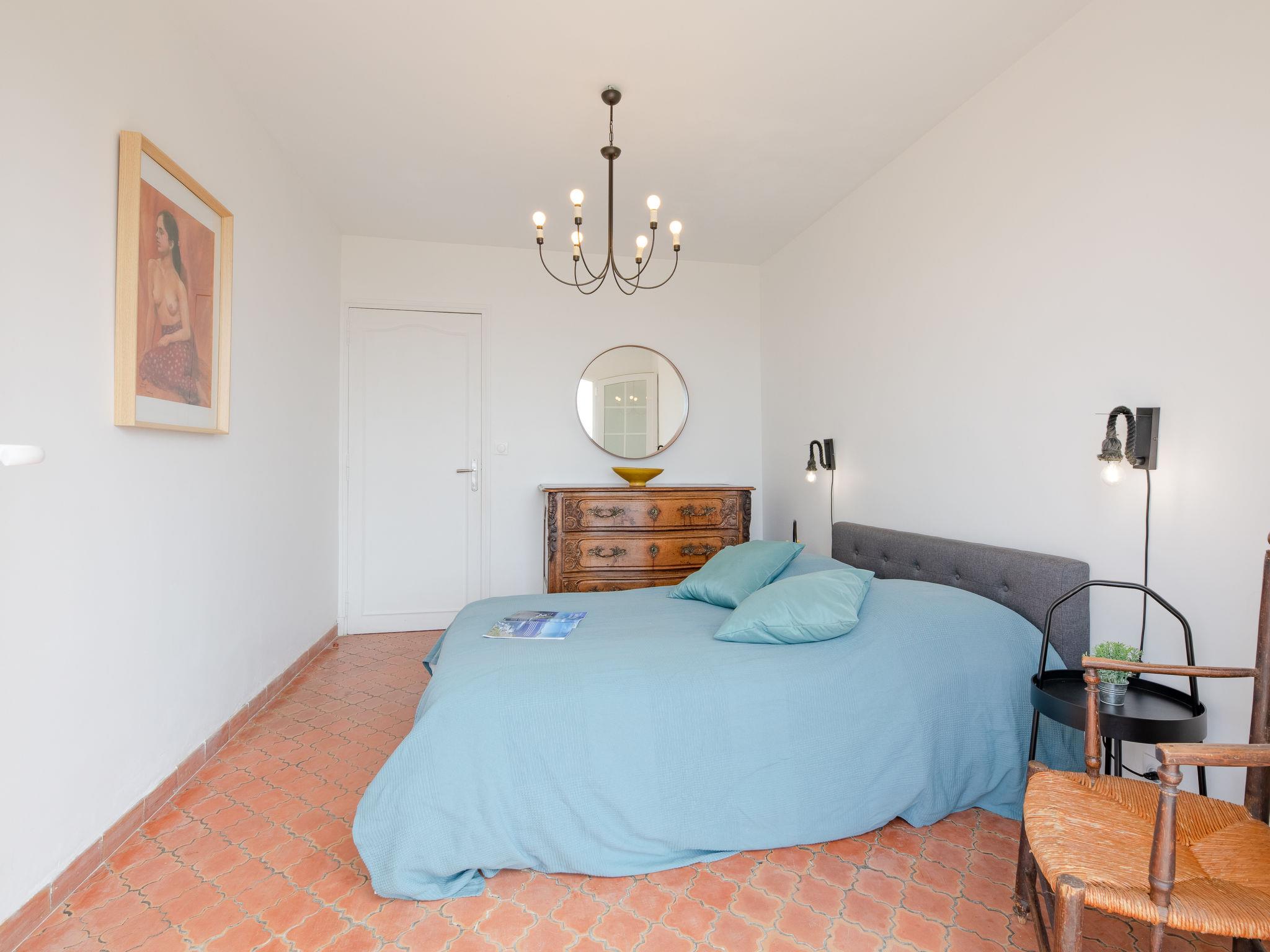 4-room villa 110 m2 on 2 levels, south facing position. Spacious, cosy furnishings: living/dining room with TV (flat screen), hi-fi system, DVD and fan. Exit to the terrace. 1 room with Dressing room with 1 french bed (1 x 160 cm, length 190 cm), fan. Exit to the balcony. 1 room with Dressing room with 1 french bed (1 x 140 cm, length 190 cm), fan. Exit to the balcony. Large kitchen (oven, dishwasher, 4 induction hot plates, microwave, freezer, electric coffee machine, Capsules for coffee machine (Nespresso) extra). Exit to the terrace. Bathroom, 2 sep. WC's. Oil heating. Upper floor: (steep stair), 1 room with 1 french bed (1 x 160 cm, length 190 cm), shower/WC and fan. Exit to the balcony. 2 balconies 20 m2, south facing position, large terrace, north facing position, large terrace 50 m2 partly roofed, south facing position. Terrace furniture, barbecue, deck chairs (6). Marvellous view of the sea. Facilities: washing machine, safe, iron. Internet (WiFi, free). Parking. Please note: non-smoking house. TV only FR, EN. Smoke alarm. Offer by a private individual according to Art. 155, IV of CGI. 83107002714FX