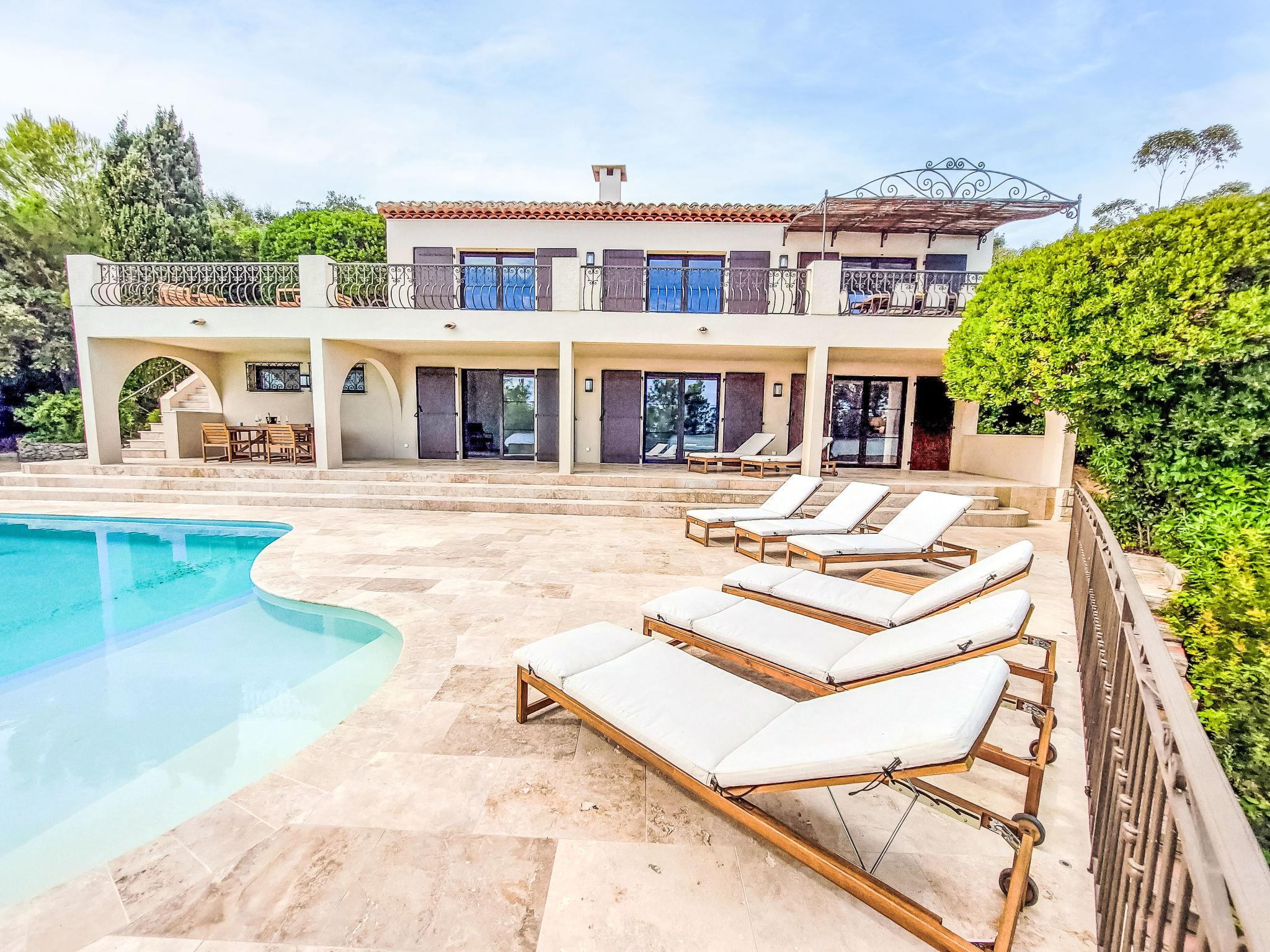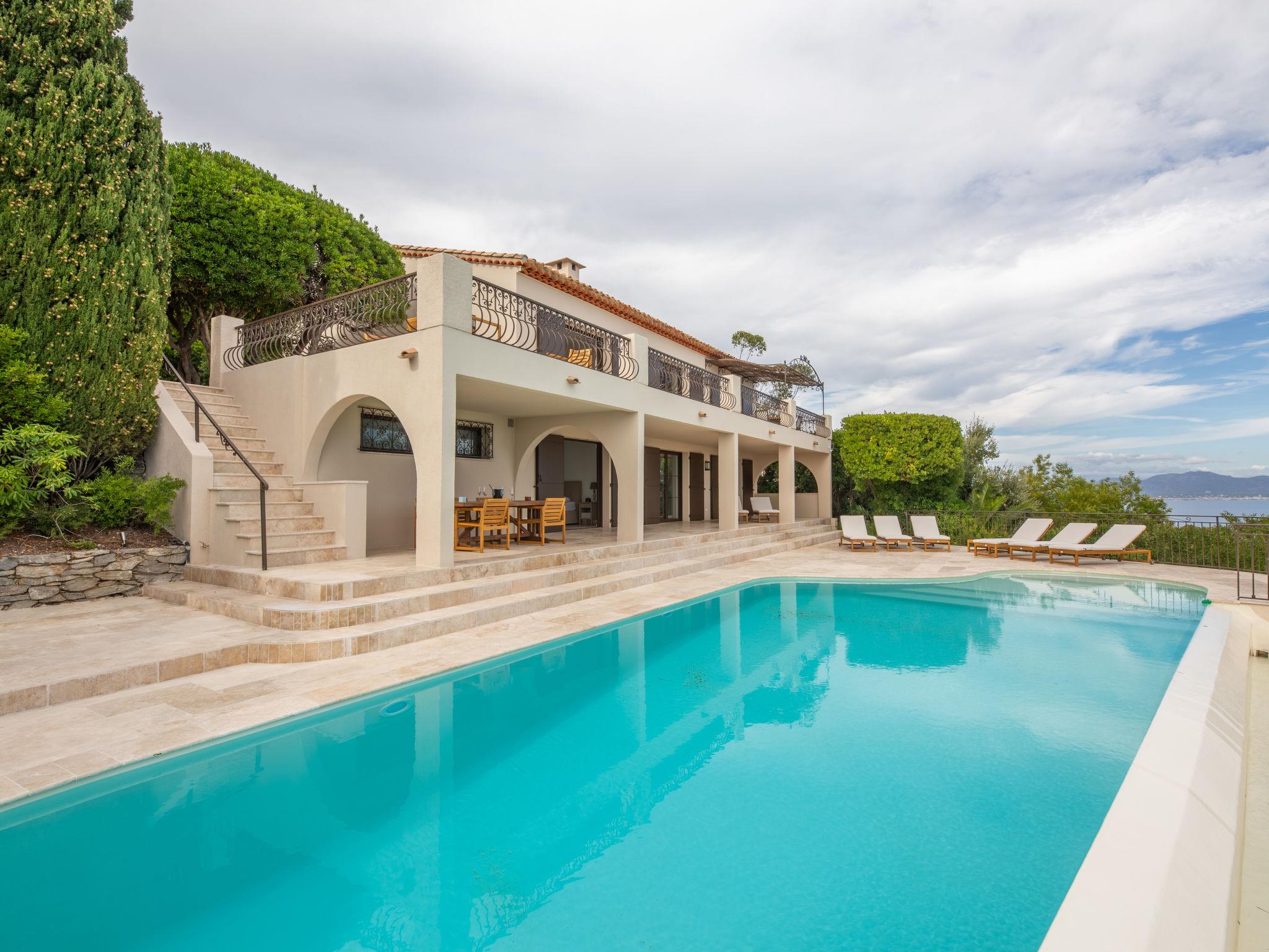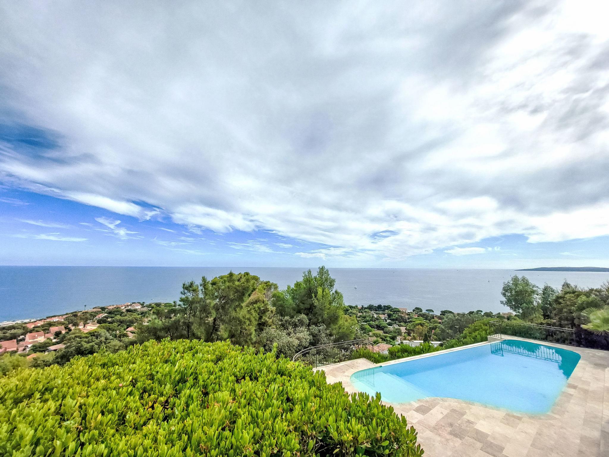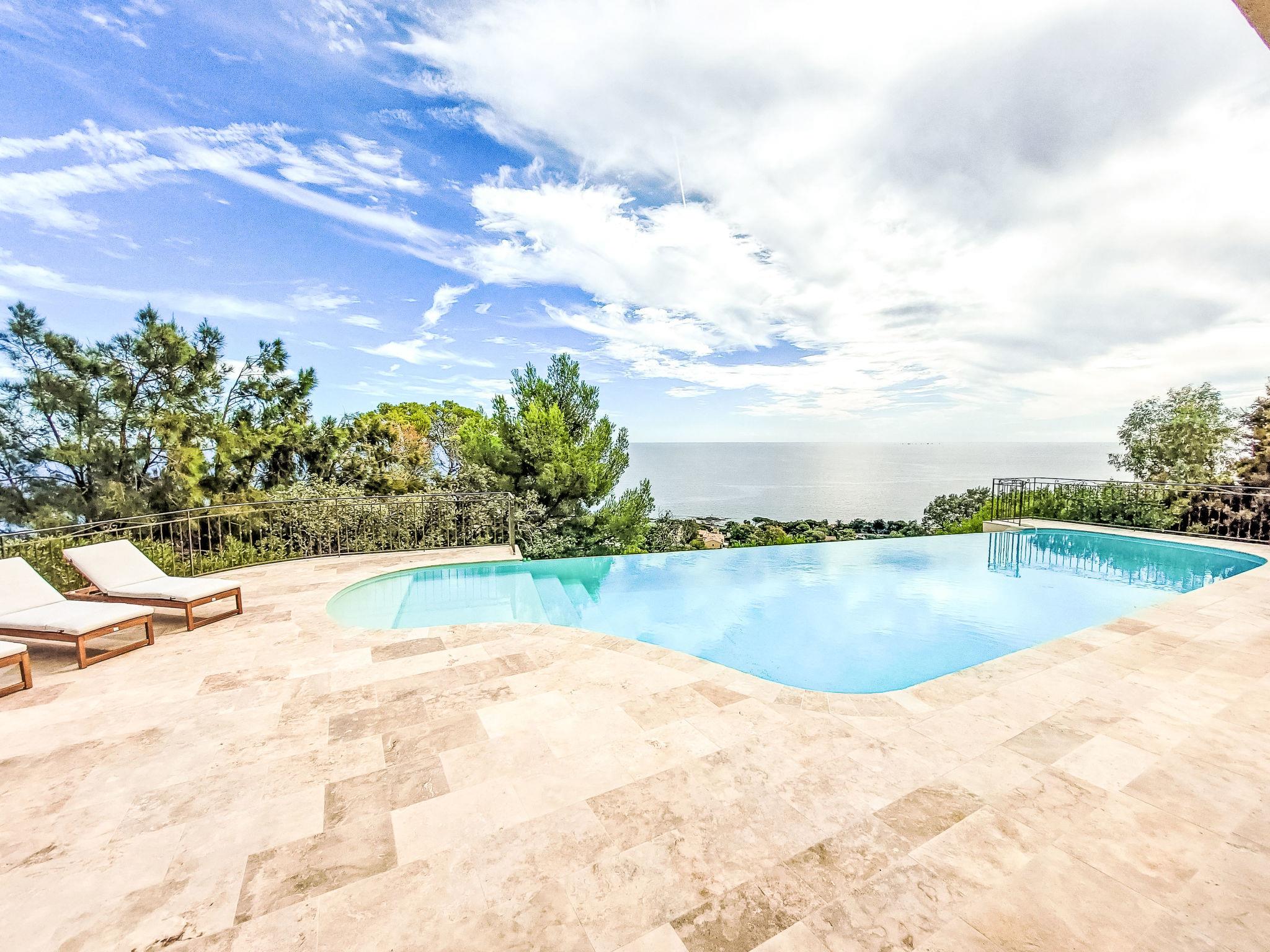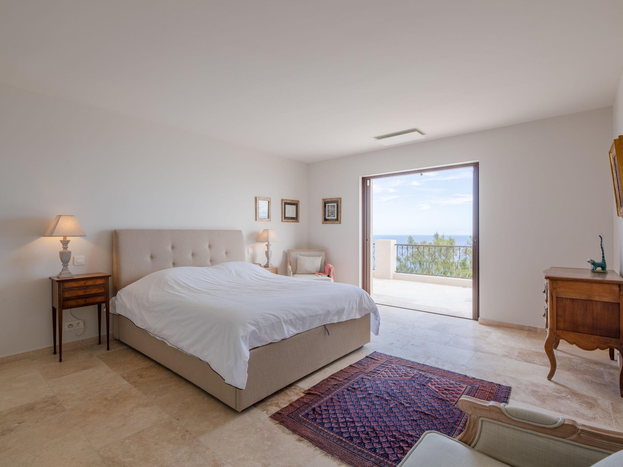 5-room villa 220 m2 on 2 levels. Modern furnishings: large living/dining room with panoramic window with TV (flat screen). Exit to the terrace. 1 large room with 1 french bed (160 cm, length 200 cm), bath/shower/WC and double hand-basin. Exit to the terrace. Large, open kitchen (oven, dishwasher, 4 induction hot plates, toaster, kettle, microwave, freezer, electric coffee machine, Capsules for coffee machine (Nespresso) extra) with bar. Sep. WC. Electric heating. On the lower ground floor: 1 large room with 1 french bed (160 cm, length 200 cm). Exit to the terrace, to the swimming pool. 1 large room with 1 french bed (1 x 160 cm, length 200 cm), hand-basin. Exit to the terrace, to the swimming pool. 1 large room with 1 french bed (1 x 160 cm, length 200 cm), bath/shower. Exit to the terrace, to the swimming pool. Shower/WC. Electric heating. Large terrace 300 m2, south facing position. Terrace furniture, balcony furniture, deck chairs (8). Panoramic view of the sea. Facilities: washing machine, iron, hair dryer. Internet (WiFi, free). Parking (1 car). Please note: non-smoking house. Smoke alarm. Offer by a private individual according to Art. 155, IV of CGI. 83107002726FM