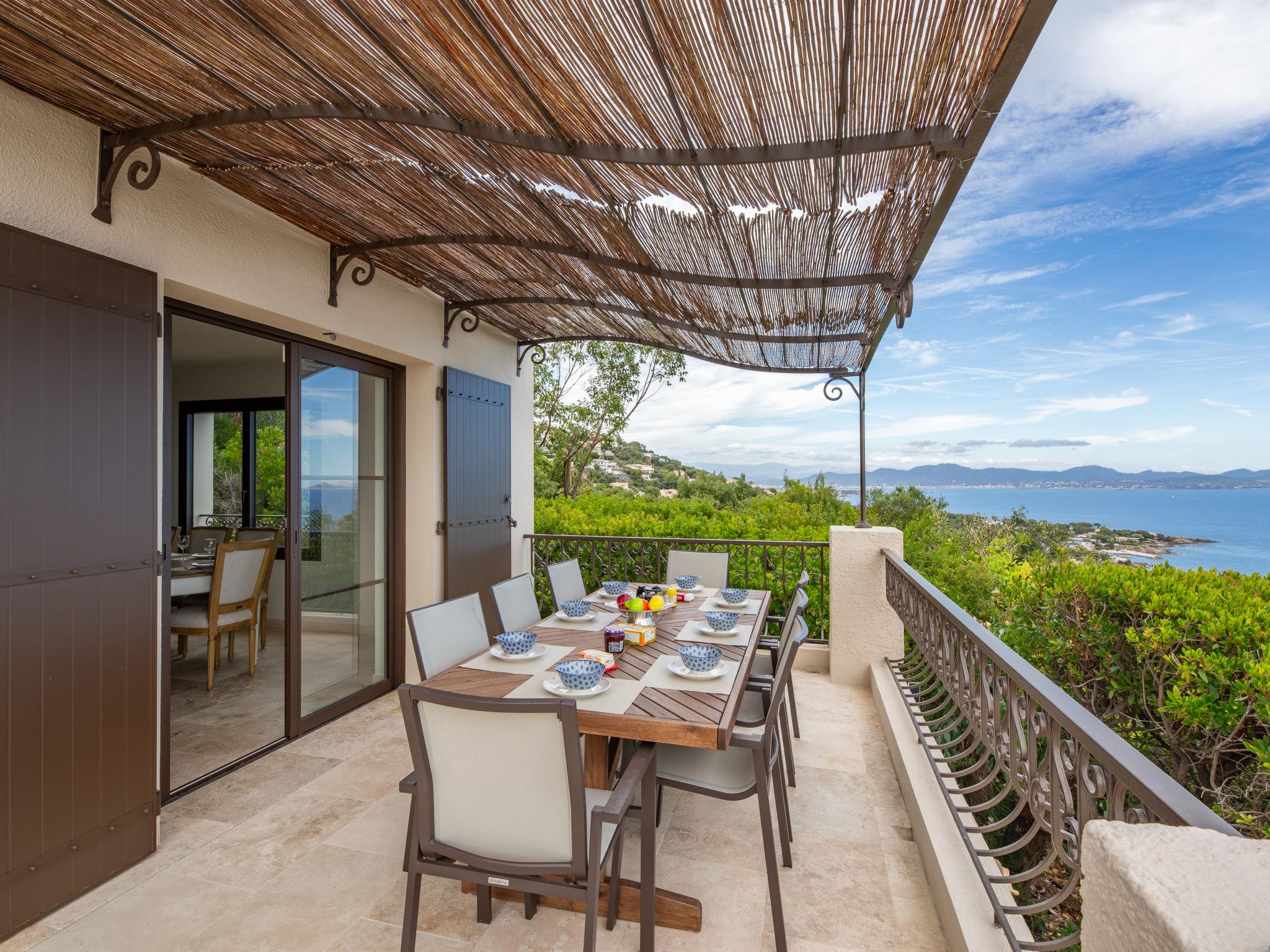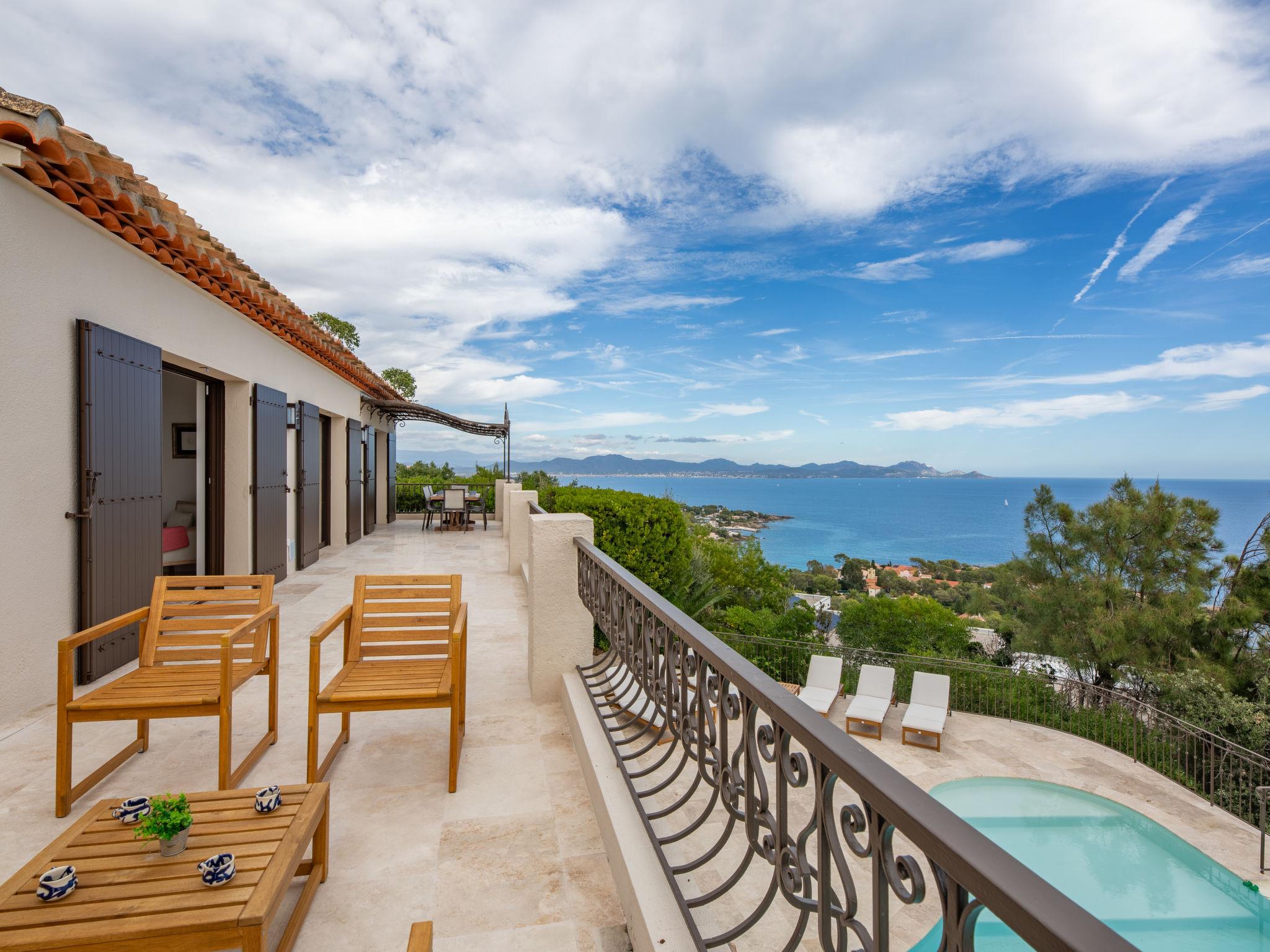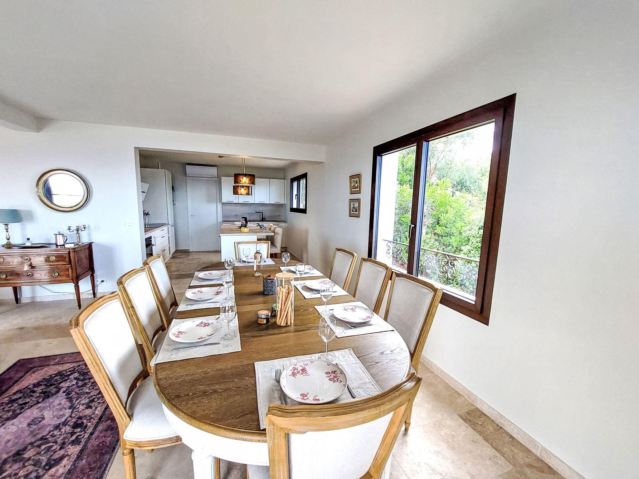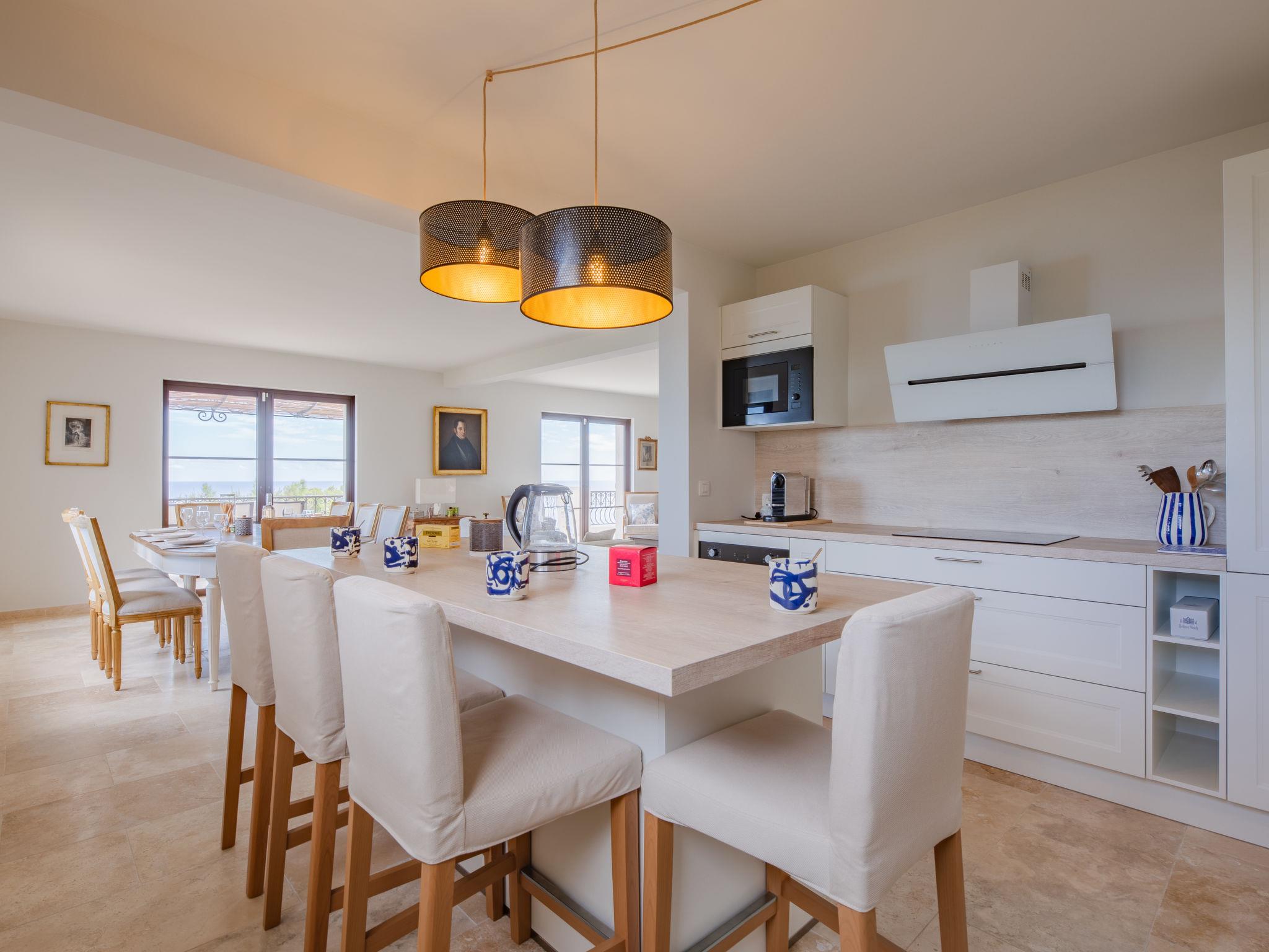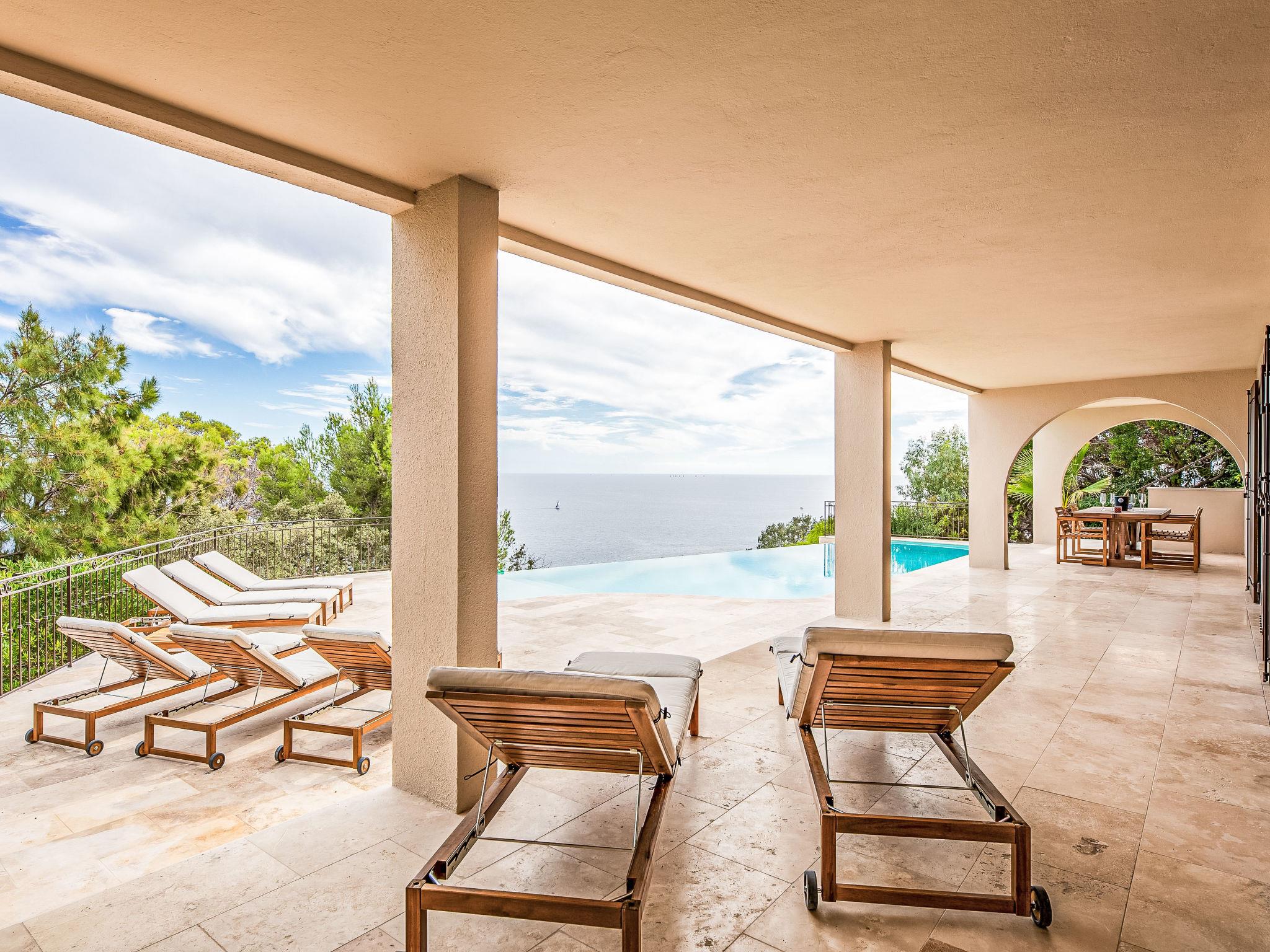 5-room villa 220 m2 on 2 levels. Modern furnishings: large living/dining room with panoramic window with TV (flat screen). Exit to the terrace. 1 large room with 1 french bed (160 cm, length 200 cm), bath/shower/WC and double hand-basin. Exit to the terrace. Large, open kitchen (oven, dishwasher, 4 induction hot plates, toaster, kettle, microwave, freezer, electric coffee machine, Capsules for coffee machine (Nespresso) extra) with bar. Sep. WC. Electric heating. On the lower ground floor: 1 large room with 1 french bed (160 cm, length 200 cm). Exit to the terrace, to the swimming pool. 1 large room with 1 french bed (1 x 160 cm, length 200 cm), hand-basin. Exit to the terrace, to the swimming pool. 1 large room with 1 french bed (1 x 160 cm, length 200 cm), bath/shower. Exit to the terrace, to the swimming pool. Shower/WC. Electric heating. Large terrace 300 m2, south facing position. Terrace furniture, balcony furniture, deck chairs (8). Panoramic view of the sea. Facilities: washing machine, iron, hair dryer. Internet (WiFi, free). Parking (1 car). Please note: non-smoking house. Smoke alarm. Offer by a private individual according to Art. 155, IV of CGI. 83107002726FM