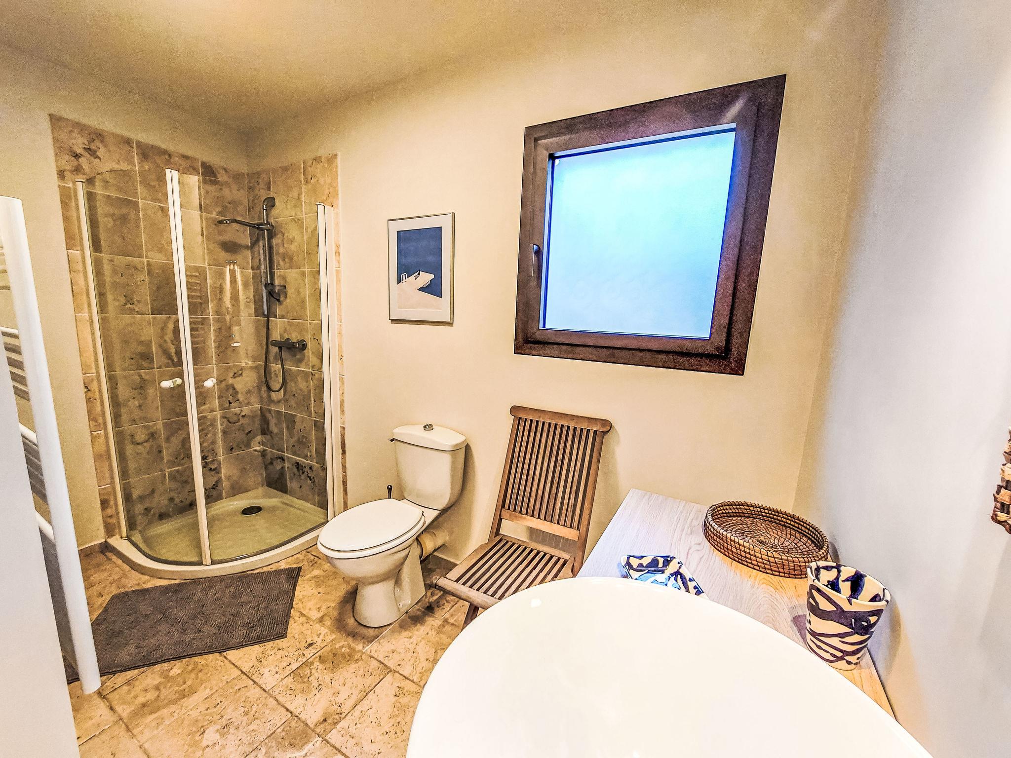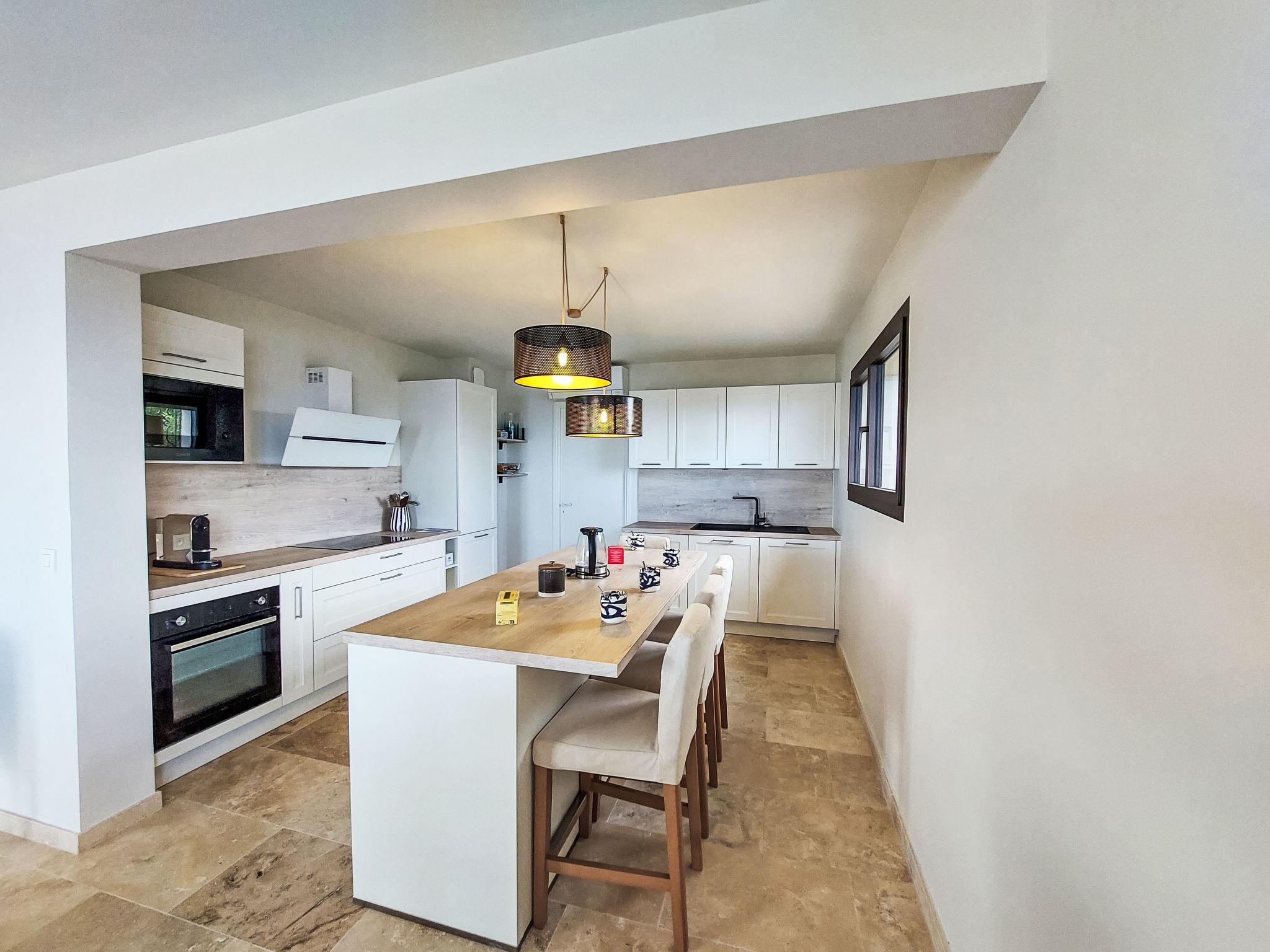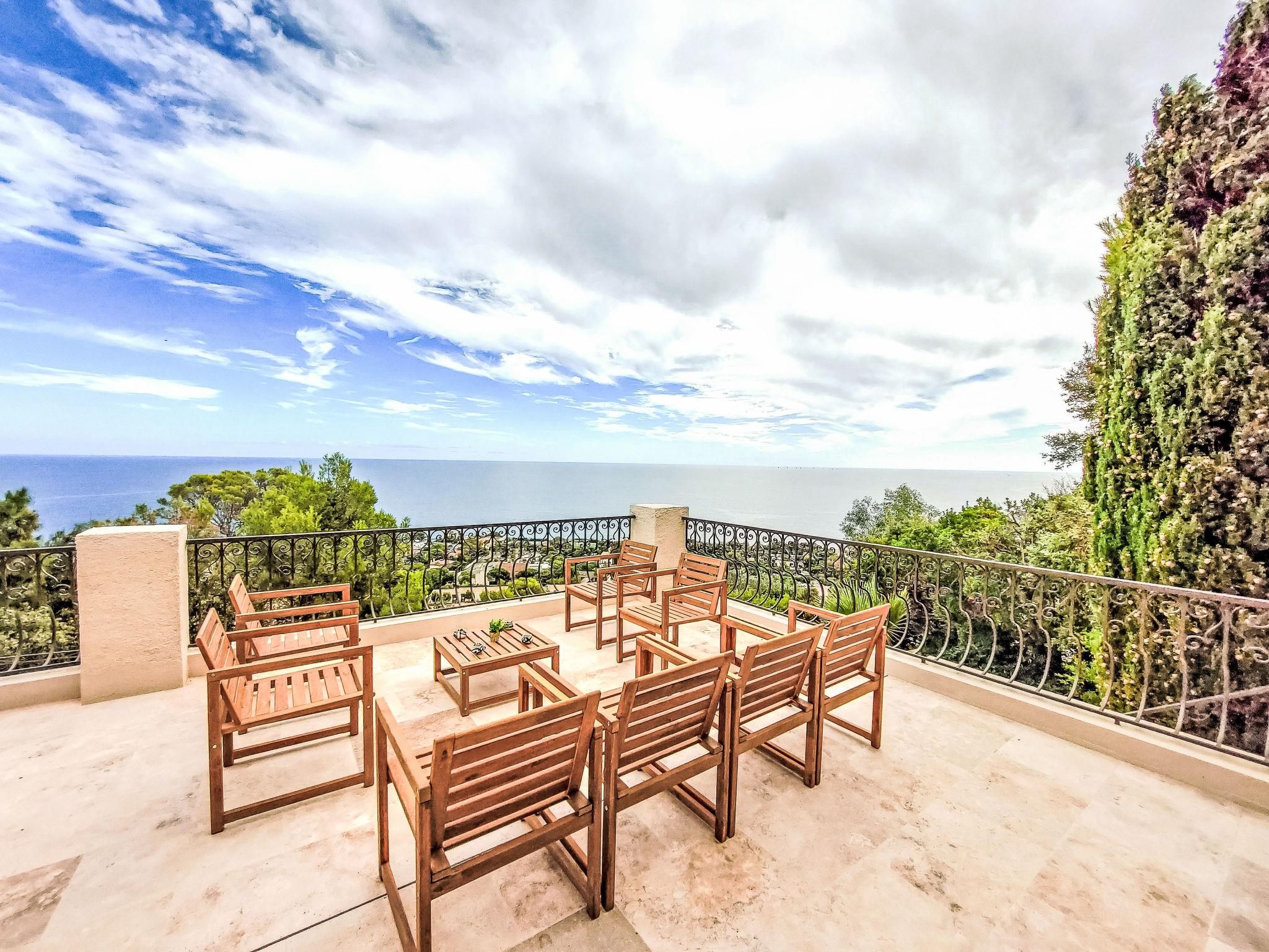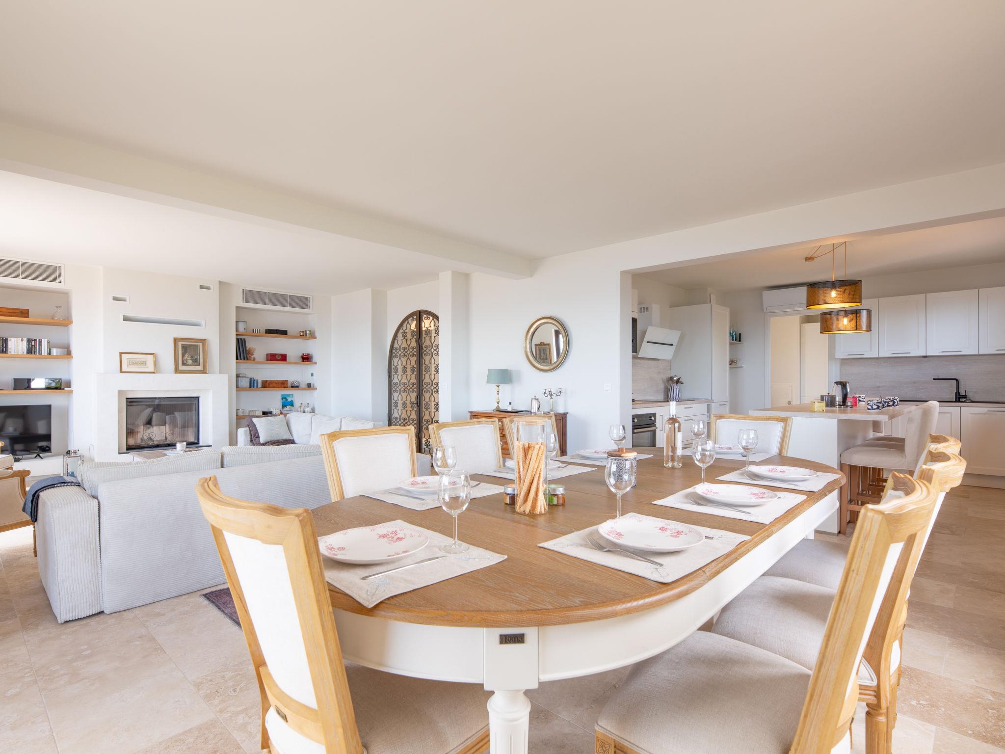 5-room villa 220 m2 on 2 levels. Modern furnishings: large living/dining room with panoramic window with TV (flat screen). Exit to the terrace. 1 large room with 1 french bed (160 cm, length 200 cm), bath/shower/WC and double hand-basin. Exit to the terrace. Large, open kitchen (oven, dishwasher, 4 induction hot plates, toaster, kettle, microwave, freezer, electric coffee machine, Capsules for coffee machine (Nespresso) extra) with bar. Sep. WC. Electric heating. On the lower ground floor: 1 large room with 1 french bed (160 cm, length 200 cm). Exit to the terrace, to the swimming pool. 1 large room with 1 french bed (1 x 160 cm, length 200 cm), hand-basin. Exit to the terrace, to the swimming pool. 1 large room with 1 french bed (1 x 160 cm, length 200 cm), bath/shower. Exit to the terrace, to the swimming pool. Shower/WC. Electric heating. Large terrace 300 m2, south facing position. Terrace furniture, balcony furniture, deck chairs (8). Panoramic view of the sea. Facilities: washing machine, iron, hair dryer. Internet (WiFi, free). Parking (1 car). Please note: non-smoking house. Smoke alarm. Offer by a private individual according to Art. 155, IV of CGI. 83107002726FM