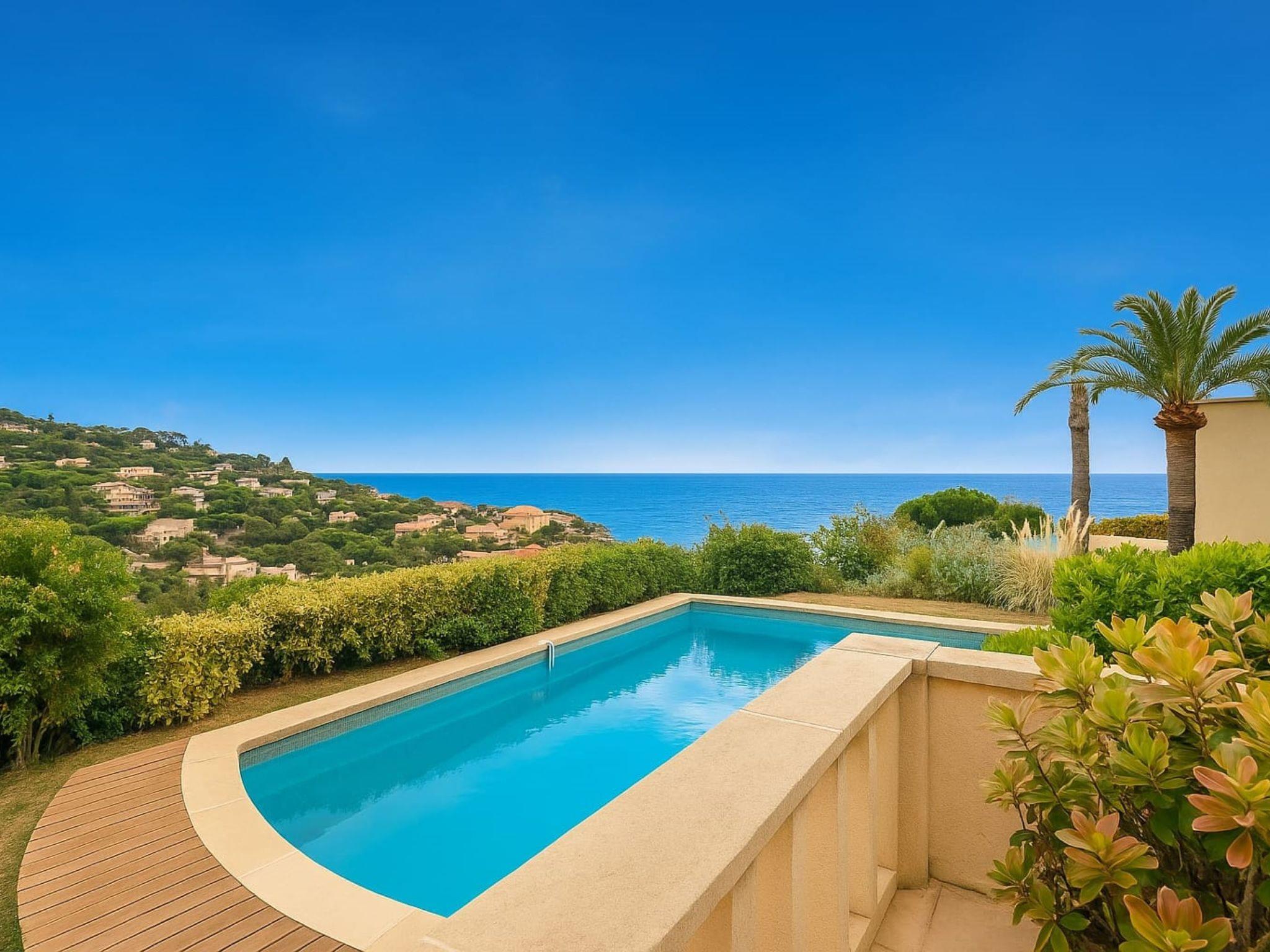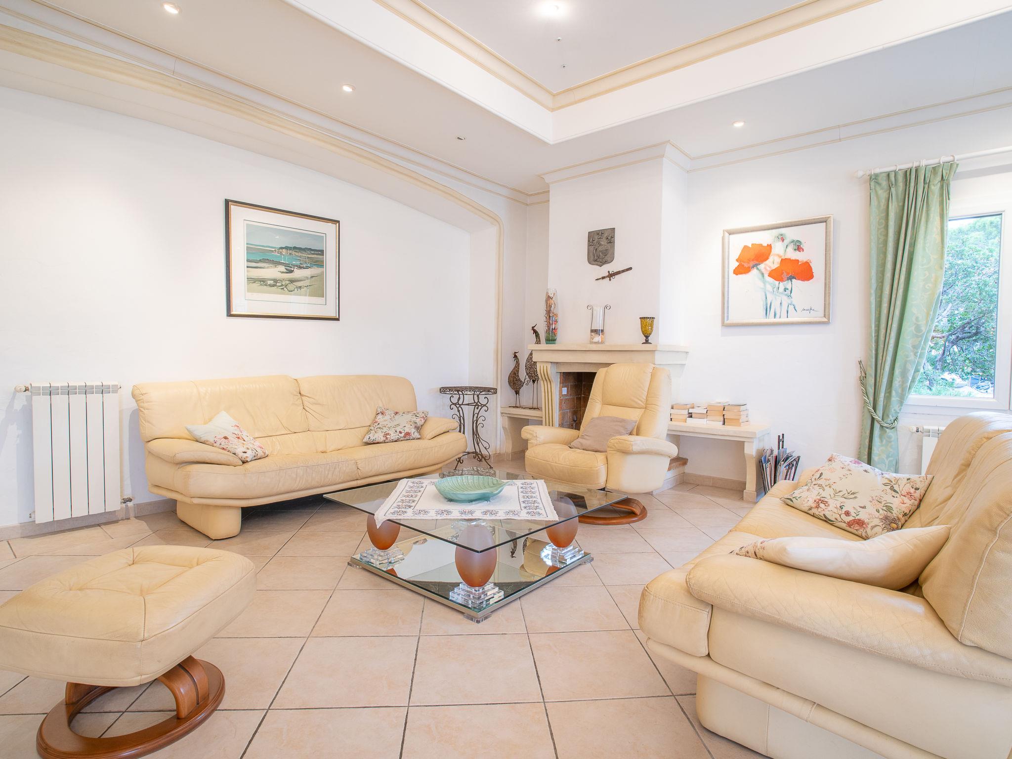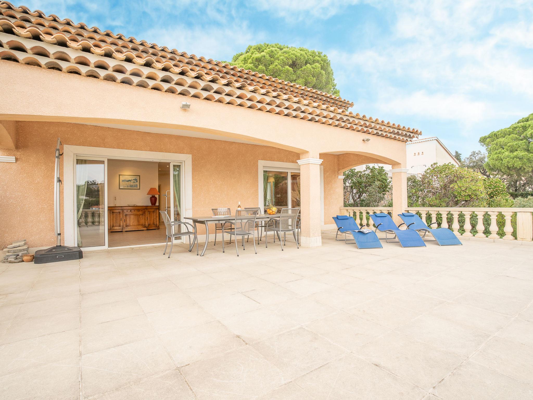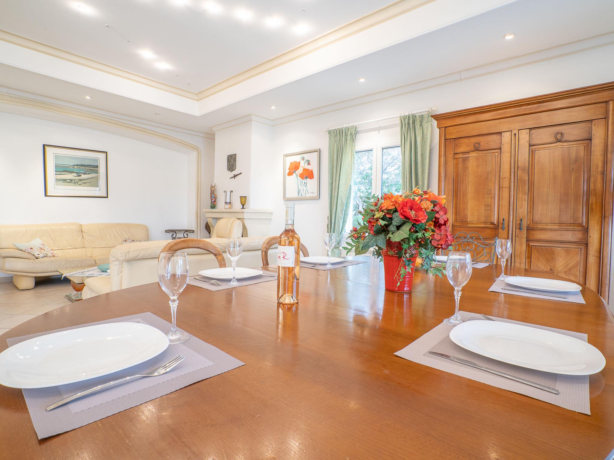 Property and pool maintenance by the management couple who live under the terrace on the ground floor. There are 2 cats living on the property. Large house "La Pinède". 500 m from the centre of Les Issambres, 8 km from the centre of Sainte Maxime, 8 km from the centre of Saint Tropez, in the residential district, 500 m from the sea, 500 m from the beach. For shared use: property 900 m2. Private: property 1'000 m2, well-kept garden with lawn, swimming pool (11 x 5 m, depth 100 - 190 cm, seasonal availability: 01.Apr. - 31.Oct.) with alarm system. Boules, parking on the premises. Carport. Shop, bus stop, sandy beach 500 m. Owner lives in separate semi-detached house.