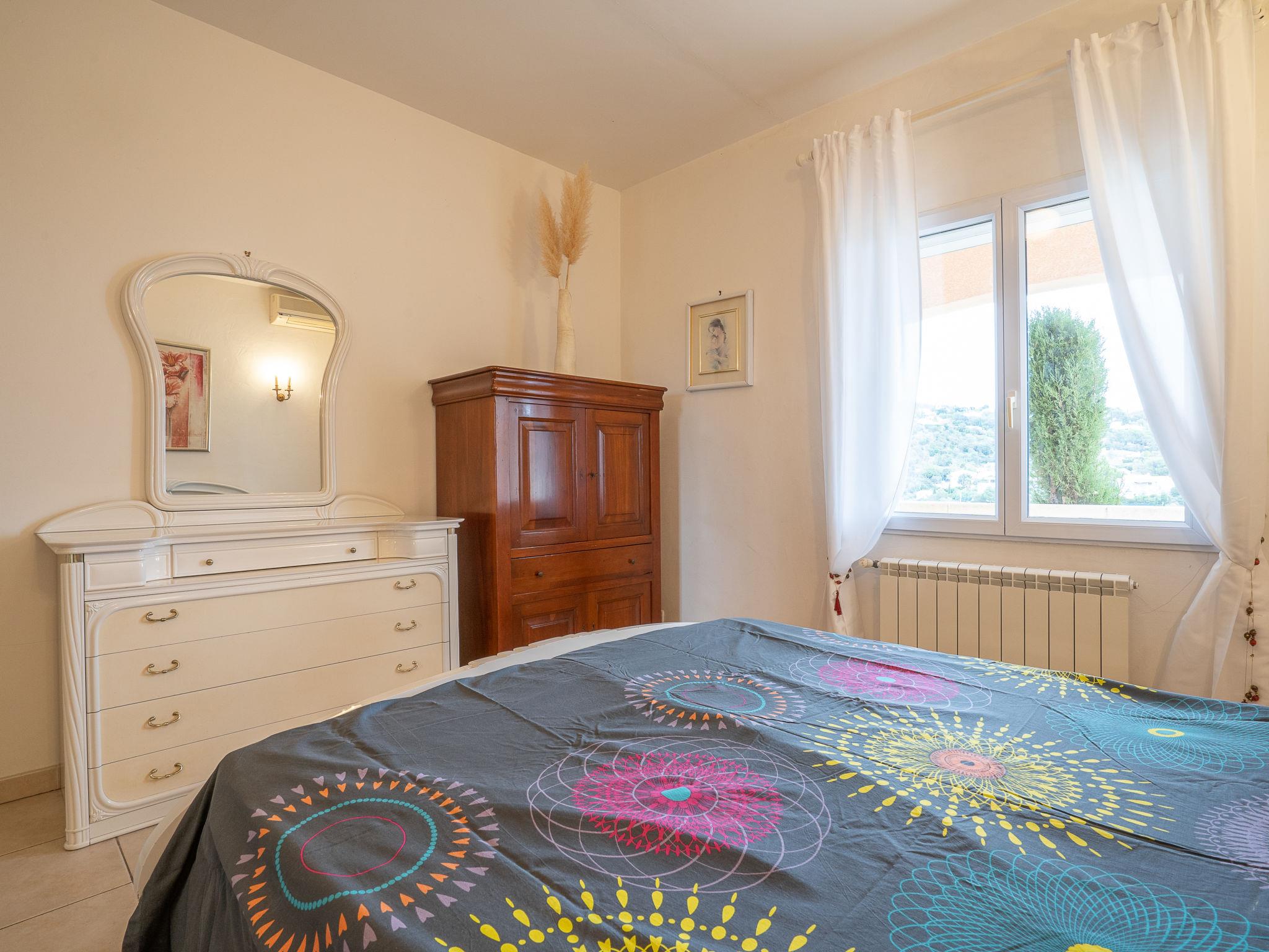 "La Pinède", 5-room house 230 m2. Bright, comfortable furnishings: living/dining room 80 m2 with open-hearth fireplace (only for decoration), dining table, satellite TV, flat screen, DVD and electric shutters. Exit to the terrace. 1 room with 1 french bed (160 cm, length 200 cm), bath/WC, digital TV, flat screen and air conditioning. 1 room with 1 french bed (140 cm, length 190 cm), 1 folding bed (80 cm, length 190 cm). Exit to the terrace. 1 room with 1 french bed (1 x 160 cm, length 200 cm). 1 room with 1 french bed (140 cm, length 190 cm). Kitchen (oven, dishwasher, 5 ceramic glass hob hotplates, microwave, freezer, electric coffee machine). Exit to the terrace. Shower, 2 sep. WC's, double hand-basin. Oil heating. Terrace 110 m2 partly roofed. Terrace furniture, deck chairs. Beautiful view of the sea. Facilities: washing machine, iron, children's high chair, baby cot. Internet (WiFi, free). Please note: non-smoking house. Smoke alarm. 831070010321D