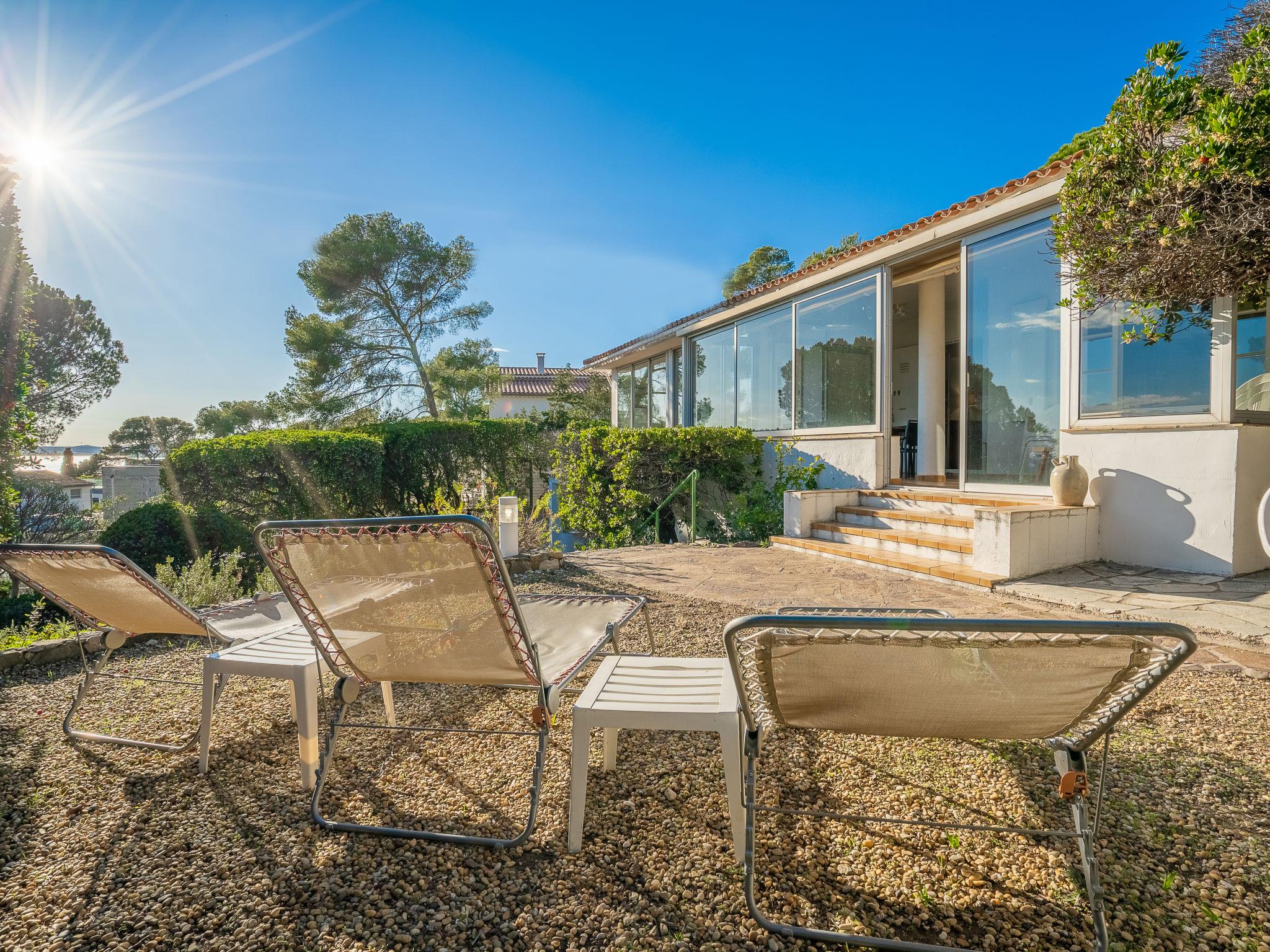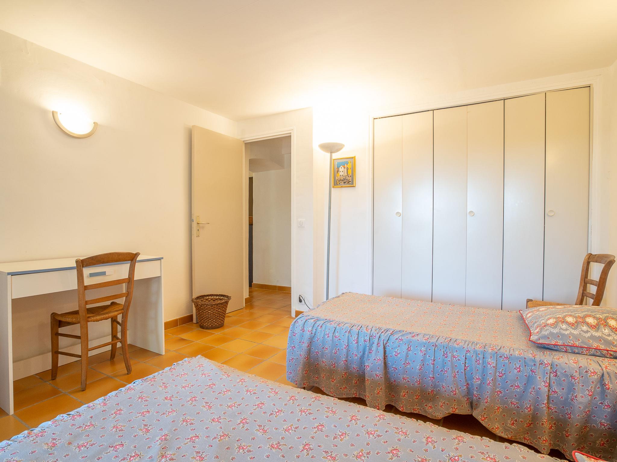"Pigeon Vole", 5-room house 160 m2 on 2 levels. Bright, practical and cosy furnishings: 1 room with 1 french bed. Exit to the garden. 1 room with 2 beds (80 cm). Exit to the garden. Bathroom, sep. WC. Upper floor: (exterior staircase) living/dining room with dining table and satellite TV. Exit to the garden. 1 room with 1 french bed. Exit to the veranda. 1 room with 2 beds (80 cm). Exit to the veranda. Small kitchen (oven, dishwasher, 4 ceramic glass hob hotplates, toaster, kettle, microwave, freezer, electric coffee machine). Exit to the garden. Bathroom, sep. WC. Oil heating. Natural stone floors. Patio. Terrace furniture, electric barbecue, conservatory. View of the sea. Facilities: washing machine. Internet (WiFi, free). Please note: non-smoking house. Maximum 1 pet/ dog allowed. No internal connecting door between the floors. When there are less than the maximum number of guests staying at the property, one floor will not be available for use. 83107001527V8