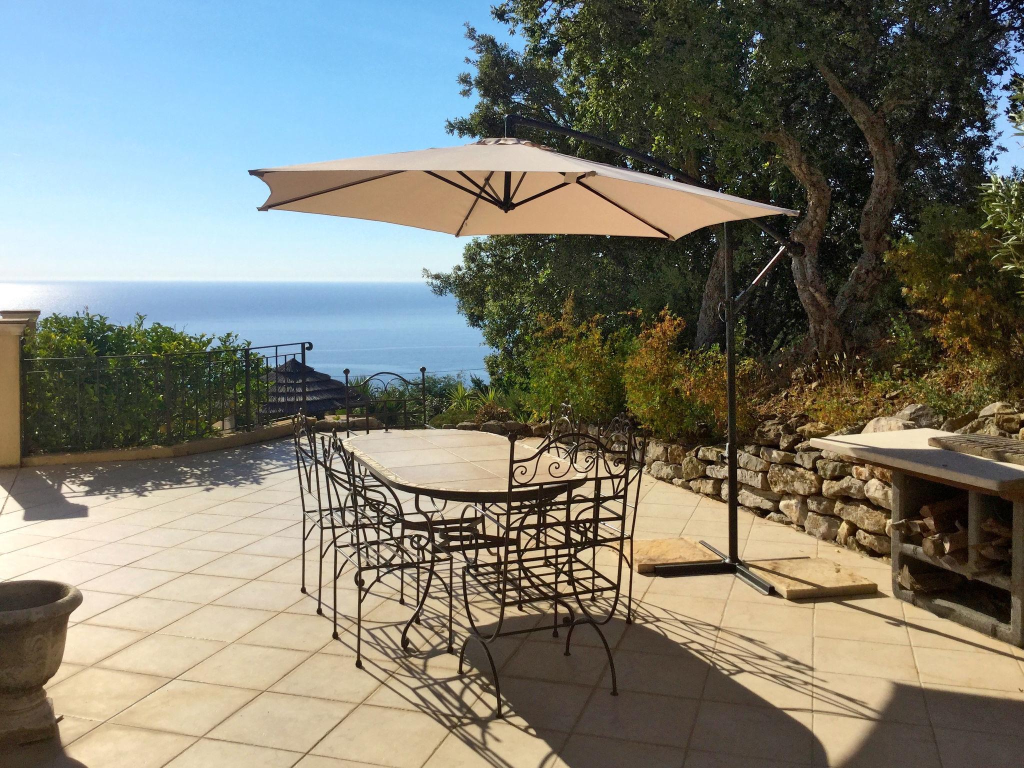 Beautiful house "Bellevue". 3 km from the centre of Les Issambres, 13 km from the centre of Sainte Maxime, 27 km from the centre of Saint Tropez, on a slope, residential area (villas), 1.2 km from the sea. Private: property 1'100 m2, beautiful terraced garden with wildlife garden, swimming pool (8 x 4 m, seasonal availability: 01.Jan. - 31.Dec.) with alarm system and salt-electrolysis pool-cleaning system. Stepped path to the house. Parking (for 3 cars) on the premises. Shop 3 km, bus stop 1.7 km, sandy beach 2.5 km. Object suitable for 6 adults + 2 children.