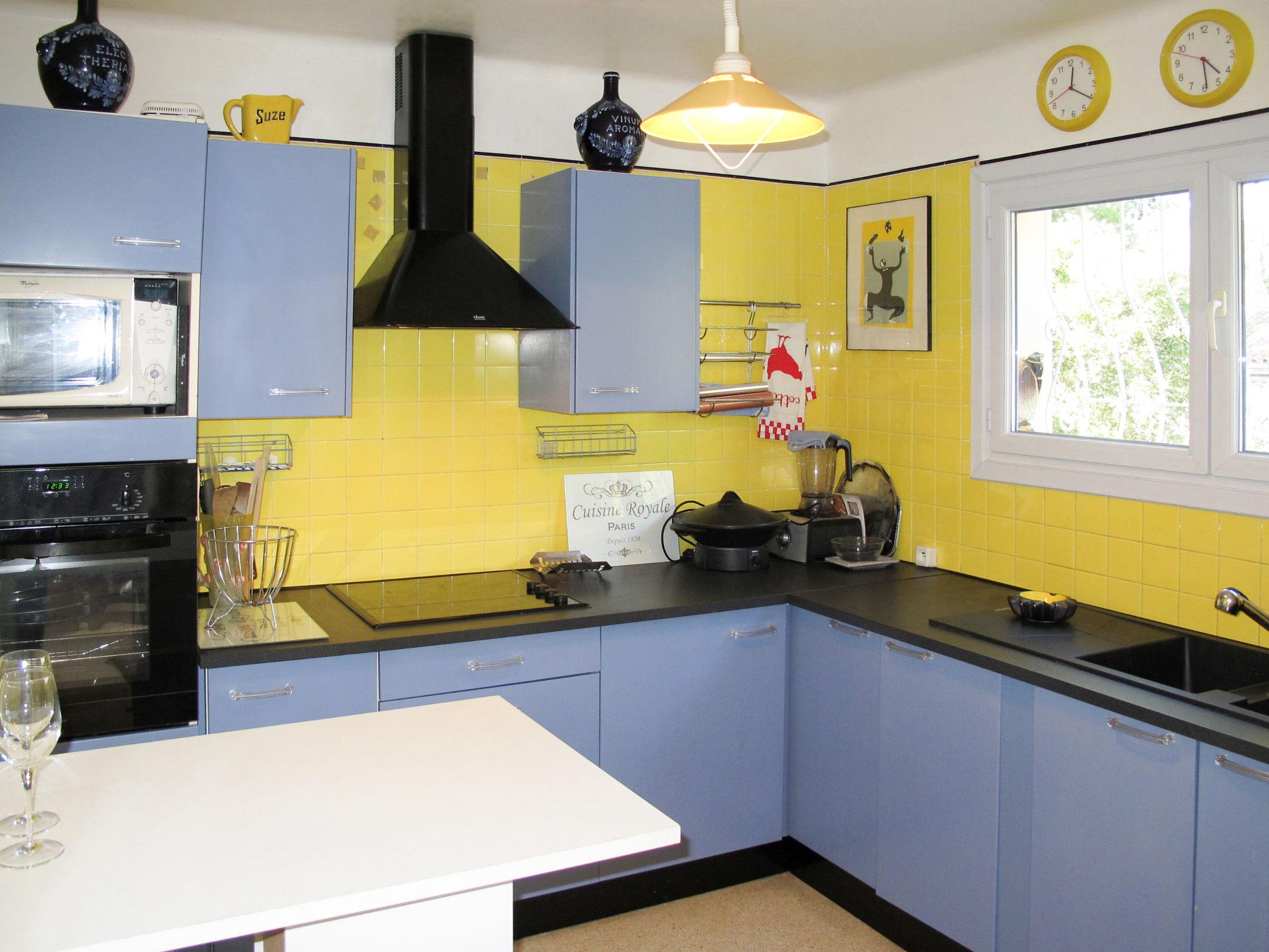 "Shangri La", 3-room house 100 m2. Comfortable furnishings: upper floor: (exterior staircase) living room with open-hearth fireplace (only for decoration), satellite TV, hi-fi system and DVD. Exit to the balcony. 2 rooms, each room with 1 french bed (160 cm, length 200 cm). Kitchen (oven, dishwasher, 4 ceramic glass hob hotplates, toaster, kettle, microwave, freezer, electric coffee machine) with bar. Bath/shower, sep. WC. Electric heating. Balcony, terrace roofed. Terrace furniture, electric barbecue, deck chairs (4). Facilities: washing machine, dryer, iron, children's high chair, baby cot. Please note: not suitable for small children not suitable for children under 12 years. Non-smoking house. Maximum 1 pet/ dog allowed. 83107002611YT