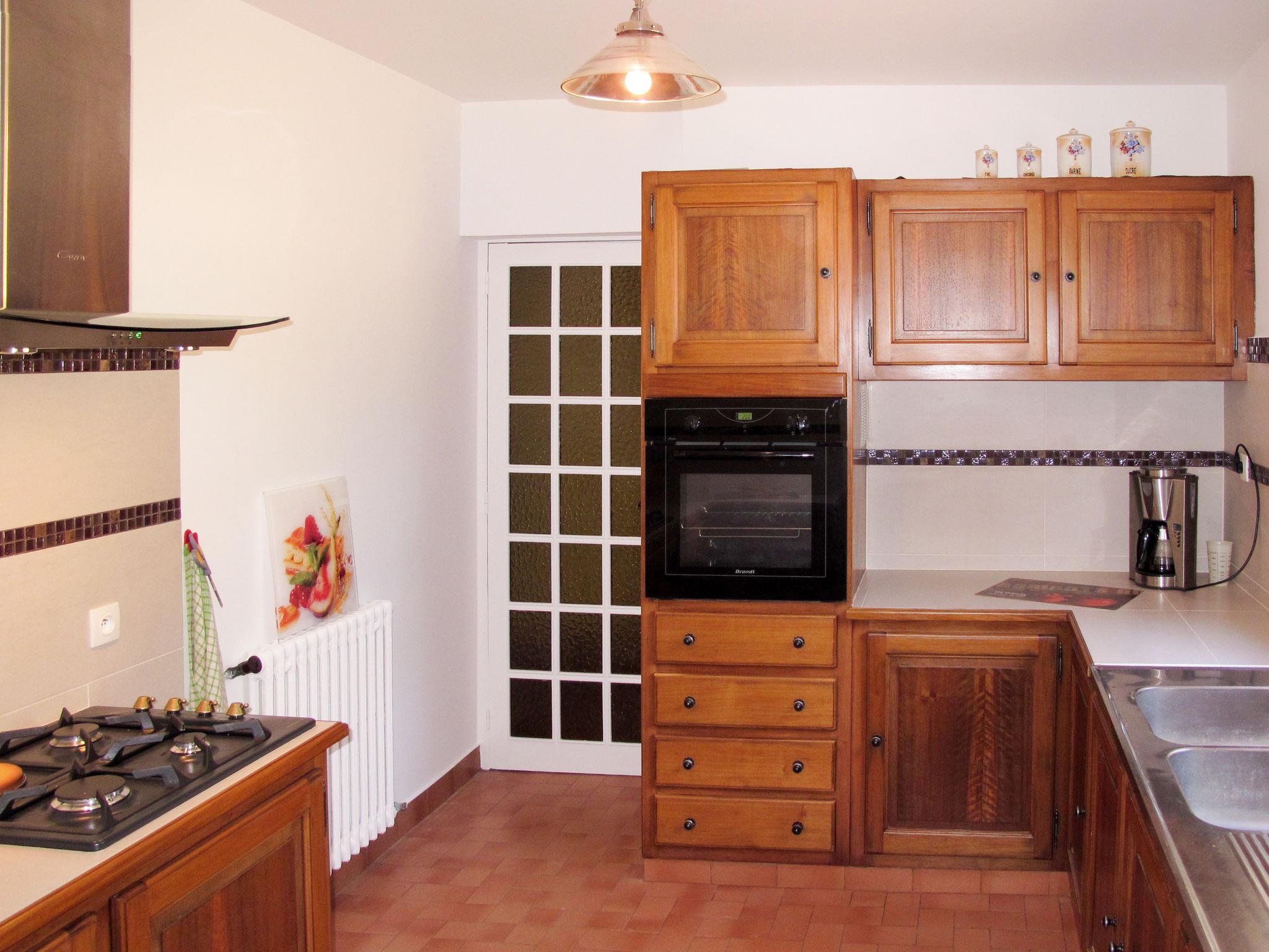 "Plein Sud", 4-room house 110 m2 on 2 levels. Practical and rustic furnishings: living/dining room with open-hearth fireplace (only for decoration), dining table and satellite TV. Exit to the terrace. 1 room with 1 french bed (140 cm, length 190 cm). Exit to the terrace. 1 room with 2 beds (90 cm, length 190 cm). Kitchen (1 hot plate, oven, dishwasher, 3 gas rings, toaster, kettle, freezer, electric coffee machine). Bathroom, sep. WC, double hand-basin. Upper floor: 1 room with 1 french bed (140 cm, length 190 cm), shower/WC. Exit to the balcony. Gas heating. Balcony, terrace. Terrace furniture, electric barbecue. View of the sea. Facilities: washing machine. Internet (WiFi, free). Parking (2 cars). 83107000526EF