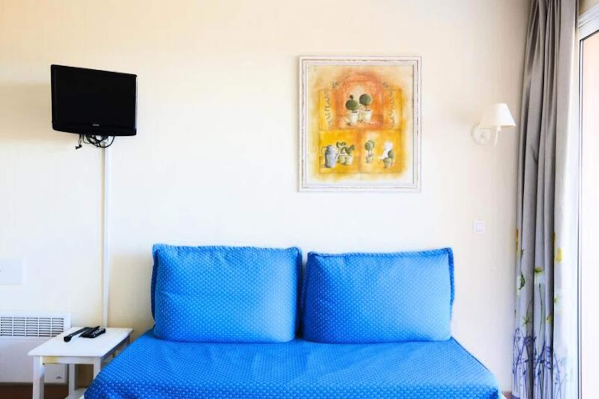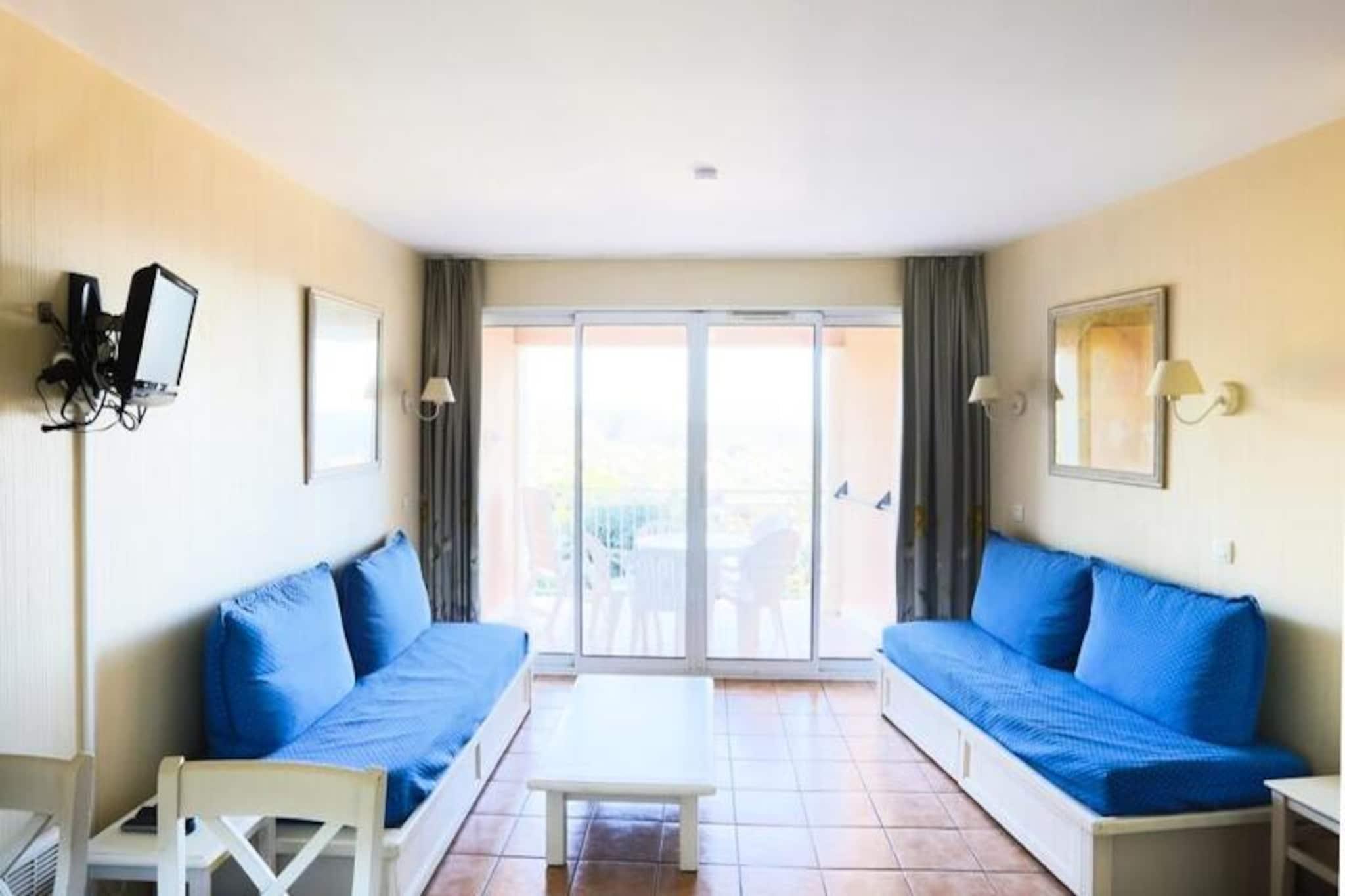 This charming apartment offers a comfortable stay with a well-equipped living space for up to 4 people. It includes a living room with 2 sofa beds, one of which has a trundle bed, and a cozy bedroom with a double bed. The apartment is pet-friendly, allowing you to bring your furry companions along. A furnished balcony with a table and deckchair provides a perfect spot to enjoy the beautiful sea view. Guests also benefit from a reserved parking space and additional storage. Located just a few kilometers from the beaches of Sainte Maxime and Issambres, this apartment offers easy access to the stunning coastline via a 4 km walking path. The area is ideal for exploring with various activities nearby, including sailing, water skiing, diving, and kayaking. Fréjus, Saint-Raphaël, and Sainte-Maxime are also within reach, offering plenty of dining options, cafes, and markets. Visitors can enjoy scenic hikes, as well as sports like golf, tennis, and quad biking. The apartment features a fully equipped kitchen area, open to the living room, and a bathroom with a bathtub and toilet. Other amenities include Wi-Fi access (for a fee), a television, and a spacious storage area. The complex offers an outdoor swimming pool (open from May to September) and a children's play area. End-of-stay cleaning is available for an additional charge, and linens are provided at extra cost.