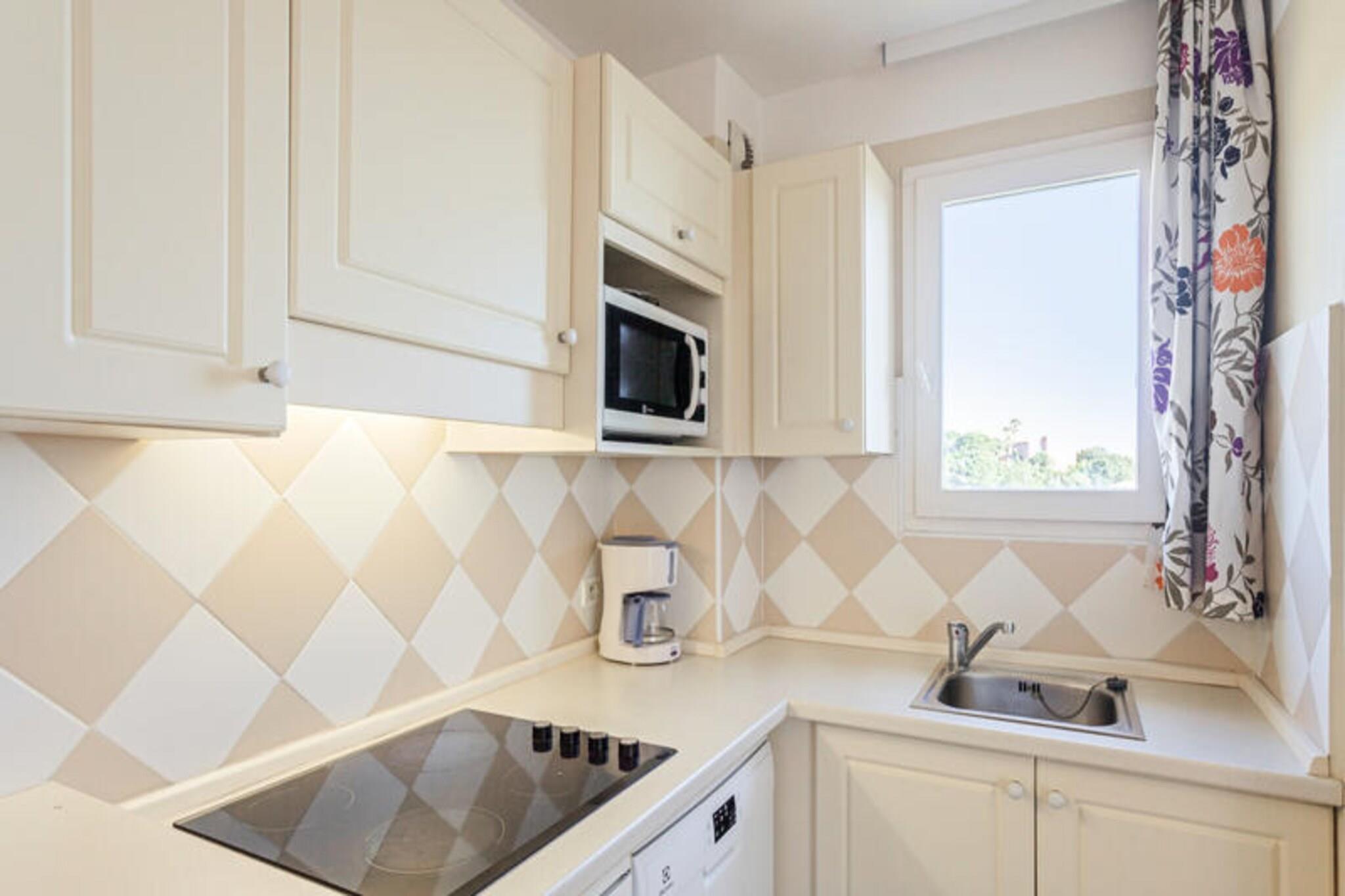 This charming apartment in Issambres, located within a 20-hectare natural park, offers an exceptional stay with stunning views of the Gulf of Saint Tropez. It features a cozy bedroom with a double bed and a cabin area with bunk beds for additional guests. The spacious living room provides two sofa beds, ideal for a small group or family. Enjoy your time on the private balcony with panoramic views, or unwind by the 200 m² infinity pool (open from May to October). The apartment is pet-friendly, so you can bring your furry companion to enjoy this beautiful setting. The surrounding area offers plenty of opportunities for outdoor activities and exploration. Nearby, you can enjoy scenic hikes such as the Sentoral du Littoral, offering magnificent sea views, or explore the wooded hills of Massif des Maures. For beach lovers, Plage de la Gaillarde is perfect for sunbathing, while San Peïre Beach is ideal for families seeking calm waters and leisure activities. The local cafes and markets provide a great chance to sample regional cuisine and purchase fresh, local produce. The apartment is well-equipped for your convenience, including a fully functional open kitchen with all essentials, a bathroom with a bathtub, and a separate toilet. The living area is bright and airy, providing a comfortable space for relaxation. For added comfort, services like wifi (for an additional fee), bed linen, towels, and daily linen changes are available. You’ll have free access to the residence's free parking and the inviting infinity pool for a refreshing dip after a day of exploring.