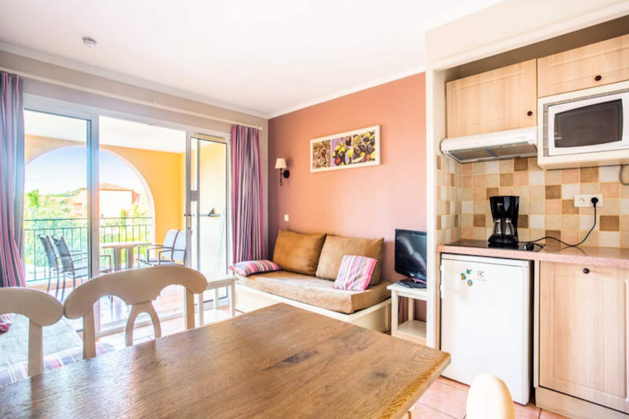 Denne charmerende feriebolig ligger i Les Calanques des Issambres-residensen og tilbyder en fantastisk udsigt over Saint-Tropez-bugten. Det kan rumme op til 5 personer med en stue med 2 enkeltsovesofaer, den ene med en udtr?ksseng og et kabineomr?de med 2 k?jesenge. K?ledyr er tilladt efter anmodning. P? stedet finder du en 300 m² havvandsswimmingpool (?ben april til oktober) og et legeomr?de, der sikrer sjov for hele familien. Ejendommen ligger kun 100 meter fra stranden, hvilket giver nem adgang til havnefronten. Udforsk det n?rliggende Thalgo® thalassoterapicenter for wellness-behandlinger, eller nyd aktiviteter som golf og dykning. Det omkringliggende omr?de byder p? en blanding af lokale caf?er, butikker og markeder at opdage, hvilket giver dig mulighed for at fordybe dig i den pulserende atmosf?re i C?te d'Azur. Lejen inkluderer et fuldt udstyret k?kken ?bent til opholdsomr?det, perfekt til at tilberede m?ltider. Badev?relset har badekar og toilet for ekstra bekvemmelighed. En privat terrasse giver mulighed for udend?rs afslapning, og du har din egen parkeringsplads. Sengelinned er valgfrit, og en slutreng?ringspakke er obligatorisk. Nyd dit ophold med adgang til den f?lles havvandspool og yderligere faciliteter s?som internetadgang mod et ekstra gebyr.