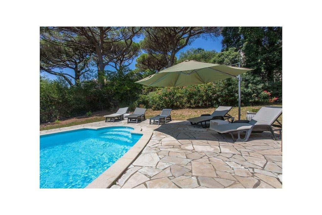 I rolige omgivelser, men alligevel i hjertet af den pulserende Côte d'Azur, i Saint-Tropez-bugten, i Les Issambres, ved siden af Sainte-Maxime, ligger denne eksklusive ferievilla, fuldt og kærligt møbleret, ideel til 2 til 6 personer. Villaen har et boligareal på 160 m² og består af en stue, der løber ud til spisestuen, et separat køkken, tre soveværelser (hvoraf to har aircondition), to badeværelser (et med badekar og et med bruser) og to toiletter.