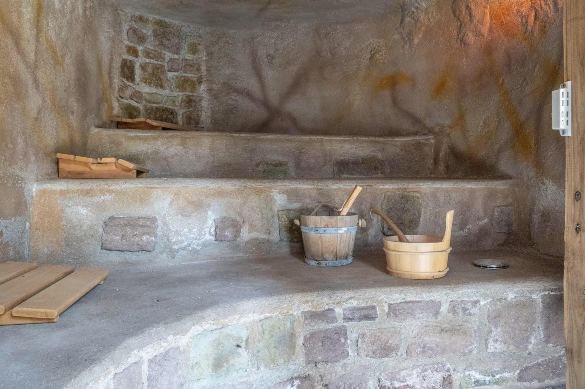 Stueetage: (entre, Soveværelse med badeværelse(køjeseng, Fjernsyn(kabel), klimaanlæg), Soveværelse med badeværelse(dobbeltseng(180 x 200 cm), Fjernsyn(kabel), klimaanlæg), Soveværelse med badeværelse(2x halvandenmandsseng(120 x 200 cm), Fjernsyn(kabel), klimaanlæg), Soveværelse med badeværelse(dobbeltseng(160 x 200 cm), Fjernsyn(kabel), klimaanlæg), pulterkammer(tørretumbler, vaskemaskine), carport, 2x enkeltfoldeseng(90 x 200 cm), 2x enkeltsovesofa(90 x 200 cm), have(indhegnet, > 1000 m2), havemøbler, grill(trækul), 2x barneseng, barnestol) På 1. etage: (Stue(kakkelovn, terrasse), spisestue(Fjernsyn(parabol)), åbent køkken(komfur(Komfur med fem kogeplader, induktion), 2x kaffemaskine(kopper, kaffetragt), ovn, grill, mikrobølgeovn, opvaskemaskine , køleskab(amerikansk)), soveværelse, toilet) sauna(adgang udefra), Bubble bath(adgang udefra), terrasse, swimmingpool(privat, opvarmet, indhegnet, vand alarm, 11 x 6 m.)