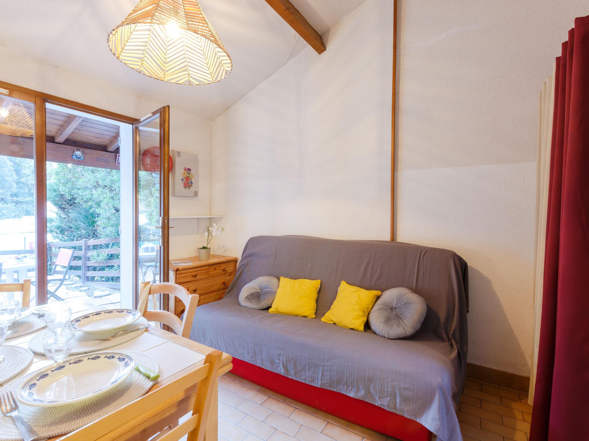 1-room terraced house 18 m2, south facing position. Object suitable for 2 adults + 2 children. Living room with 1 double sofabed (1 x 140 cm, length 190 cm), TV (flat screen). Exit to the terrace. Alcove with 1 x 2 bunk beds (90 cm, length 190 cm). Kitchenette (2 hot plates, toaster, kettle, electric coffee machine). Bath/WC. No heating option. Terrace 15 m2. Terrace furniture. Facilities: washing machine. Internet (WiFi, extra). Parking space n 4. Please note: 1 small pet/ dog allowed. Smoke alarm. Instead of an enclosed bedroom, some sleeping areas are located in an open-plan area (gallery, alcove, etc.). Offer by a private individual according to Art. 155, IV of CGI.