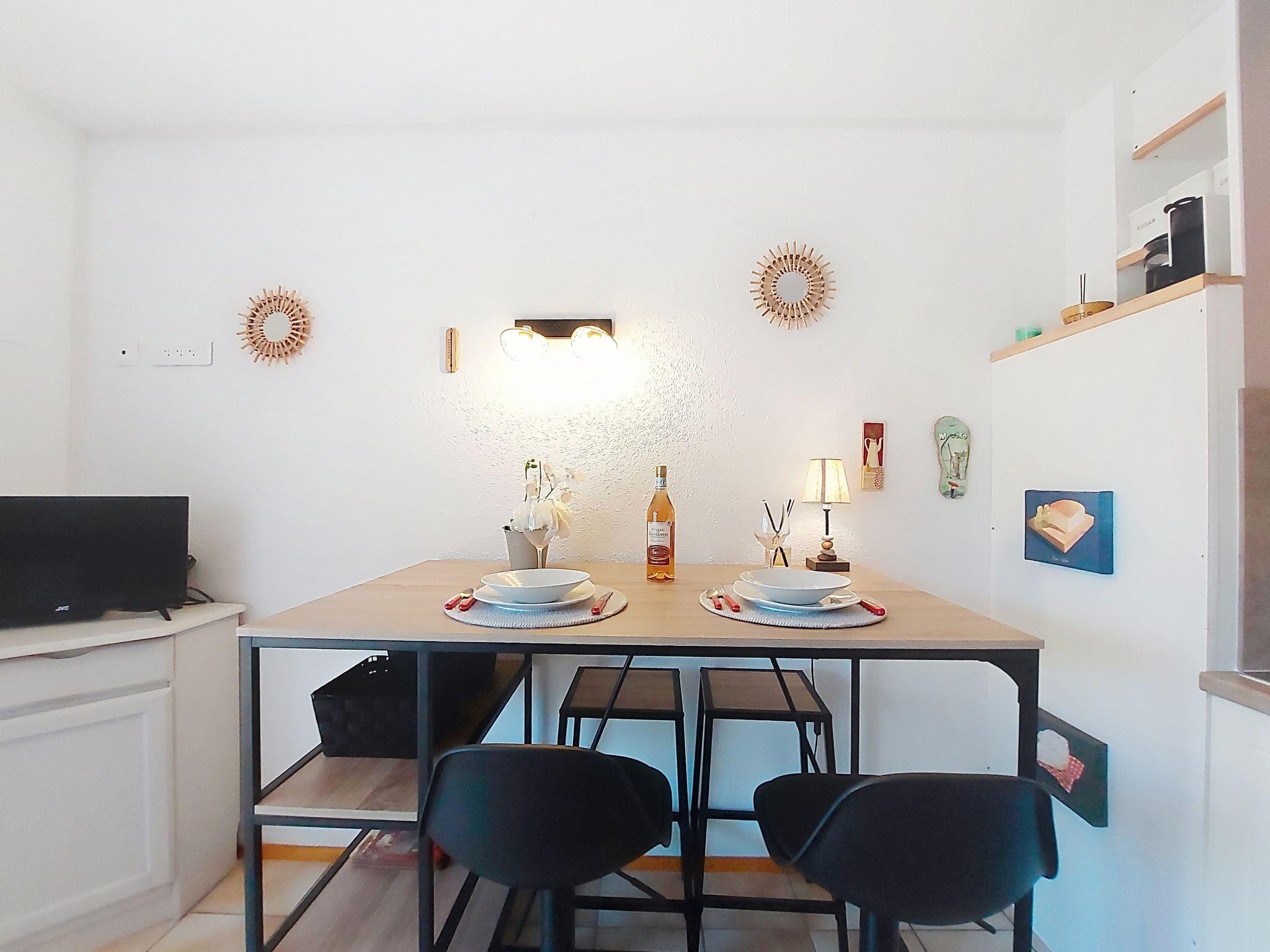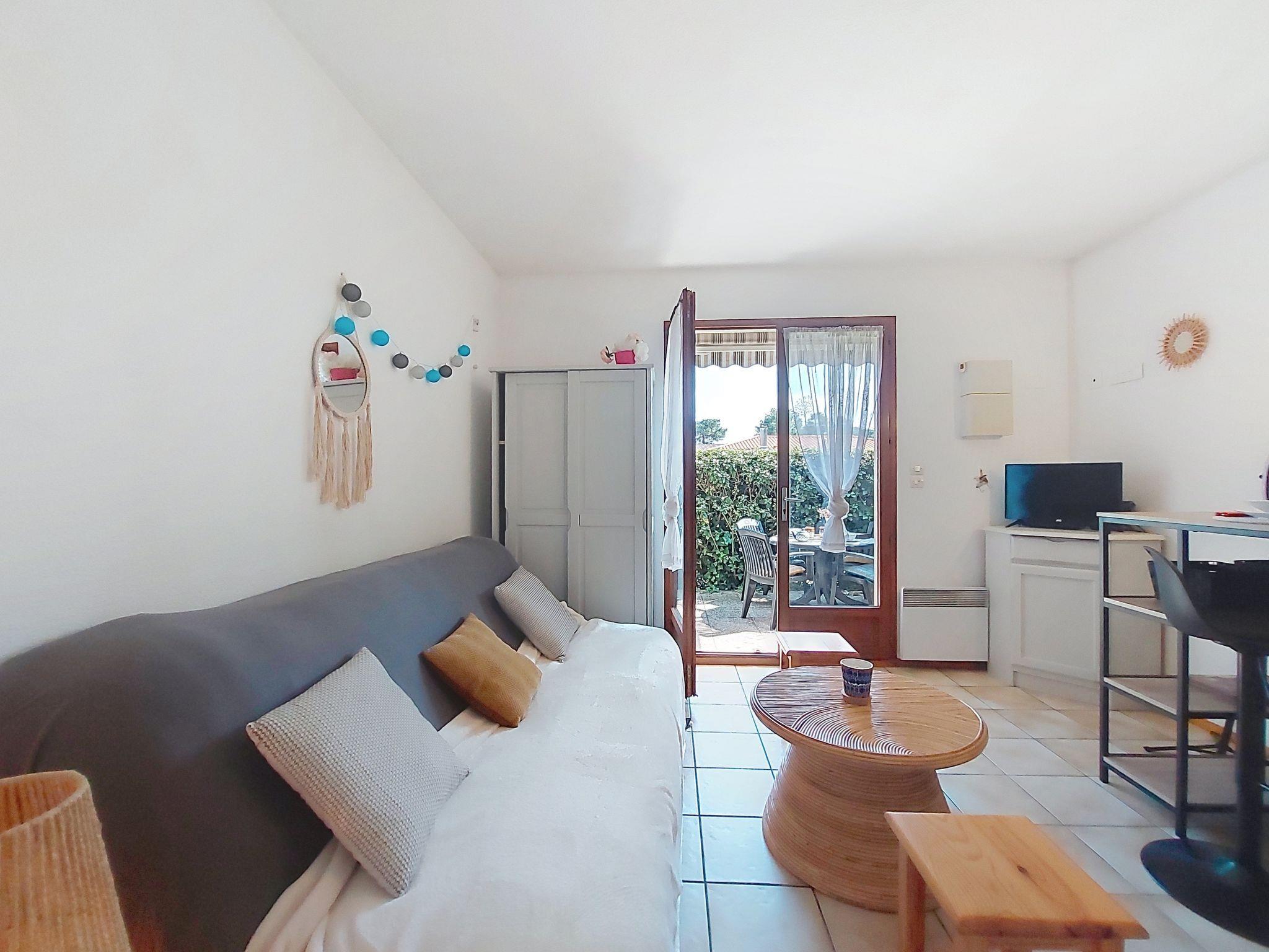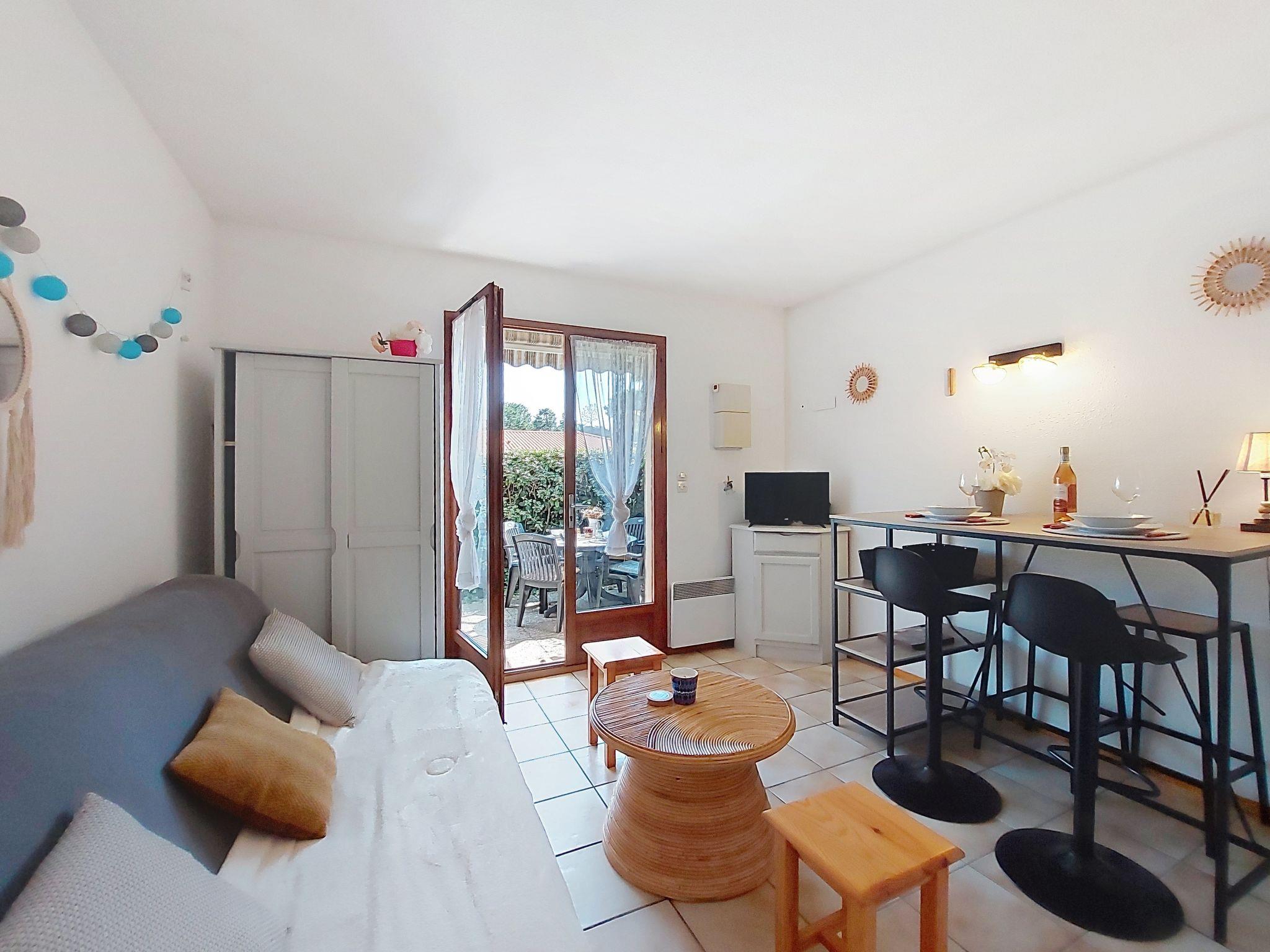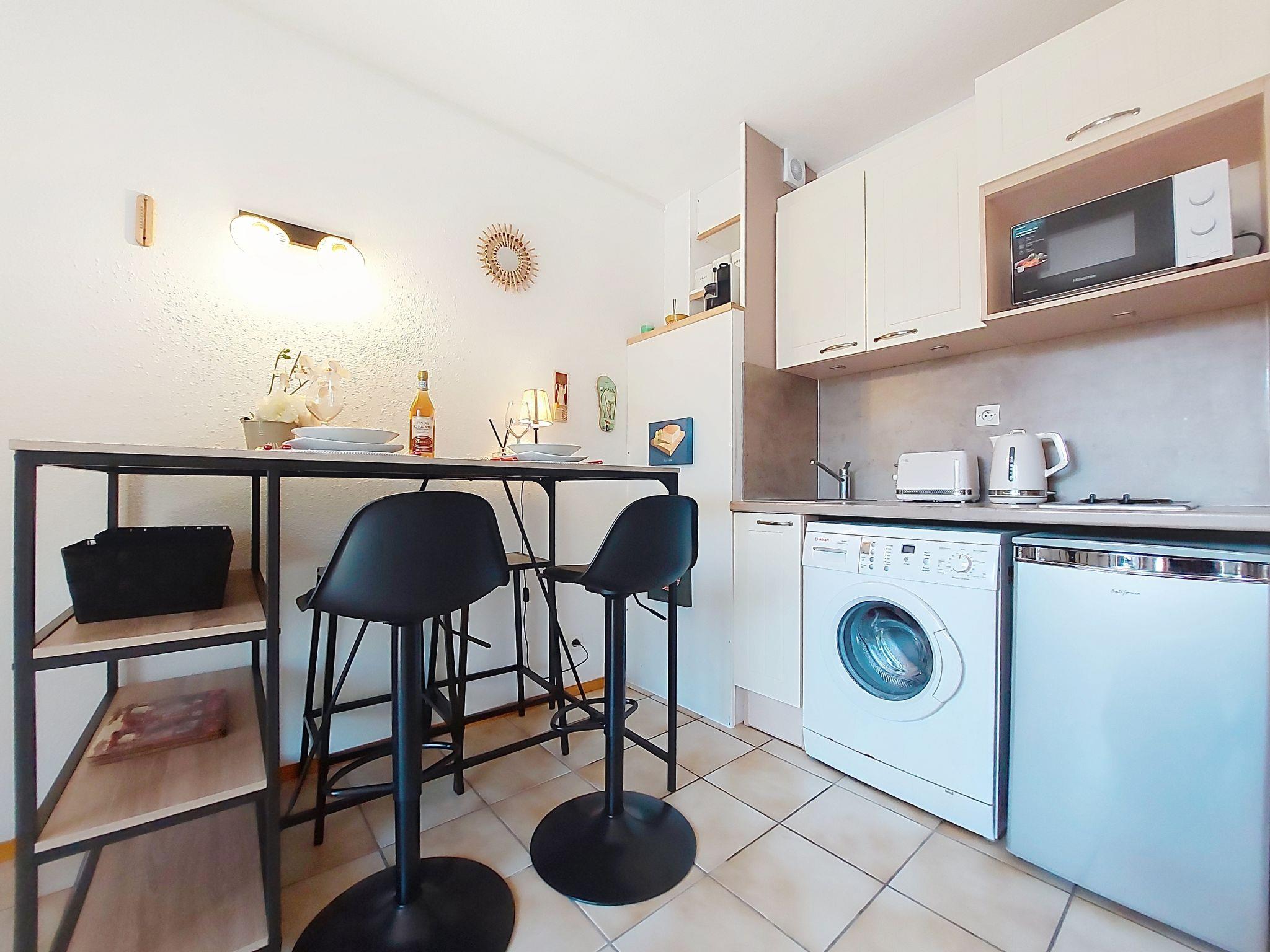 2-room apartment 22 m2, on the ground floor, south facing position. Living room with TV (flat screen). Exit to the terrace. 1 room with 1 french bed (1 x 120 cm, length 190 cm). Kitchenette (2 hot plates, mini-oven, toaster, kettle, microwave, electric coffee machine). Shower/WC. Electric heating. Terrace 6 m2, south facing position. Terrace furniture. Facilities: washing machine. Internet (WiFi, extra). Parking space n 62 (2 cars). Please note: apartment carpark side. Smoke alarm. Offer by a private individual according to Art. 155, IV of CGI.