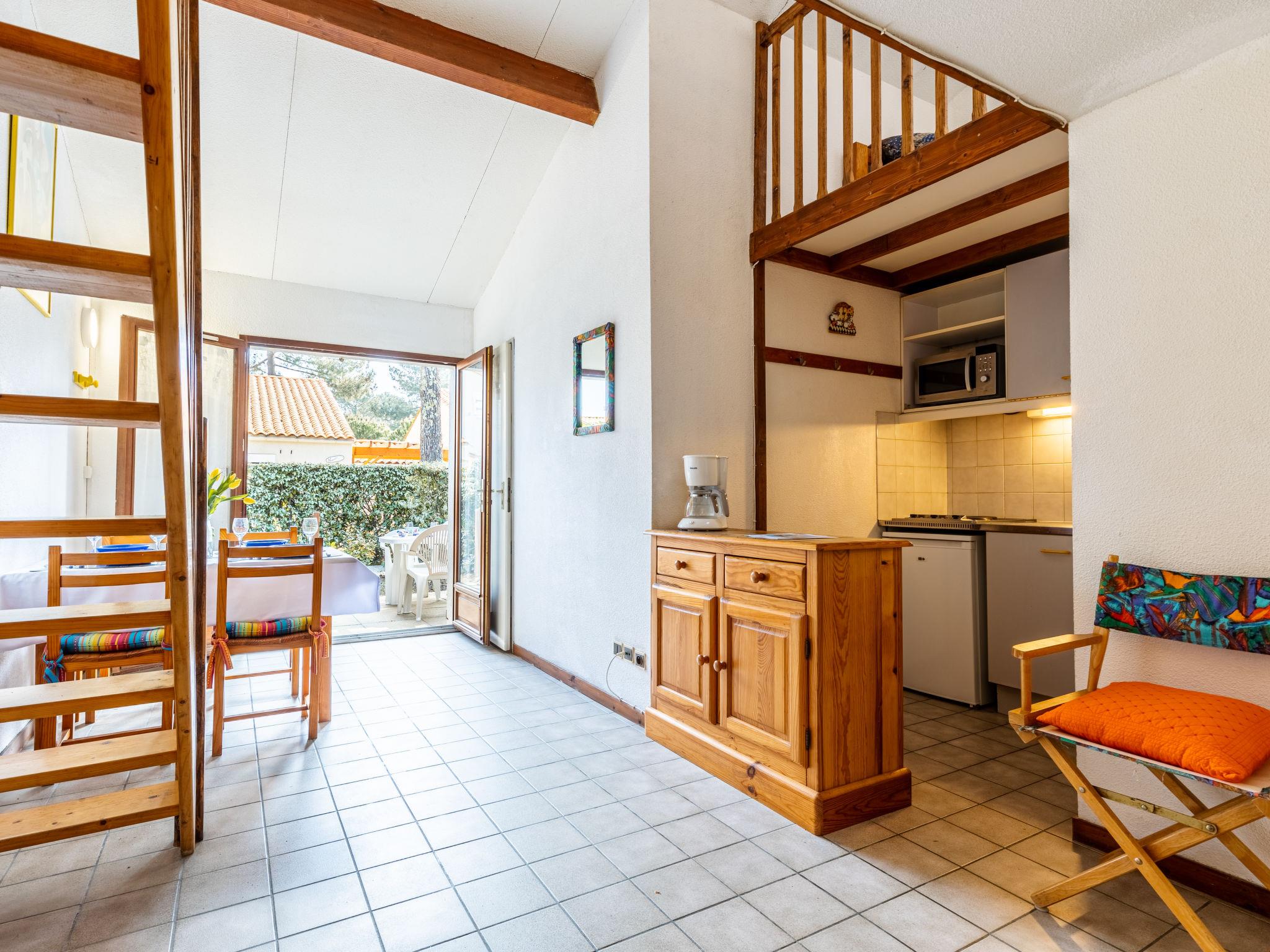 2-room terraced house 25 m2 on 2 levels. Living/dining room with TV. Exit to the terrace. 1 room with 1 french bed (1 x 140 cm, length 190 cm). Kitchenette (3 hot plates, mini-oven). Bath/WC. Electric heating. Upper floor: gallery with sloping ceilings, ceiling height 110 - 240 cm with 2 beds (90 cm, length 190 cm). Terrace 8 m2, east facing position. Terrace furniture. Facilities: Internet (WiFi, extra). Please note: maximum 1 pet/ dog allowed. Smoke alarm. Instead of an enclosed bedroom, some sleeping areas are located in an open-plan area (gallery, alcove, etc.). Offer by a private individual according to Art. 155, IV of CGI.